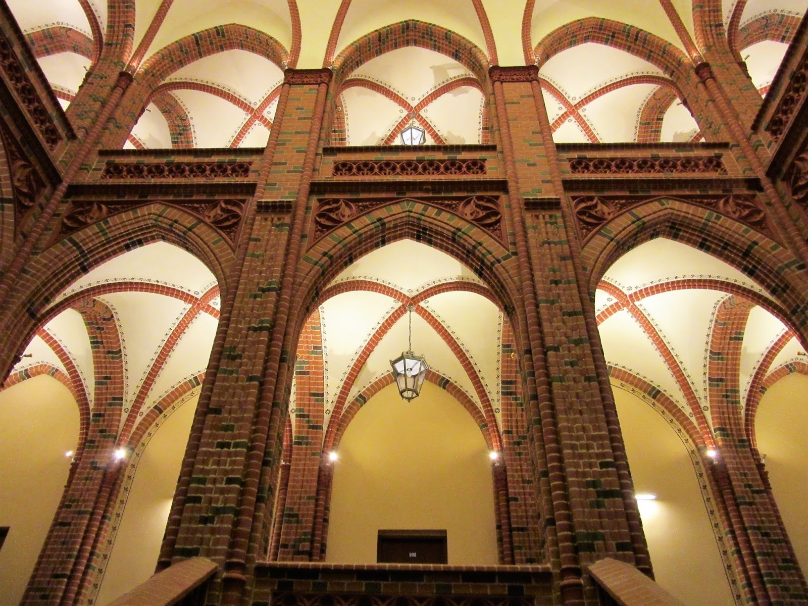 Co nas urzekło w tym budynku? Przede wszystkim kolor, odremontowanej i wyczyszczonej w latach 2008-2015 fasady, a także znajdujące się na niej niesamowite detale. Czerwony Ratusz momentami bardziej przypominał nam ceglany pałac z małymi wieżyczkami niż budynek użyteczności publicznej. Całości dopełniła jeszcze również wyremontowana klatka schodowa, której największą ozdobą niewątpliwie jest przeniesiony z Ratusza na Rynku Siennym, pochodzący z 1660 roku herb miasta.