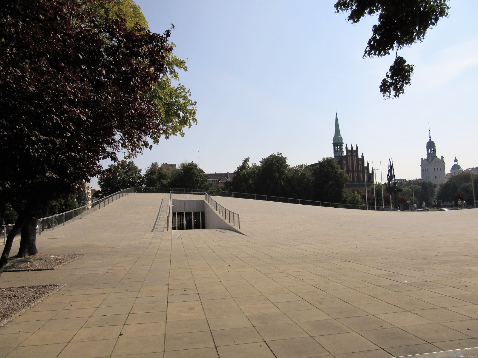 Lista atrakcji znajdujących się na Placu Solidarności oczywiście nie kończy się na gmachu Filharmonii. Wręcz przeciwnie. Dla nas największym pozytywnym zaskoczeniem okazała się otworzona w styczniu 2016 roku siedziba Centrum Dialogu Przełomy. Przez to, że budynek w większości znajduje się pod ziemią, jest on tak dobrze wkomponowany w otoczenie, że kompletnie się z niego nie wyróżnia, tworząc razem z placem pofalowaną, wyłożoną betonowymi płytami przestrzeń.