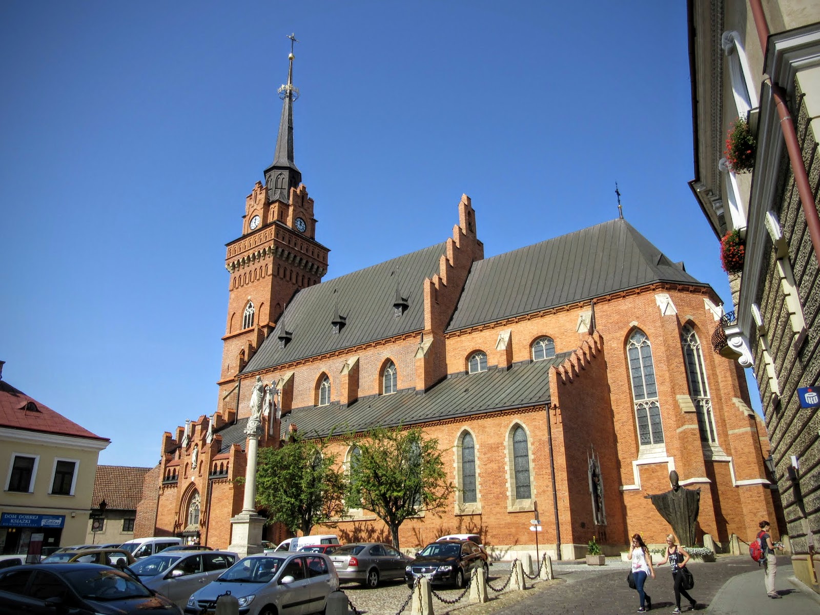 Po przerwie ruszyliśmy na dalszą eksplorację miasta, rozpoczynając od najważniejszej świątyni Tarnowa czyli Katedry p.w. Narodzenia Najświętszej Maryi Panny. Mieści się ona w sąsiedztwie Rynku, przy Placu Katedralnym, a dotarcie do niej nie powinno stanowić żadnego problemu, gdyż jej wieża (72 m.) góruje nad całą okolicą stanowiąc całkiem solidny punkt orientacyjny. Historia tego kościoła sięga XIV wieku. Wówczas, zaraz po lokacji miasta w 1330 roku, przy olbrzymim patronacie Spycimira z Tarnowskich wzniesiono jednonawową świątynię parafialną. Przez lata zyskiwała ona na znaczeniu, w 1400 roku stając się kolegiatą, a w 1783 katedrą. Od momentu powstania do kościoła dobudowywano kolejne kaplice powiększając w ten sposób jego powierzchnię. Ostateczna rozbudowa do kształtu jaki możemy obecnie podziwiać miała miejsce w XIX wieku, kiedy to w efekcie połączenia dwóch rzędów kaplic budynek zyskał dwie dodatkowe nawy boczne stając się bazyliką. Zwiedzając Katedrę koniecznie trzeba zwrócić uwagę na renesansowe nagrobki członków rodu Tarnowskich i Ostrogskich uznawane na Świecie za jedne z najcenniejszych, polskich dzieł sztuki. O ich kunszcie może świadczyć ten należący do Barbary z Tęczyńskich, który zyskał sławę najpiękniejszego w swojej epoce rzeźbiarskiego przedstawienia kobiety.