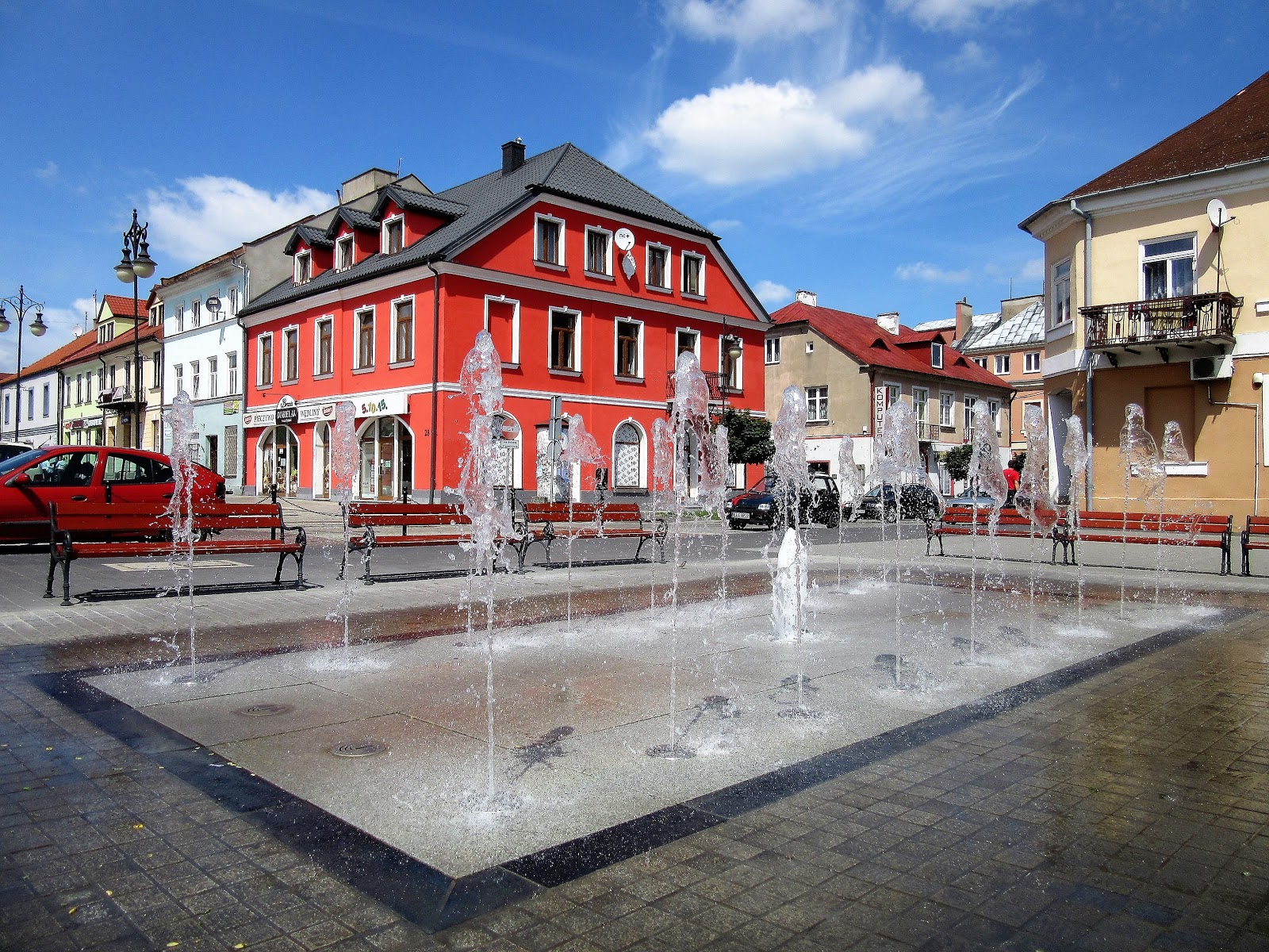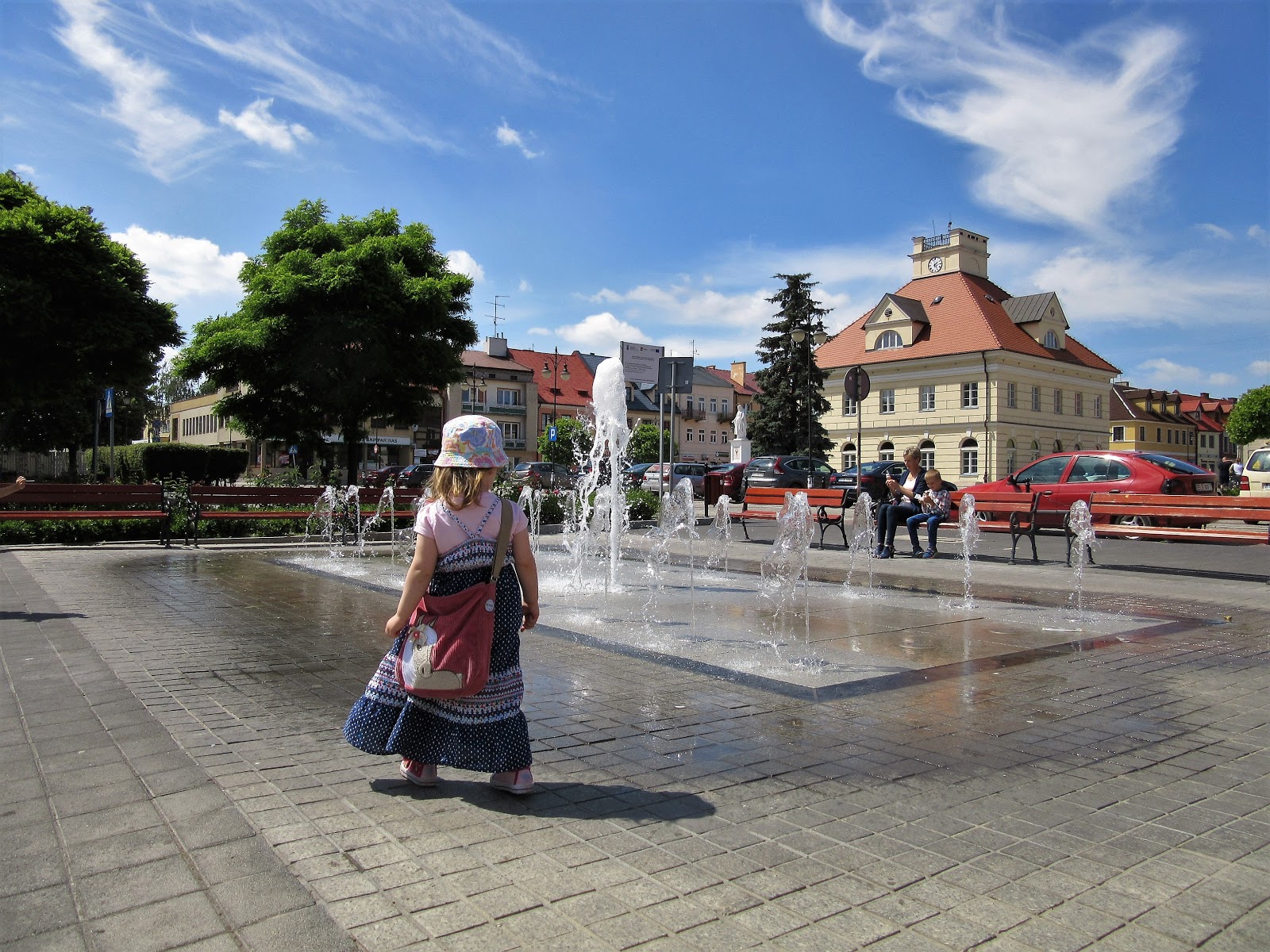 Jeżeli mowa o Rynku to właśnie on był naszym kolejnym celem, dodajmy nieodległym, ponieważ oba miejsca dzieli może 150 metrów. Starówka przeszła w 2012 roku rewitalizację, po której musimy przyznać, że prezentuje się doskonale. Ułożono między innymi nową nawierzchnię z kostki granitowej, odnowiono kolorowe XIX-wieczne kamieniczki oraz klasycystyczny Ratusz wybudowany w latach 1788-1790. Nie zapomniano również o klombach z drzewami i ławeczkach dzięki czemu jest gdzie usiąść. Największą jednak frajdą dla dzieci jest nieduża fontanna, przez którą co odważniejsze szkraby przebiegają w trakcie upalnych dni z głośnym piskiem. My mimo pięknej pogody i wysokiej temperatury może nie wskakiwaliśmy do środka ale za to zdecydowaliśmy się właśnie tam zrobić sobie krótką przerwę i odpocząć zajadając się przy tym tradycyjnymi, przygotowywanymi we własnej pracowni lodami zakupionymi w pobliskiej Cukierni Wasiakowie. Smakowały wyśmienicie i przywoływały dawne czasy, kiedy jeszcze nie było sieciówek typu Algida.