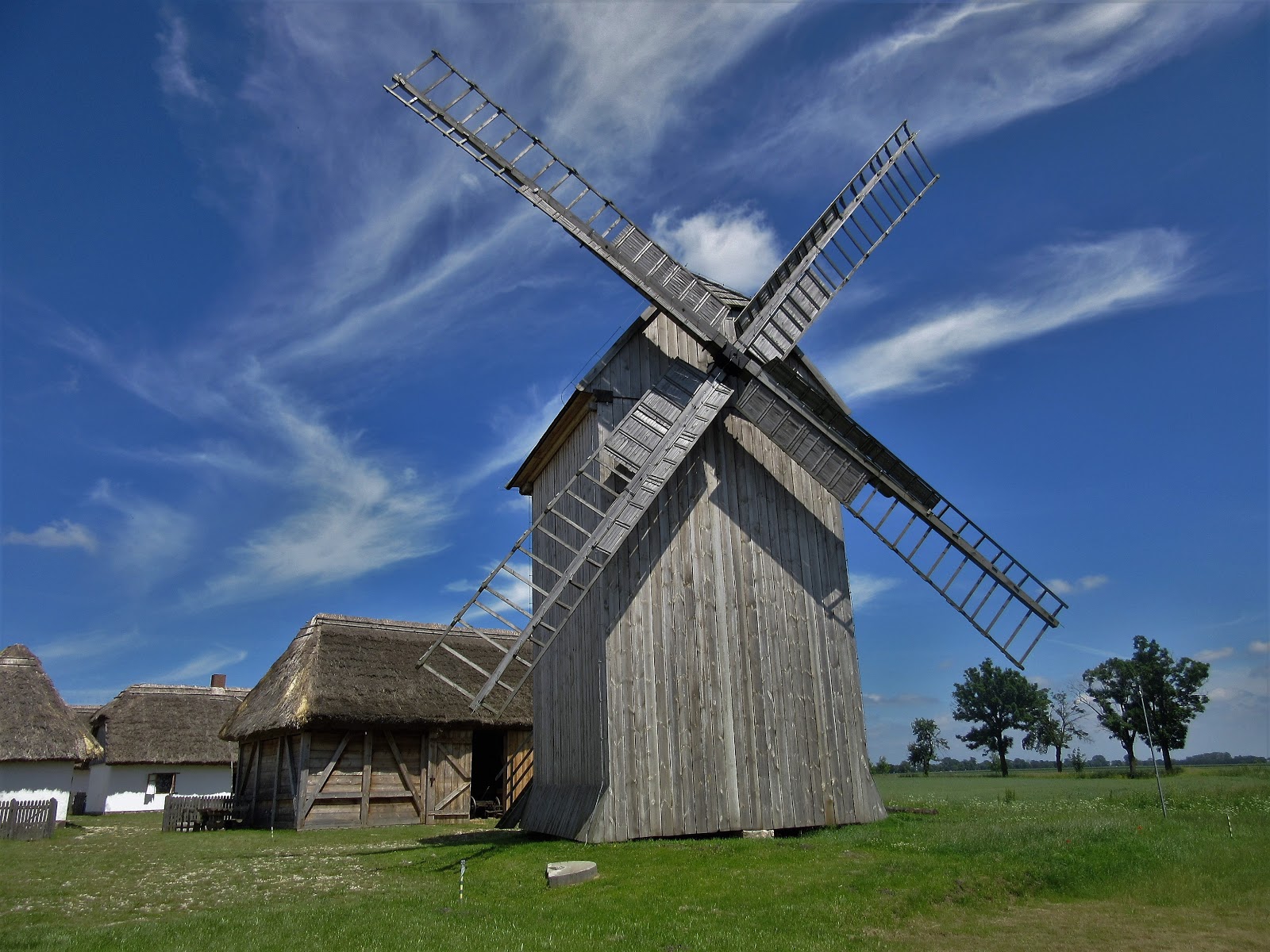Sam skansen może nie jest duży, bo obejmuje ledwie kilka zabudowań mieszkalnych oraz gospodarczych, jednak 9 PLN które należy wydać na bilet na pewno nie będzie pieniędzmi wyrzuconymi w błoto. Już chociażby zobaczenie wnętrza pochodzącego ze wsi Zawada, a stworzonego w 1820 roku wiatraka typu koźlak wraz z całym jego wyposażeniem będzie dla wielu osób nie lada atrakcją, a to tylko początek naszej listy elementów godnych uwagi w tym niezwykle malowniczym miejscu. Dużym plusem, zwłaszcza dla dzieci, jest również fakt, iż część elementów można dotykać oraz empirycznie sprawdzić mechanizm ich działania. I tak na przykład można się osobiście przekonać jak funkcjonuje studnia z żurawiem oraz zasiąść „za sterami” bryczki, oczywiście bez koni, ale uwierzcie wyobraźnia dzieci nie zna granic (Madzia raz była woźnicą, a raz koniem, który ciągnął powóz, więc nas już raczej nic nie zdziwi). Poza tym na terenie skansenu znajduje się między innymi olejarnia i kuźnia, które jeżeli wierzyć zapewnieniom pracowników wciąż są sprawne i od czasu do czasu wykorzystywane. Wytworzony olej rzepakowy używa się chociażby do smarowania mechanizmu koźlaka, a z usługi kowala mogą skorzystać turyści podróżujący przebiegającym tuż za miedzą konnym szlakiem.