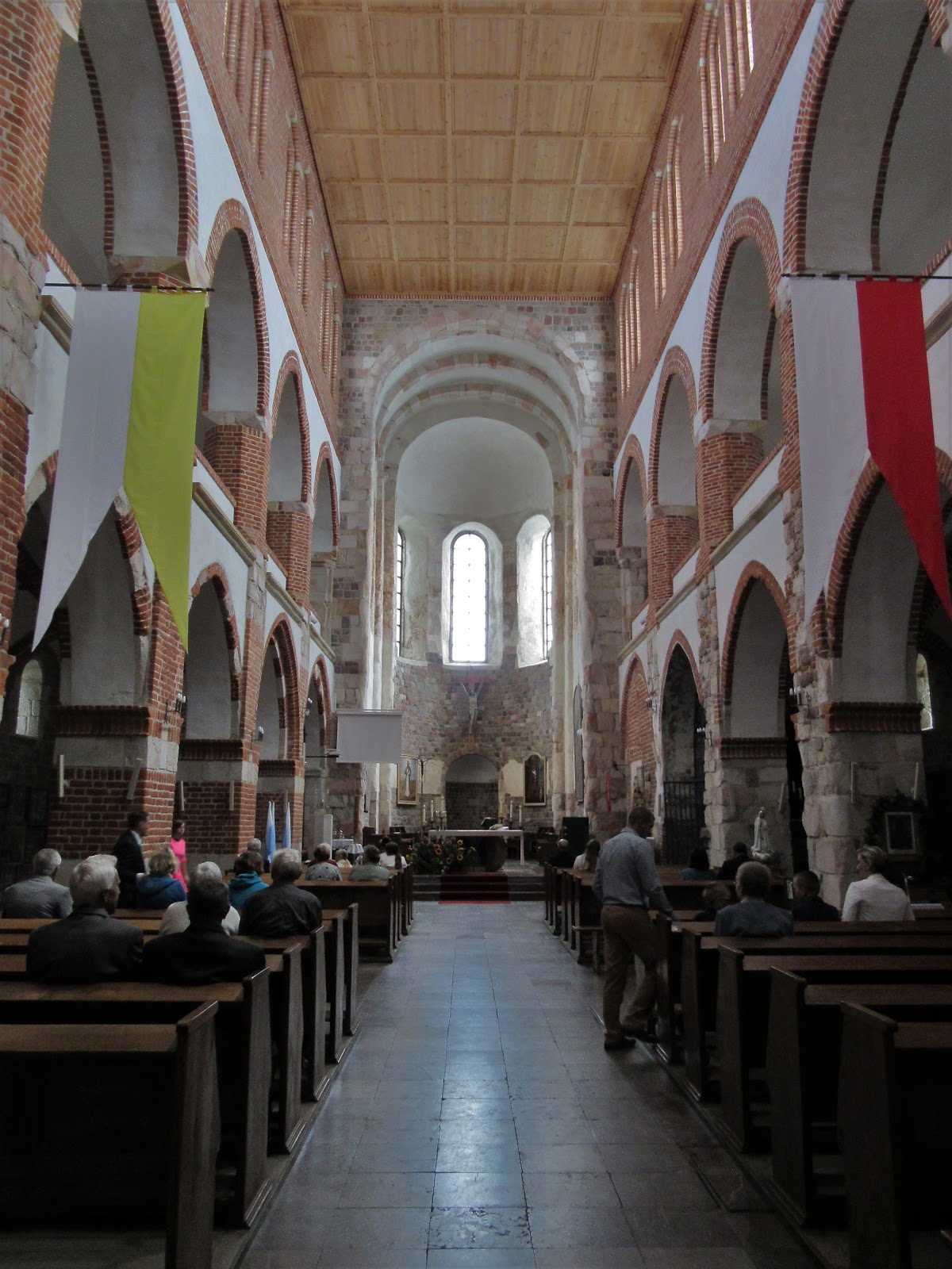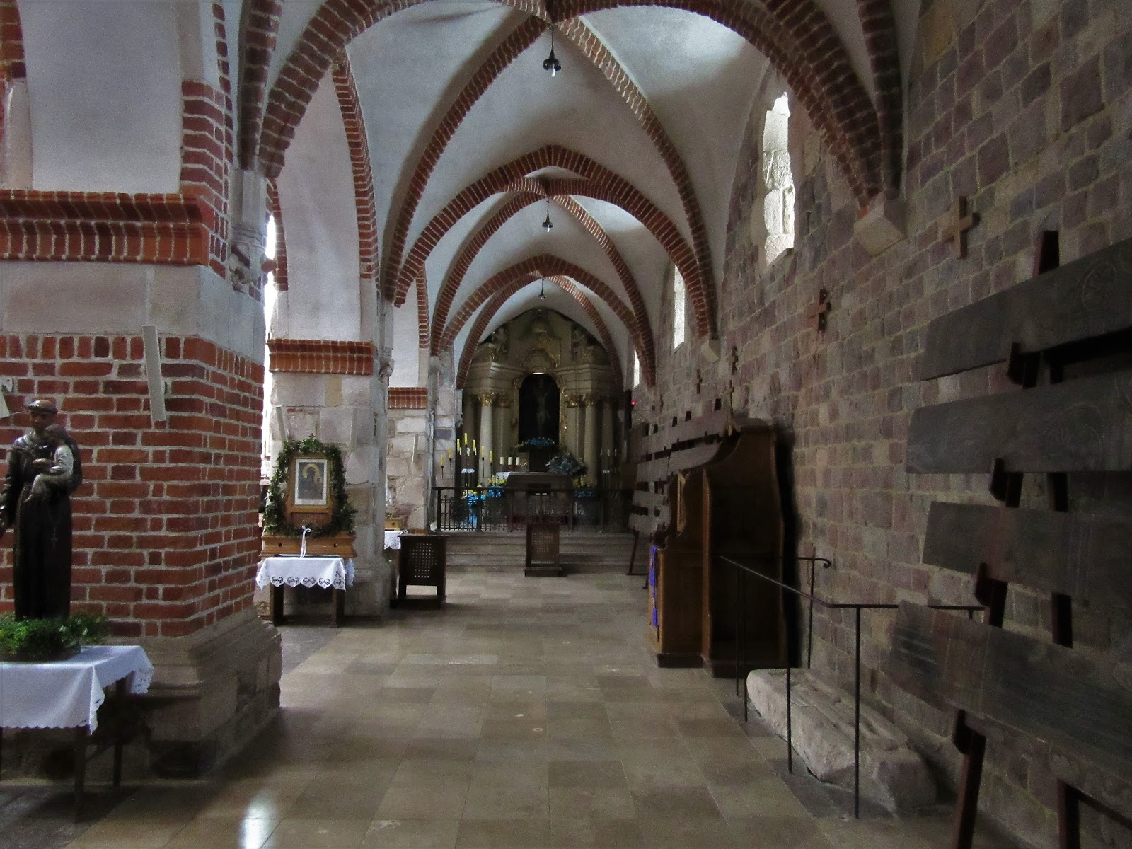 Jeszcze większym zaskoczeniem dla nas okazało się wnętrze archikolegiaty, które intryguje i zachwyca swoją surowością. Gołe, kamienne mury oraz lekki półmrok sprawiają, że wciąż da się tu wyraźnie wyczuć ducha średniowiecza. Nie zmieniają tego nawet dodane do wystroju znacznie później elementy gotyckie, czy też zamontowany parę lat temu podwieszany, drewniany strop, który zakrył paskudną, żelbetową konstrukcję z czasów powojennej odbudowy. Po prostu historię czuć w tym miejscu z każdym kolejnym krokiem stawianym na marmurowej posadzce. Gdy tylko weszliśmy do środka od razu wyobraziliśmy sobie zakapturzonych braciszków śpiewających chorały gregoriańskie, dym kadzidła oblepiający wszystko wokół oraz wiernych w dawnych strojach. Trzeba przyznać że o takie skojarzenia tu akurat nietrudno, bo całość na prawdę spowija aura pewnej tajemniczości, która powoduje, iż mimo braku barokowych kaplic i zdobień ta niesamowita świątynia jest nader interesująca i warta odwiedzenia. Zwiedzając tumską archikolegiatę szczególną uwagę należy zwrócić na fragmenty XII-wiecznej polichromii zachowanych na stropach apsydy, a przedstawiające Chrystusa Pantokratora oraz piękny romański portal wejściowy, który doceniono już nawet w XVI stuleciu osłaniając go renesansową kruchtą.