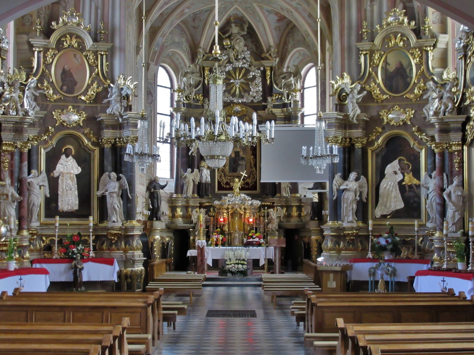 Na koniec naszej wizyty w Łęczycy nie mogliśmy pominąć jeszcze jednego punktu na mapie miasta- kościoła klasztornego Bernardynów pw. Niepokalanego Poczęcia NMP. Z Rynku najlepiej dojść do niego malowniczą ulicą Poznańską otoczoną z dwóch stron kolorową, piętrową zabudową. Mimo, że świątynia z zewnątrz nie prezentuje się zbyt okazale, to jej wnętrze skrywa prawdziwe skarby barokowej sztuki sakralnej, które zachwycą każdego kto tylko tutaj zaglądnie. Obecny wystrój oraz polichromie pochodzą z XVII-XVIII w. i są jednymi z najpiękniejszych w całym województwie łódzkim. Nam niestety nie udało się wejść do środka, ale nawet przez kraty w drzwiach doskonale widać było ołtarz oraz dużą część nawy głównej, które zaskoczyły nas bardzo swoim przepychem. Warto zatem zgrać wizytę w tym miejscu z czasem, kiedy odbywają się nabożeństwa, wówczas na pewno uda Wam się zwiedzić środek. A póki co możecie przeczytać bardzo fajny opis historii świątyni oraz zakonu Bernardynów z Łęczycy klikając TUTAJ.