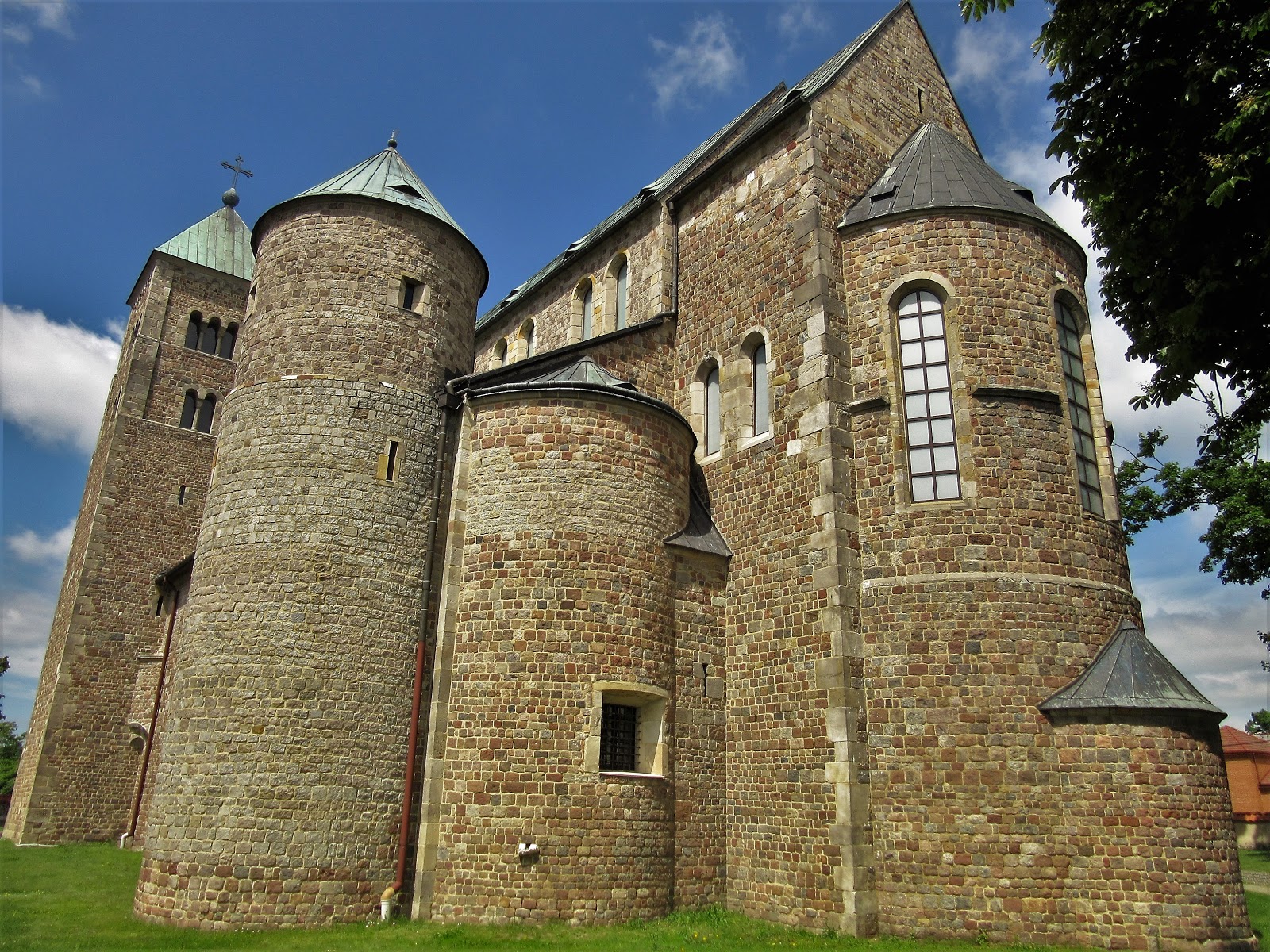 Archikolegiatę NMP i św. Aleksego w Tumie doskonale widać już z odległości kilku kilometrów. Jej masywna, romańska bryła, której nie powstydziłyby się najznamienitsze świątynie chociażby w samym Krakowie, dość wyraźnie kontrastuje z wszechobecnymi w całej okolicy polami oraz prowadzącą doń wąską, asfaltową szosą, gdzie z trudem mijają się dwa auta osobowe. To nasz pierwszy cel tego dnia oraz doskonale miejsce, by rozpocząć opowieść o Łęczycy. Możecie zapytać: dlaczego akurat tam? Już śpieszymy z tłumaczeniem… Wprawdzie współczesny Tum jest tylko niewielką wsią, lecz niech Was nie zmylą pozory. Nie zawsze tak było. W rzeczywistości miejscowość może się poszczycić naprawdę bogatą oraz zaskakującą historią, sięgającą czasów na długo przed tym, zanim w ogóle zaczęło się rodzić Państwo Polskie. Odkryto tu bowiem pozostałości dawnego grodziska obronnego, którego najstarsze odkopane fragmenty datowane są na VI wiek. Chyba już się domyślacie jak owo grodzisko się nazywało? Dokładnie. Łęczyca – czyli miejsce pośród łąk. Dopiero wiele stuleci później, bo w XIII w., kiedy powstała parę kilometrów dalej osada targowa, to ona przejęła nazwę, którą posługuje się zresztą do dzisiaj.