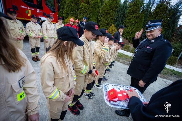 Na pamiątkę 80. urodzin burmistrz Żarowa Przemysław Sikora przekazał na ręce druhów z Młodzieżowej Drużyny Strażackiej proporzec w ramach uznania za działalność na rzecz dzieci i młodzieży. Podczas uroczystości prezes zarządu Oddziału Wojewódzkiego Związku Ochotniczych Straży Pożarnych RP Tomasz Stanowski uhonorował strażaków brązowymi i srebrnymi medalami za zasługi dla pożarnictwa. Brązowe medale otrzymali Wojciech Plizga i Karol Borowski, srebrny medal otrzymał Michał Cieślik.