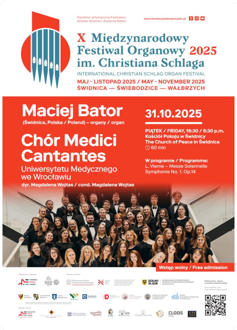 – Wystąpi znakomity Chór Medici Cantantes Uniwersytetu Medycznego we Wrocławiu pod dyrekcją Magdaleny Wojtas, a przy organach zasiądzie Maciej Bator – świdnicki organista, koncertujący w kraju i za granicą, a zarazem współtwórca Festiwalu i pasjonat odrestaurowanych organów Schlaga – zapowiada organizator.