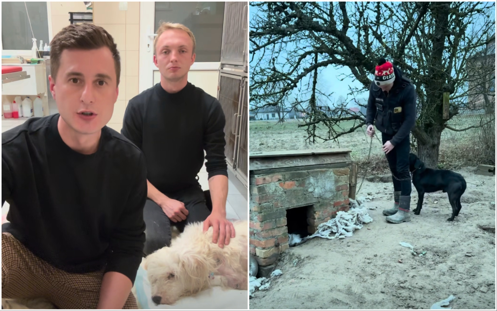 Konradowi Kuźmińskiemu i Erykowi Złotemu zarzucono, że 7 stycznia 2024 roku w miejscowości Brąszewice (pow. sieradzki) z terenu nieogrodzonej posesji dokonali kradzieży psa trzymanego na uwięzi przy pomocy łańcucha, powodując straty w wysokości 300 zł. Przedstawiciele DIOZ tłumaczyli, że podjęli interwencję w sytuacji skrajnego zagrożenia życia zwierzęcia. – Pies rasy mieszanej był trzymany na łańcuchu, w dziurawej budzie bez wyściółki, bez szczepień, w otoczeniu śmieci i pustych butelek po alkoholu. Tego dnia Instytut Meteorologii i Gospodarki Wodnej ogłosił alert o siarczystych mrozach, a temperatura wynosiła od –7 do –10°C. Zwierzę to nie miało zapewnionej ochrony przed zimnem, ani minimalnych standardów bytowych. Każdy racjonalny człowiek w tej sytuacji musiałby stwierdzić, że życie i zdrowie psa są bezpośrednio zagrożone – wyjaśniali.