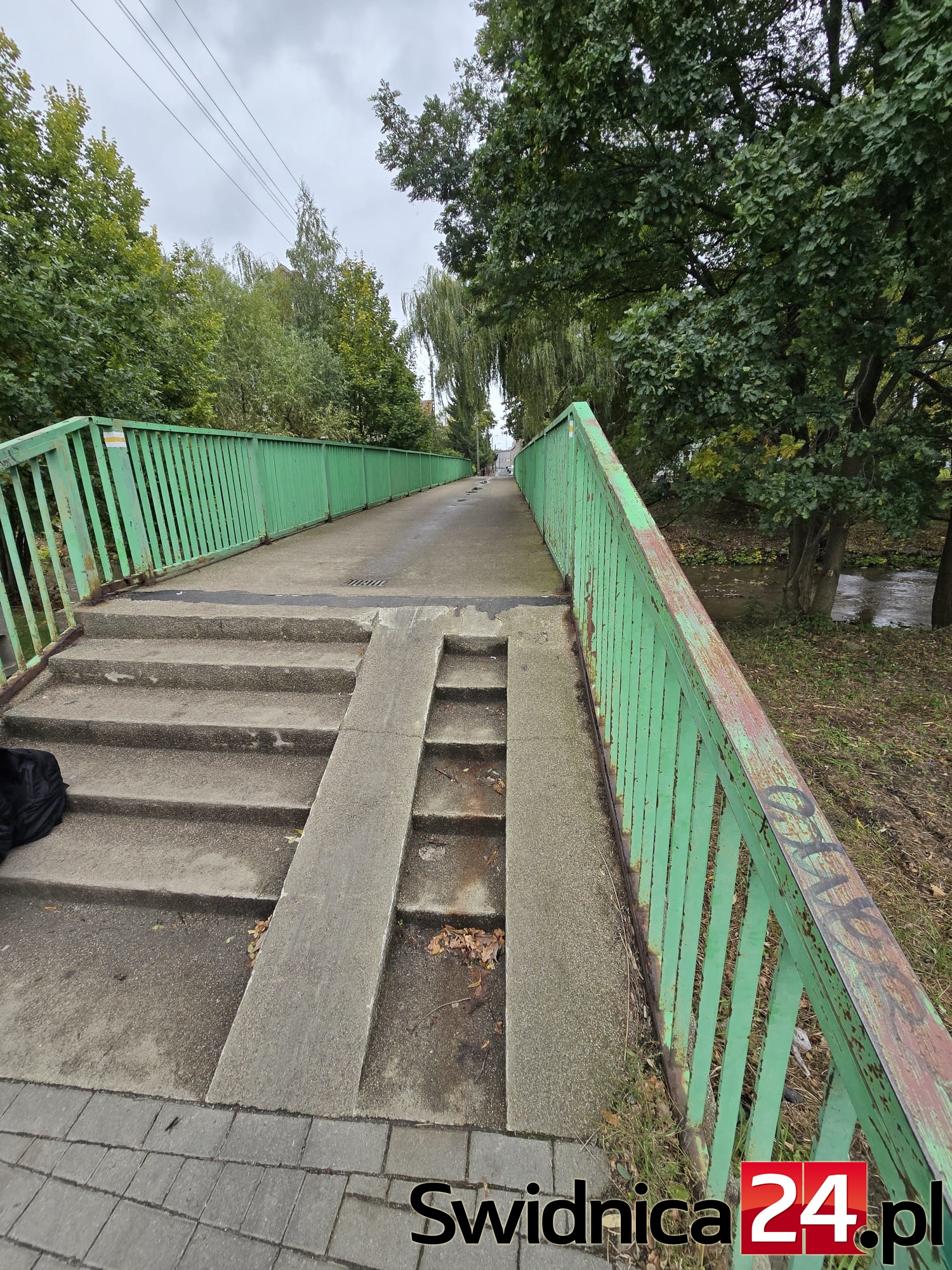 O zaniedbanej kładce nad rzeką Bystrzycą pisaliśmy 17 września w związku z interwencją świdniczanina, który alarmował o zagrożeniu, jakie stwarzają usychające gałęzie wierzby, wiszące tuż nad nad głowami przechodniów. Okazało się przy tym, że sama przeprawa nad wodą jest zaniedbana, straszą rdzewiejące balustrady z brakującymi szczeblami i nie widać śladów sprzątania na kładce i wokół niej.