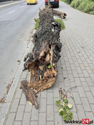 Strażacy o powalonym drzewie, które złamało się tuż nad ziemią jak zapałka i spadło wprost na jezdnię, zostali powiadomieni o godzinie 15.40. To czas największego ruchu komunikacyjnego i można mówić o sporym szczęściu, że nie doszło do tragedii. Po opublikowaniu informacji o zdarzeniu jeden z czytelników w komentarzu stwierdził, że o złym stanie zarówno drzewa, które spadło na jezdnię, jak i rosnącego zawiadamiał telefonicznie panią Kogut w Urzędzie Miejskim (Renata Kogut pełni funkcję zastępcy dyrektora w wydziale dróg i infrastruktury miejskiej Urzędu Miejskiego w Świdnicy). – Nie odnotowano zgłoszenia o złym stanie drzewa ani w formie pisemnej, ani mailowej ani też telefonicznej czy osobistej. Takie zgłoszenia, niezależnie od formy, są zawsze sprawdzane podczas wizji w terenie – twierdzi rzeczniczka ratusza Magdalena Dzwonkowska.