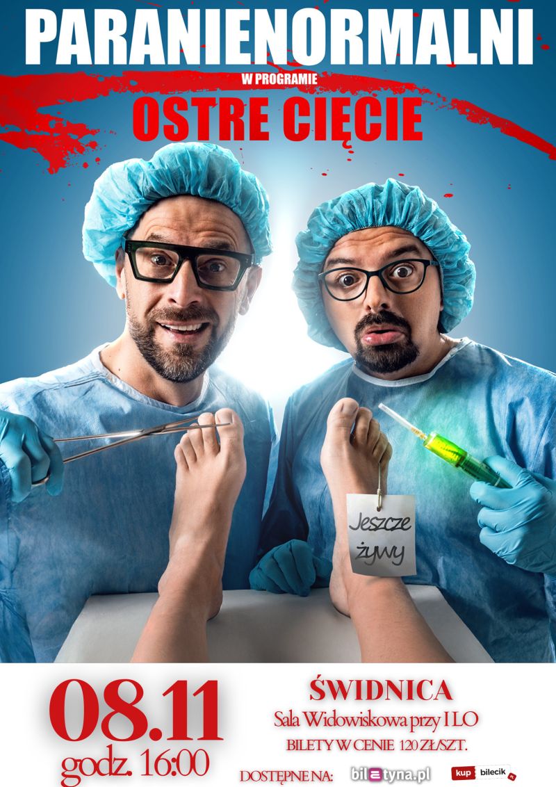 Jeden z najbardziej rozpoznawalnych polskich kabaretów wystąpi 8 listopada o godz. 16.00 w auli widowiskowej I LO w Świdnicy (ul. Pionierów 30). Tym razem Paranienormalni zaprezentują program „Ostre Cięcie”.