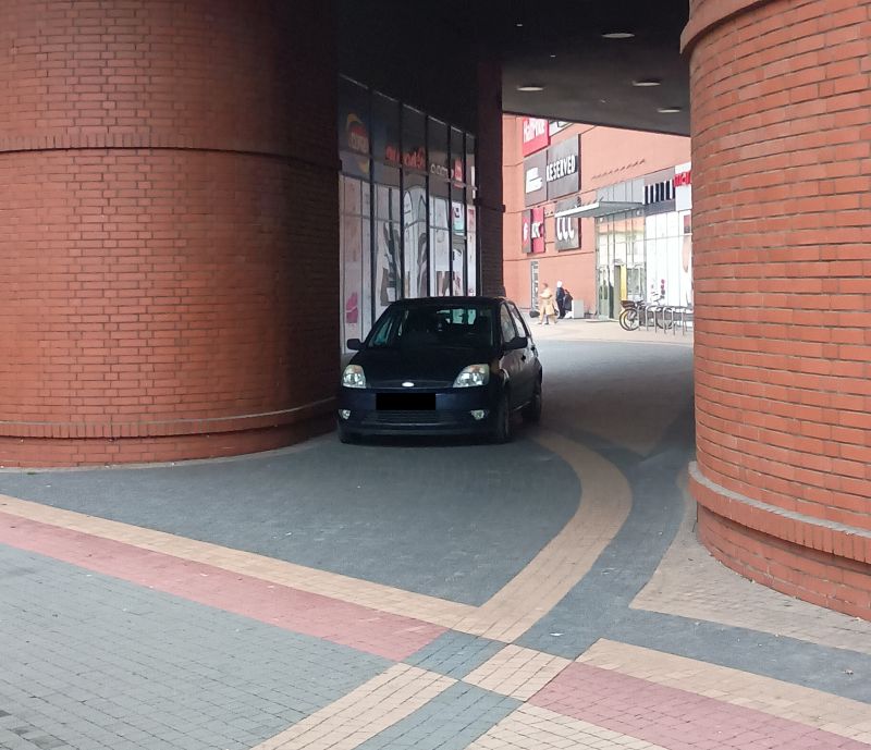 ul. Westerplatte. Autor zdjęcia komentuje: Znów w moim obiektywie złapany mistrz parkowania. Tym razem w przejściu przy Galerii Świdnickiej. Ktoś może stanąć w jego obronie ze słowami, że przecież jest miejsce, żeby przejść, że dwa wózki się spokojnie miną, ale chodzi mi o to bardziej, jak tam pojazd tam wjechał? Przecież nie ma tam wjazdu! Żeby się tam dostać, trzeba dobre kilkadziesiąt metrów jechać chodnikiem.