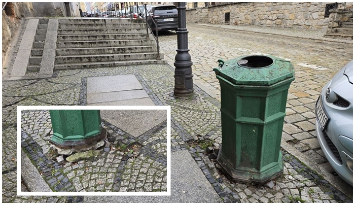 Ciężkie, metalowe pojemniki na odpady od lat są stałym elementem krajobrazu w centrum Świdnicy. Na ul. Pułaskiego kosz od dłuższego czasu był osadzony w chodniku byle jak. 20 października w tej sprawie skierowaliśmy pytania do urzędu miejskiego, próbując dociec, kto odpowiada za troskę o mała infrastrukturę w mieście i jakie działania zostały podjęte, by wyeliminować zagrożenie?