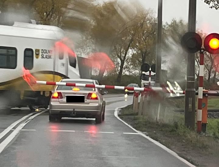 Do niebezpiecznej sytuacji doszło w czwartek, 23 października na przejeździe kolejowym w przebiegu drogi krajowej nr 35 między Pszennem a Marcinowicami. Samochód osobowy znalazł się za rogatkami, tuż przed nadjeżdżającym szynobusem.