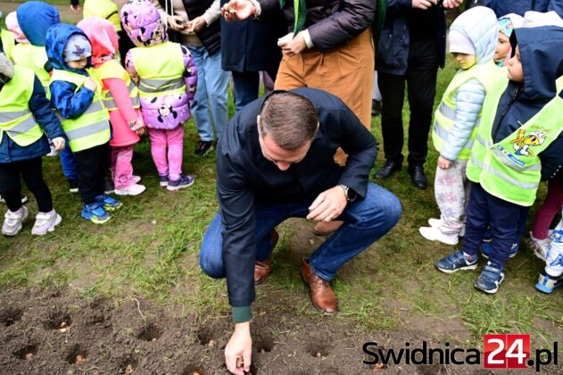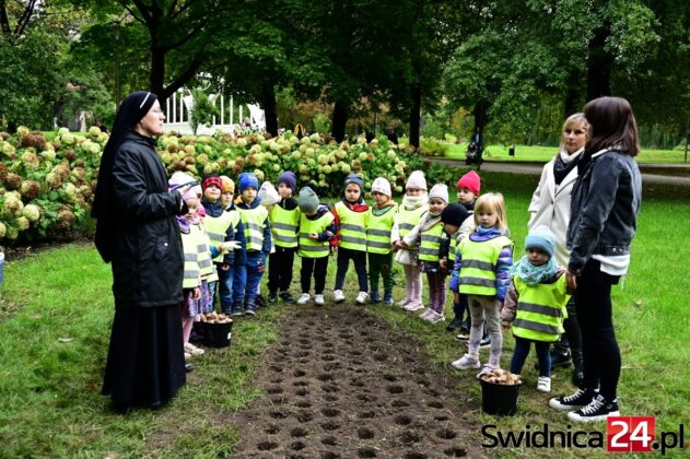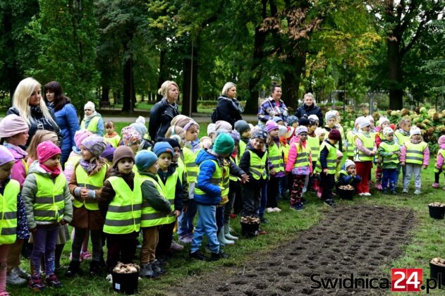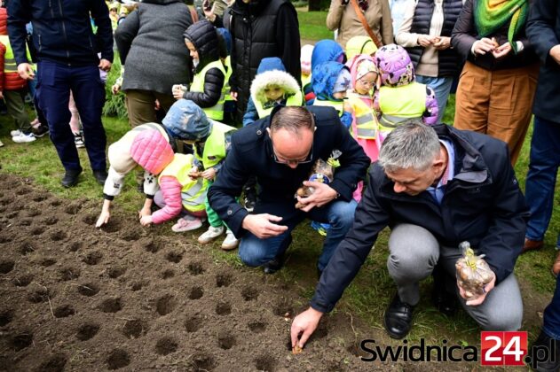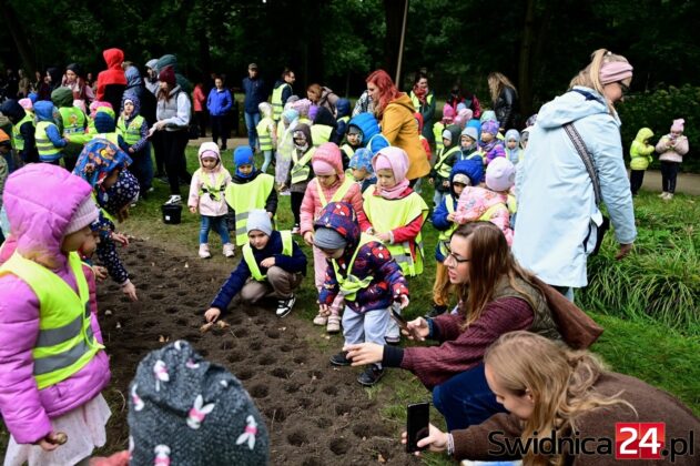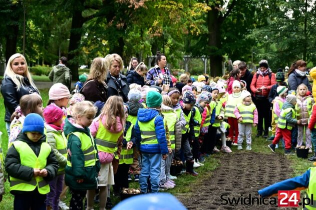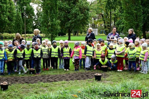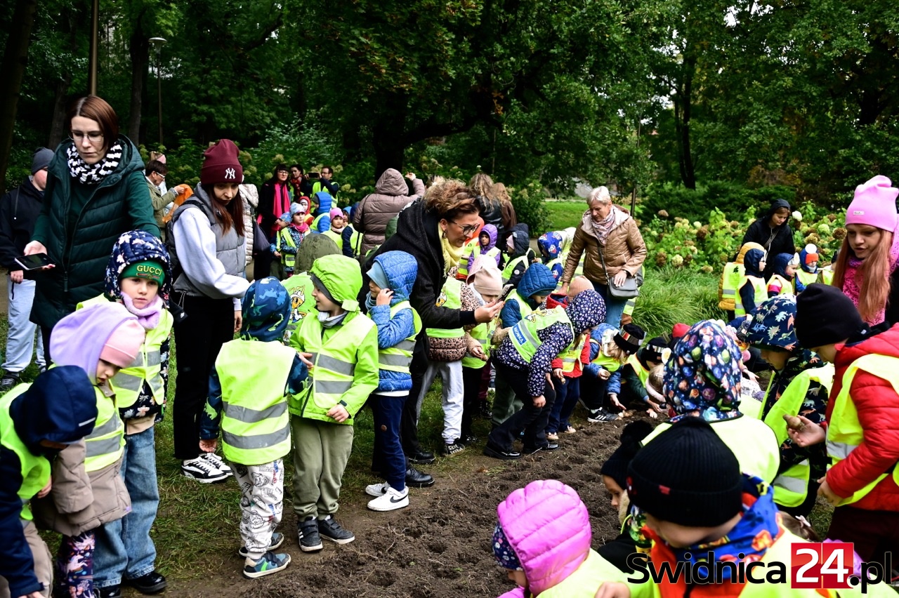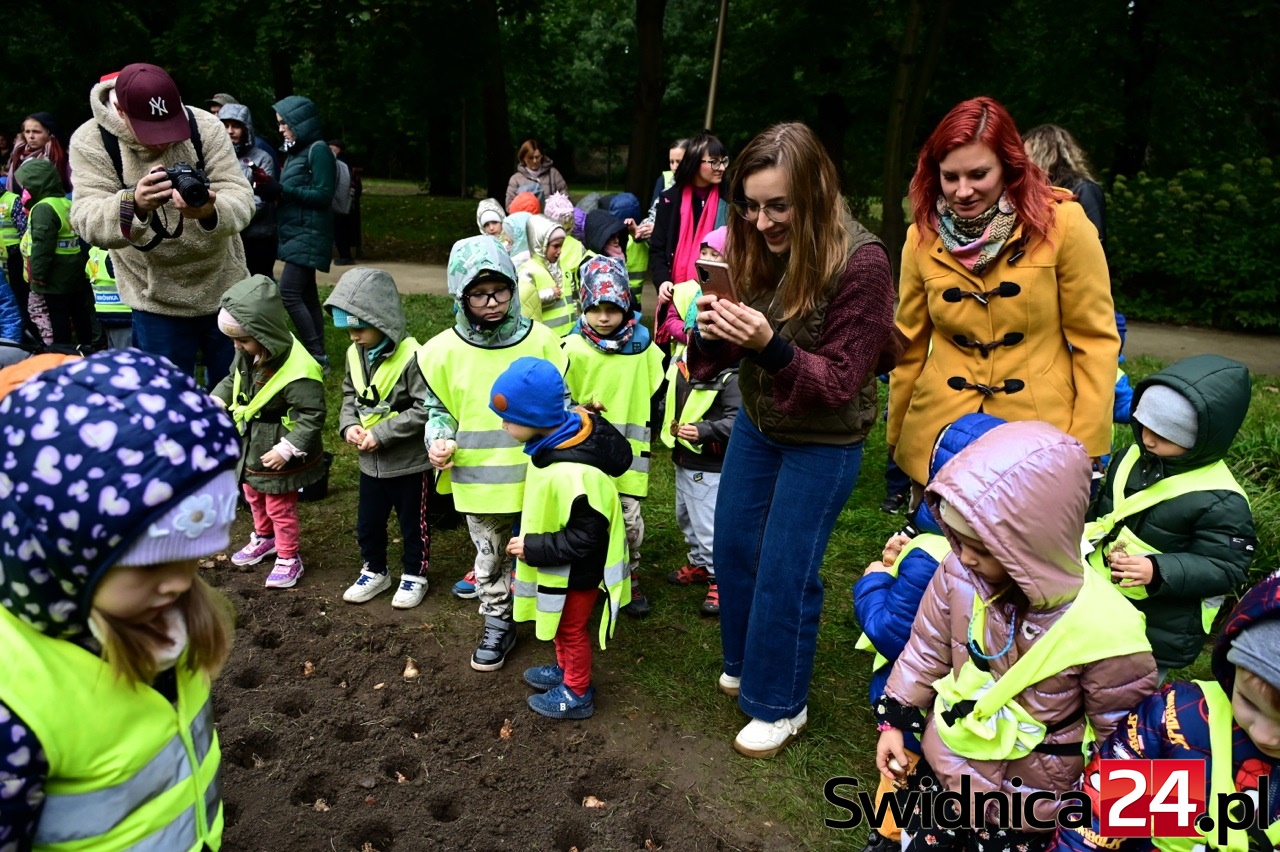 Mimo siąpiącego deszczu przedszkolaki ze Świdnicy i gminy Świdnica przy wsparciu dorosłych dzielnie sadziły w Parku Centralnym symboliczne Pole Nadziei. – Z tych cebulek na wiosnę wyrośnie łan żonkili, które potem w paradzie wokół Rynku rozdamy wspólnie – zapowiadała Gabriela Kaczkowska, prezes Towarzystwa Pomocy Chorym Hospicjum w Świdnicy. – Niech dobro wzrasta – zachęcał hm Piotr Pamuła z Hufca ZHP w Świdnicy.