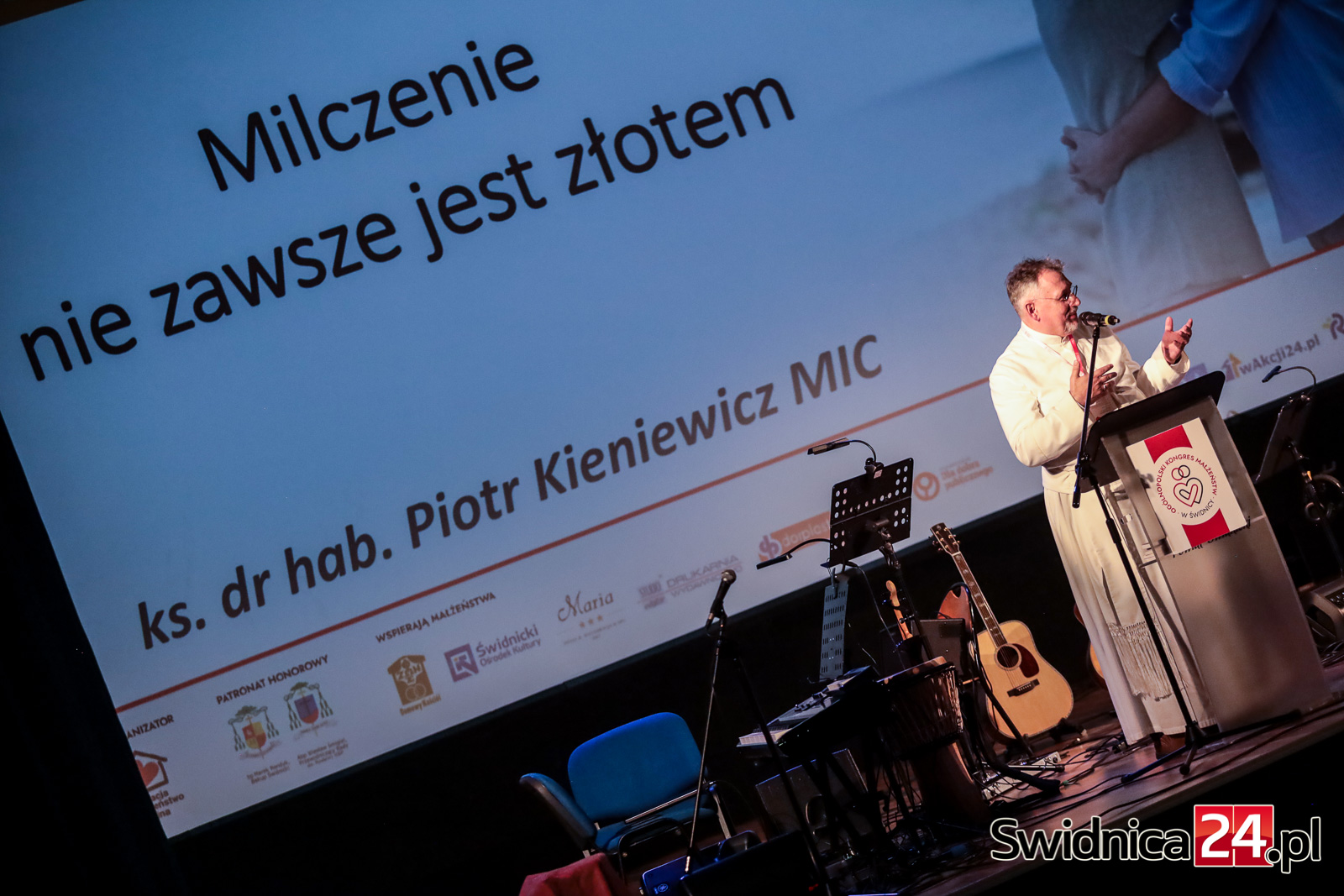 Hasłem tegorocznego Kongresu Małżeństw jest „słowo i milczenie”. – Zawsze zastanawiamy się, jakie hasło, jaki temat, ma towarzyszyć Kongresowi. Tegoroczne „słowo i milczenie” zaprasza nas do refleksji nad czymś bardzo prostym, a jednocześnie niezwykle trudnym. Jak rozmawiać, by się rozumieć i jak milczeć, by nie oddalać się od siebie. Wiemy, że mamy dużo hałasu wokół siebie, dużo różnych opinii i natychmiastowych reakcji, a małżeństwo pozostaje tym miejscem, gdzie uczymy się prawdziwej rozmowy i prawdziwej komunikacji, jako bycia razem – nie tylko przez słowa, ale także przez obecność, spojrzenie, gest, czułość, a czasem nawet przez to wspólne milczenie – tłumaczył podczas inauguracji wydarzenia ks. dr Krzysztof Ora, dyrektor wydziału duszpasterskiego Świdnickiej Kurii Biskupiej i współorganizator Kongresu Małżeństw.