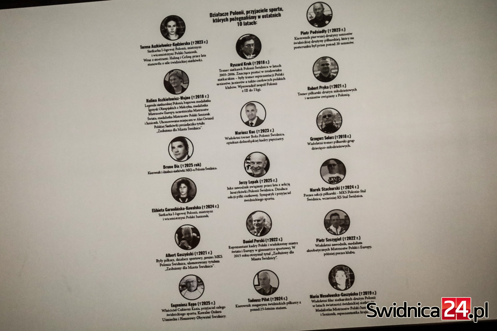 Podczas sobotniej gali w I Liceum Ogólnokształcącym w Świdnicy – organizatorzy i przedstawiciele czterech sekcji (piłka nożna, siatkówka, akrobatyka i boks) skupili się przede wszystkim na ostatnich 10 latach, które upłynęły od czasu ostatnich obchodów 70-lecia w 2015 roku. Gala stała się okazją do wręczenia wyróżnień i przekazania podziękowań dla zasłużonych zawodników, trenerów, partnerów klubu oraz działaczy. – To dzięki wam ten klub od 80 lat żyje, rozwija się i nieustannie walczy na boiskach, parkietach, matach i ringach. Cieszymy się dzisiejszym spotkaniem i celebrujemy razem to piękne, jubileuszowe święto – mówił Dariusz Stachurski, prezes piłkarskiej Polonii.