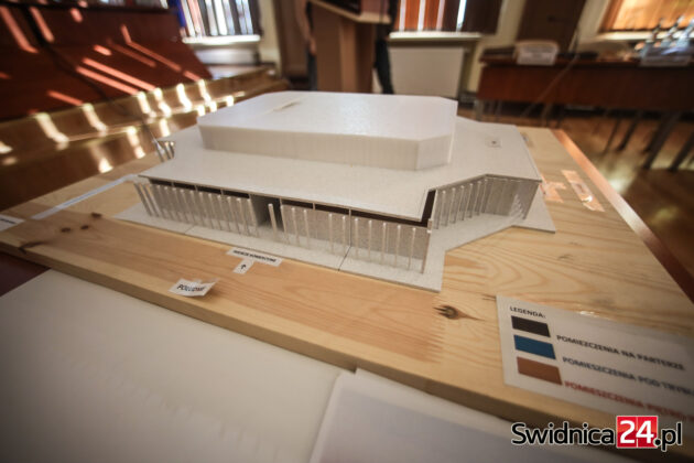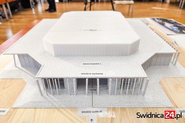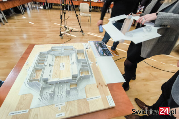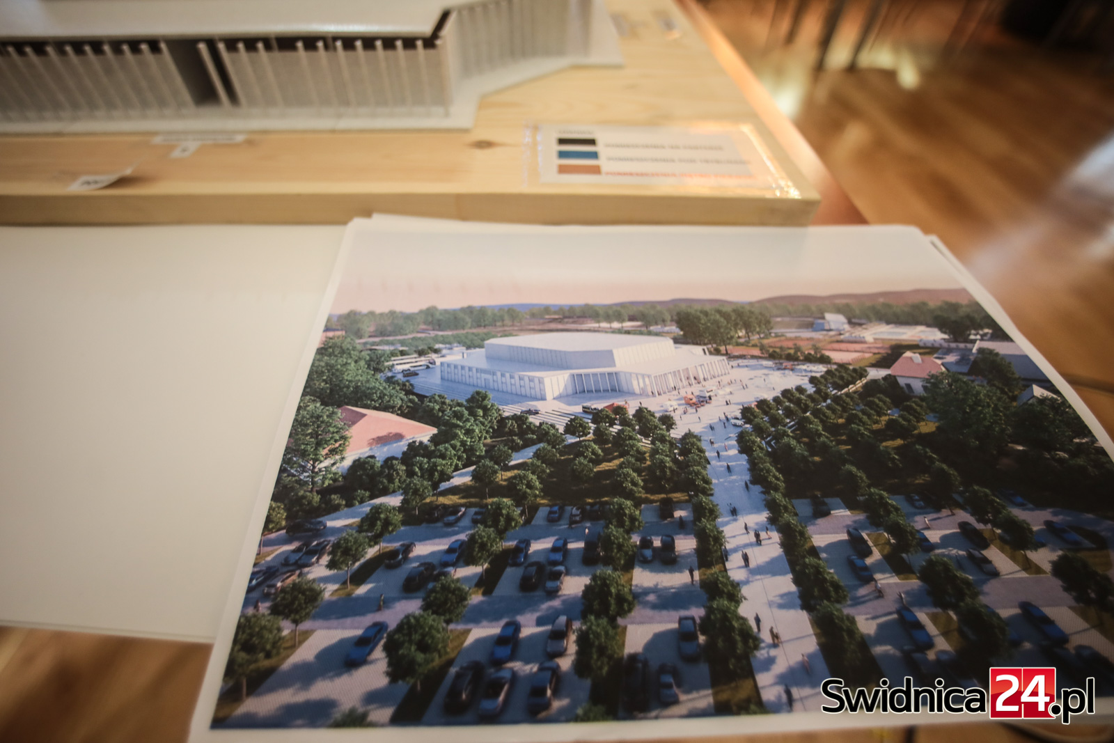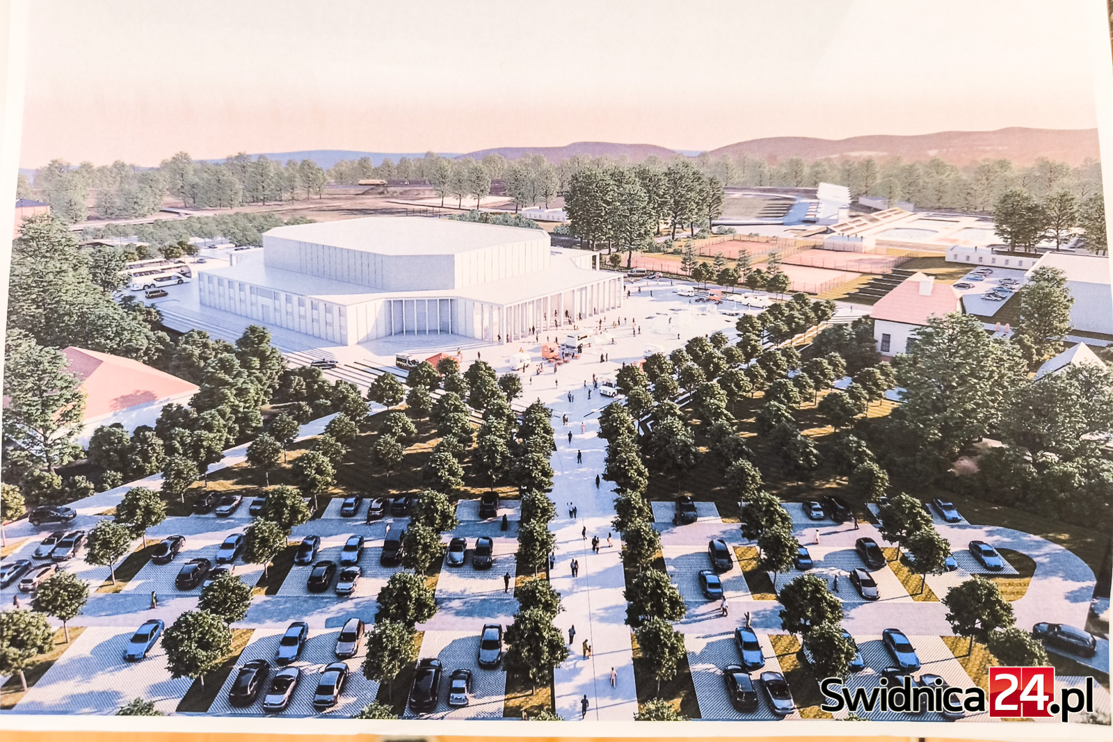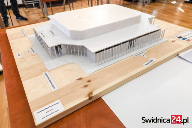 – Architektura obiektu odpowiadać będzie randze nowoczesnej hali widowiskowo-sportowej o znaczeniu miejskim. Nowoczesna forma bryła z klasycznym sznytem, elegancka, naturalnie wyglądająca elewacja. W zamyśle ta elewacja wykonana byłaby z tzw. współczesnego kamienia, czyli – w żargonie architektonicznym – z betonu architektonicznego. Wszystkie widoczne elementy zewnętrzne, stanowiące ozdobę bryły, tzw. arkady, zadaszenia, jak i sama elewacja, wykonane mają być z prefabrykowanych elementów żelbetowych. Zadaszenie płyty głównej to lekka, wyniesiona konstrukcja zwieńczająca budynek. Zakłada się stosowanie dużych przeszkleń w konstrukcji. Architekci celowo i świadomie odeszli od nawiązywania kubaturą czy architekturą tej hali do otoczenia. Hala ma stanowić dominantę w tym miejscu, ma być elementem wyróżniającym się. Co do zasady, jak każda hala widowiskowo-sportowa, nie jest elementem małym i nie jest to bryła, która wtopi się w otoczenie. Jej wielkość będzie powodowała, że będzie mocno wyeksponowana. Stąd też architekci zwracają uwagę na to, że powinna być klasyczna i elegancka, czyli ma to być coś, co będzie nie tylko służyło mieszkańcom Świdnicy, ale będzie też odpowiednio wyglądało – wskazywała Salus.