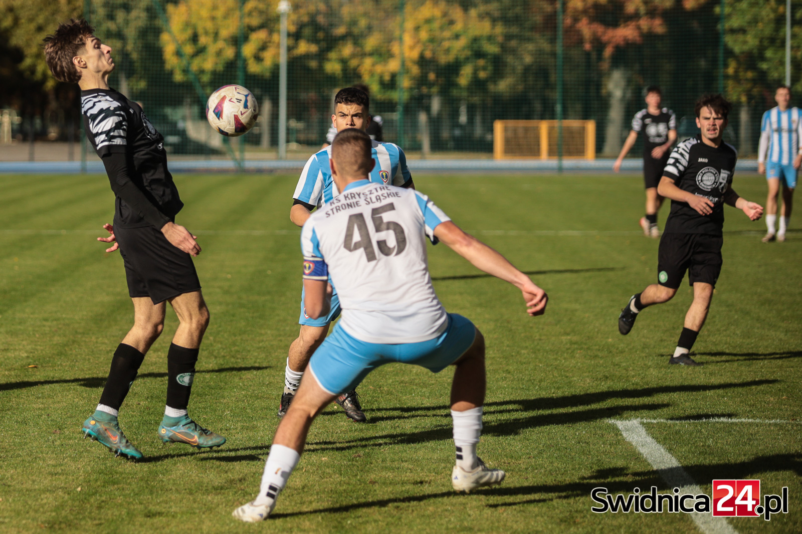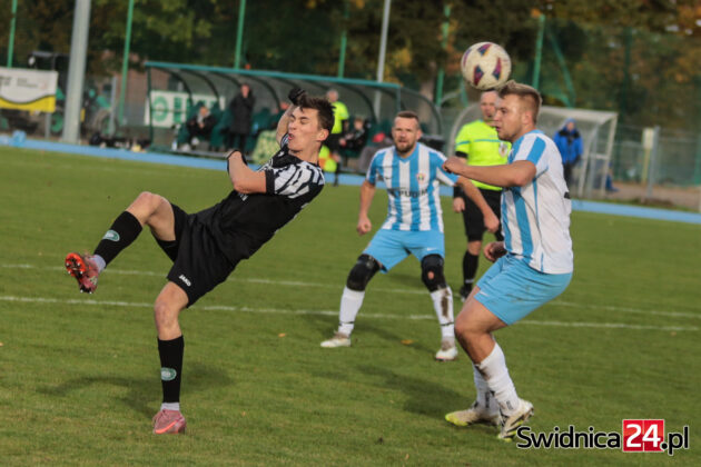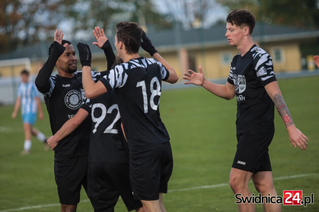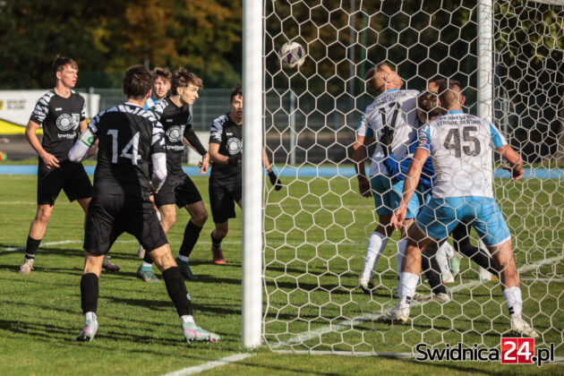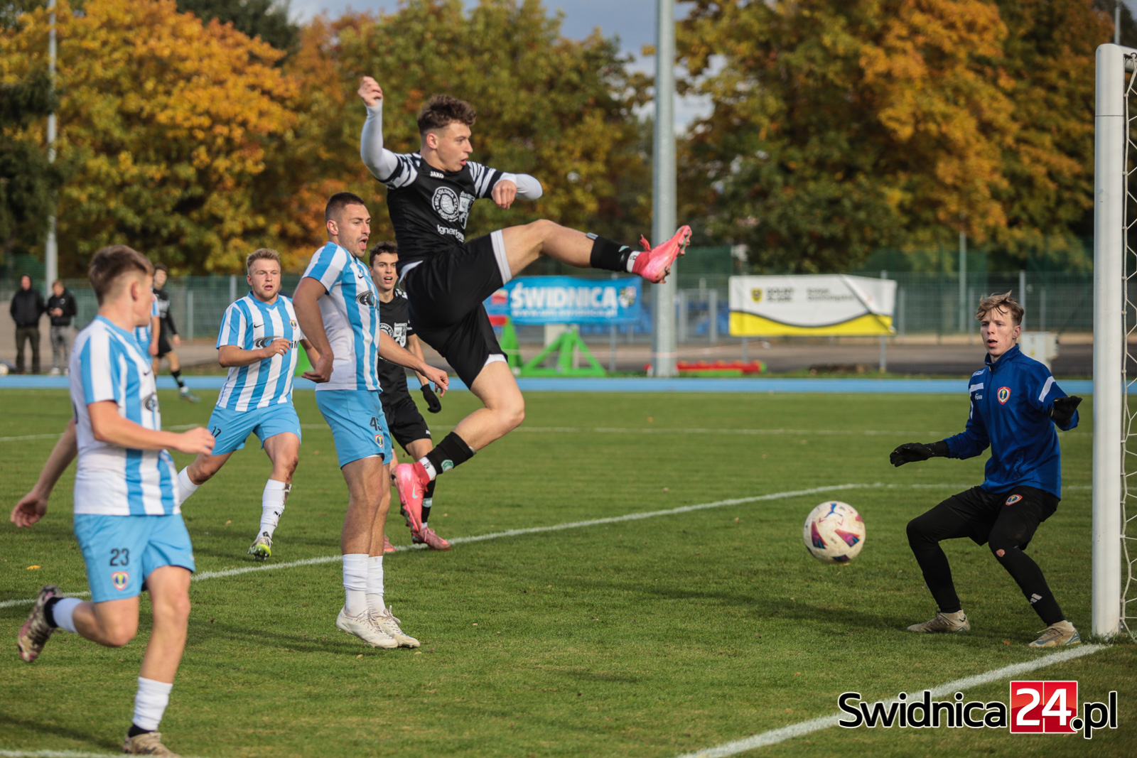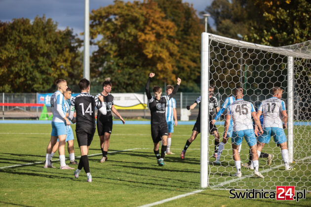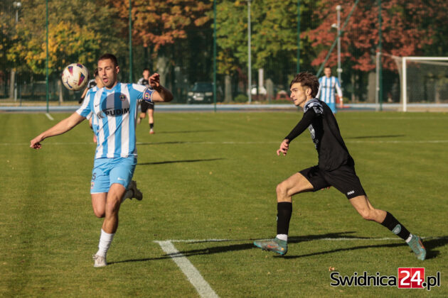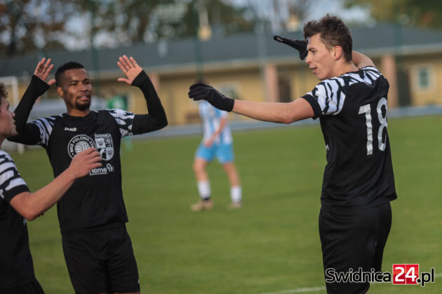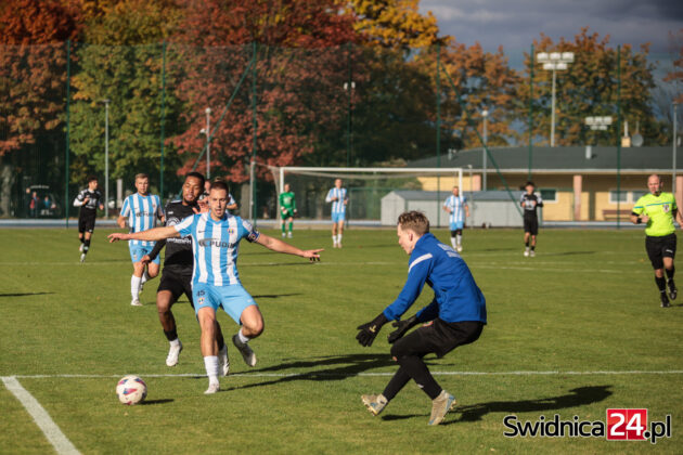 Świdniczanie mający w nogach ciężki, pucharowy bój z czwartoligową Lechią Dzierżoniów (porażka w środę 0:2), strzelanie rozpoczęli bardzo szybko. Chwilę po kwadransie gry było już 2:0 dla gospodarzy. Najpierw zamieszanie w polu karnym wykorzystał Michał Dryja, a następnie świetnym uderzeniem popisał się Mateusz Mojka. Przez całe spotkanie inicjatywę posiadali nasi piłkarze, ale ambitnie grający rywale też od czasu do czasu starali się zaskoczyć biało-zieloną defensywę. Finalnie padł jeszcze jeden gol. W drugiej części pojedynku wynik na 3:0 mocnym strzałem ustalił Kolumbijczyk Juan Felipe.
