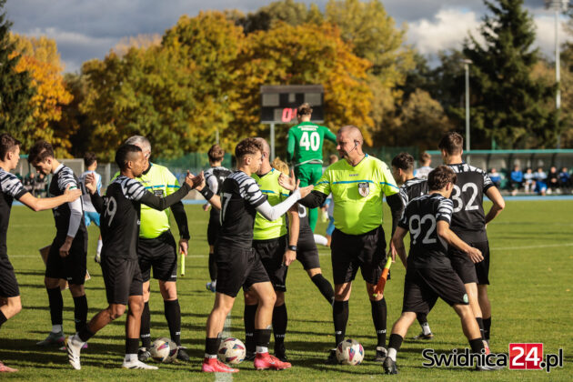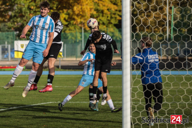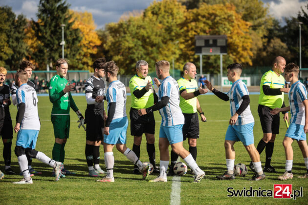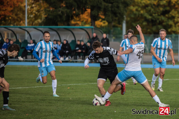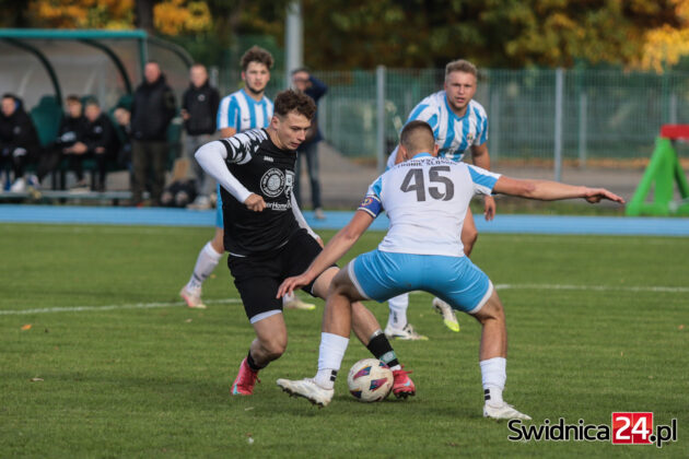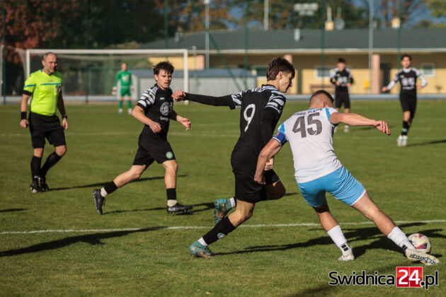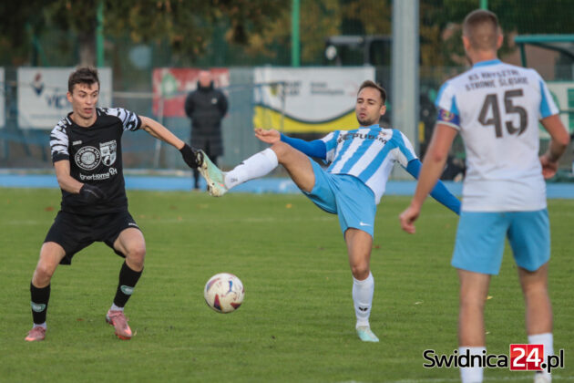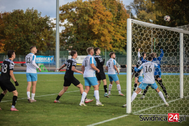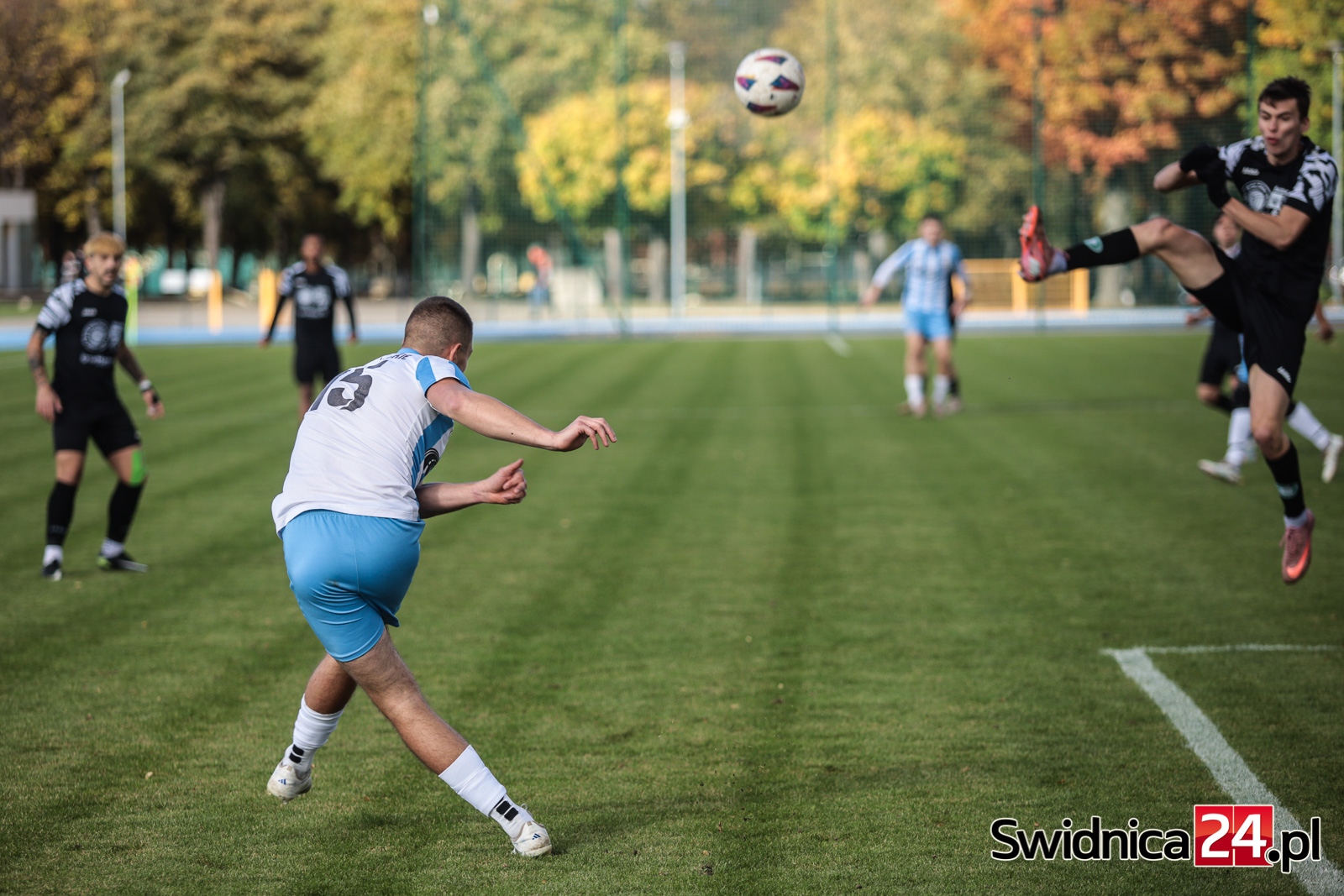 Świdniczanie mający w nogach ciężki, pucharowy bój z czwartoligową Lechią Dzierżoniów (porażka w środę 0:2), strzelanie rozpoczęli bardzo szybko. Chwilę po kwadransie gry było już 2:0 dla gospodarzy. Najpierw zamieszanie w polu karnym wykorzystał Michał Dryja, a następnie świetnym uderzeniem popisał się Mateusz Mojka. Przez całe spotkanie inicjatywę posiadali nasi piłkarze, ale ambitnie grający rywale też od czasu do czasu starali się zaskoczyć biało-zieloną defensywę. Finalnie padł jeszcze jeden gol. W drugiej części pojedynku wynik na 3:0 mocnym strzałem ustalił Kolumbijczyk Juan Felipe.