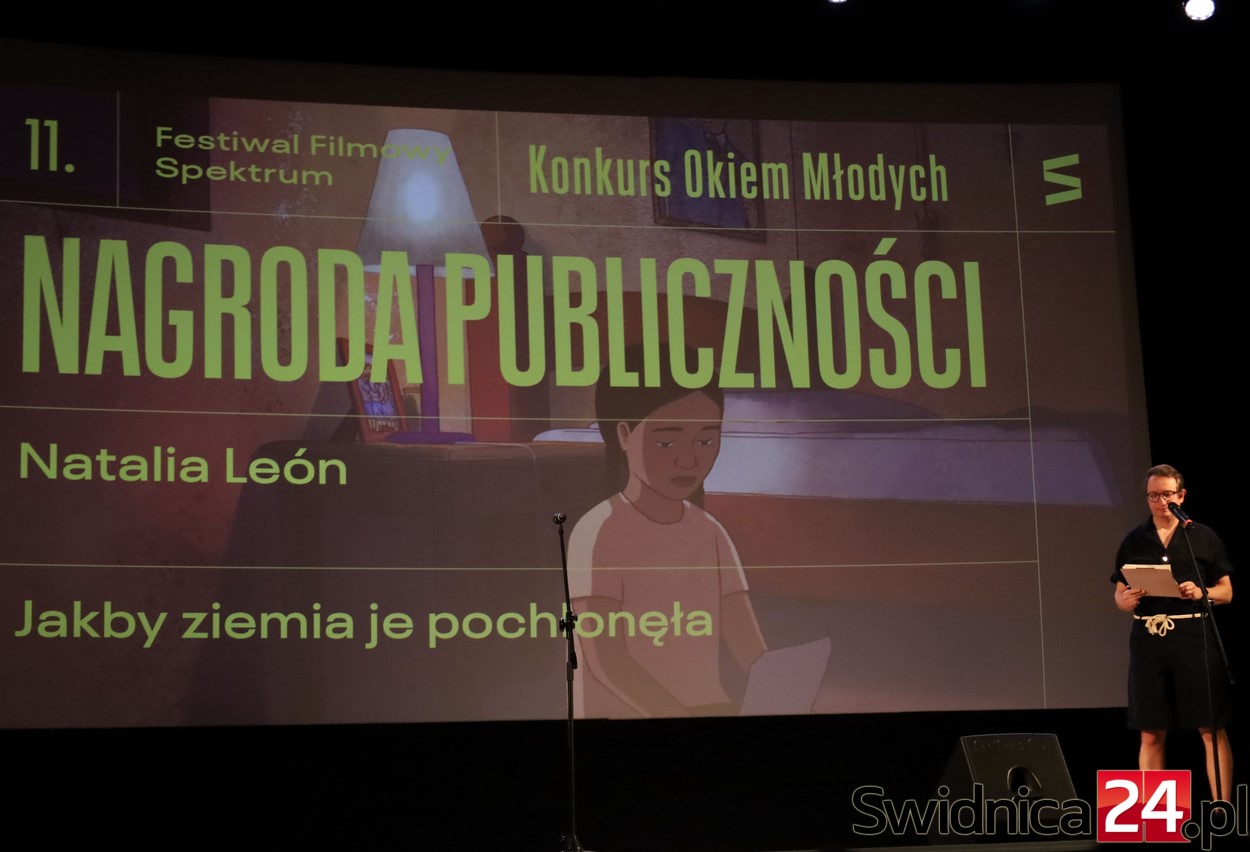 To był przedostatni dzień 11. Festiwalu Filmowego SPEKTRUM i ostatni w Świdnicy. W niedzielę, 26 października, świdnicka publiczność wyruszy do Trutnova, by w kinie Vesmír obejrzeć ostatnie festiwalowe tytuły. Uroczysta gala w auli widowiskowej I LO w Świdnicy była więc okazją do podsumowania tegorocznej edycji festiwalu oraz licznych podziękowań skierowanych do organizatorów, współorganizatorów, partnerów i wolontariuszy, dzięki którym możliwa była realizacja wydarzenia.