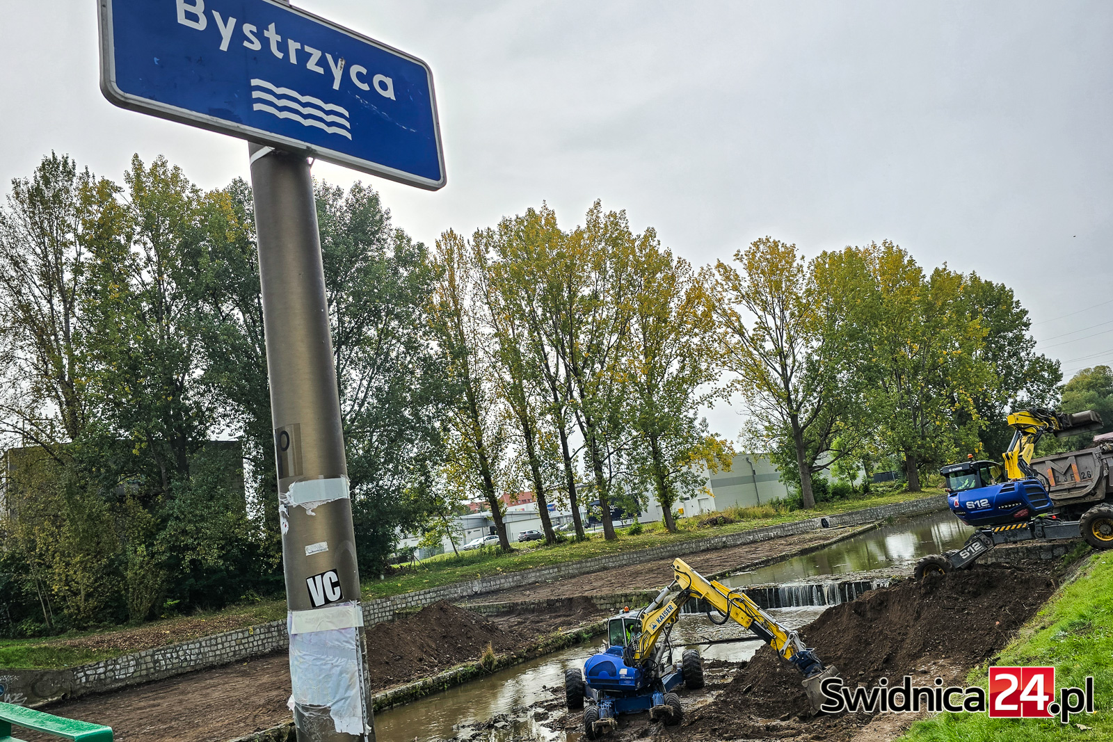 Ostatnio przystąpiono z kolei do wykonania robót związanych z udrożnieniem koryta Bystrzycy na trzech odcinkach: w rejonie ul. Kraszowickiej i Łąkowej, od mostu przy ul. Westerplatte do mostu przy ul. Wodnej, a także od mostu przy ul. Wrocławskiej do ul. Wadowickiej. – Prace te będą polegały na usunięciu drzew i krzewów zalegających w korycie rzeki oraz likwidacji łach, czyli kamienno-żwirowych mielizn, wraz z rosnącą na nich roślinnością. Zakończenie wszystkich robót planowane jest do końca października – informowała wcześniej Magdalena Dzwonkowska, rzecznik świdnickiego magistratu. Realizację robót za ponad 198 tys. złotych powierzono Przedsiębiorstwu Budowlano-Melioracyjnemu BUD-MEL z Dzierżoniowa.