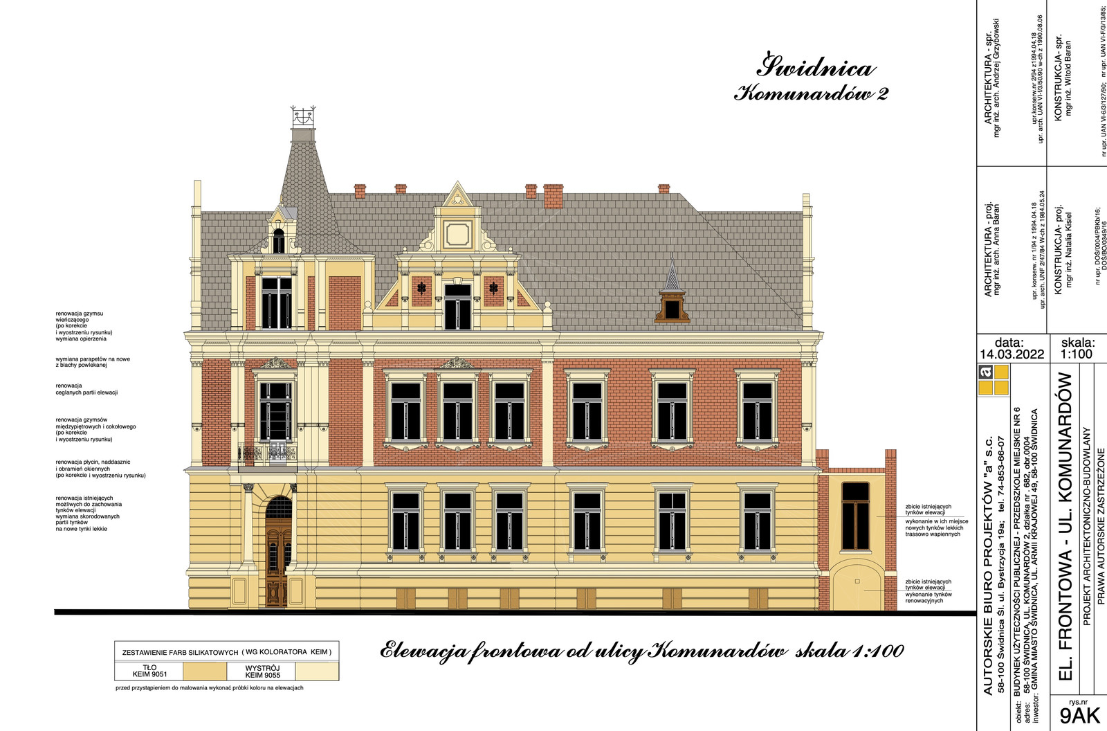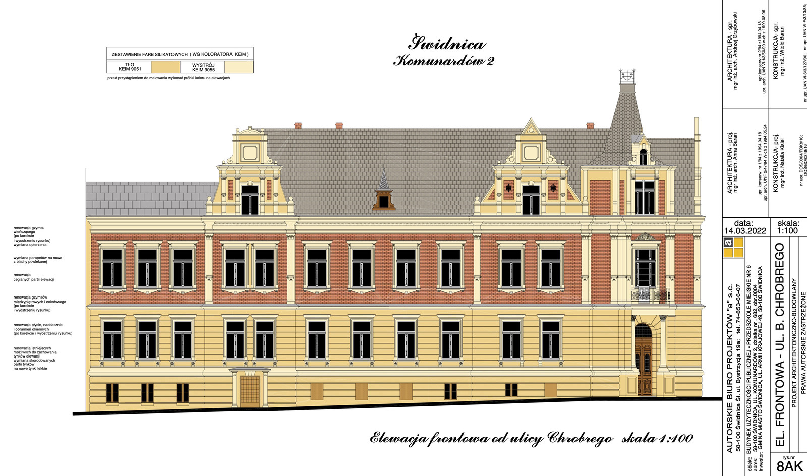 Starania związane z odnowieniem zabytkowego obiektu czynione były od wielu lat. Jedno z zapytań w sprawie remontowych planów miasta wobec budynku przedszkola wystosowali w grudniu 2018 roku radni Wspólnoty Samorządowej. – Jest to prawie ścisłe centrum Świdnicy i wygląd budynku jest zdecydowanie szpetny, a jest to nieruchomość Gminy Miasto Świdnica – stwierdzili samorządowcy, apelujący nie tylko o odnowienie wybudowanego w 1900 roku gmachu, ale także o rozważenie wykonania termomodernizacji. W odpowiedzi prezydent Świdnicy przekazała, że działania w tym zakresie czynione są od 2016 roku. Informowała również o trwających pracach nad dokumentacją projektową oraz nad wnioskiem o dofinansowanie ze środków Ministra Kultury i Dziedzictwa Narodowego z zamiarem remontu elewacji i dachu.