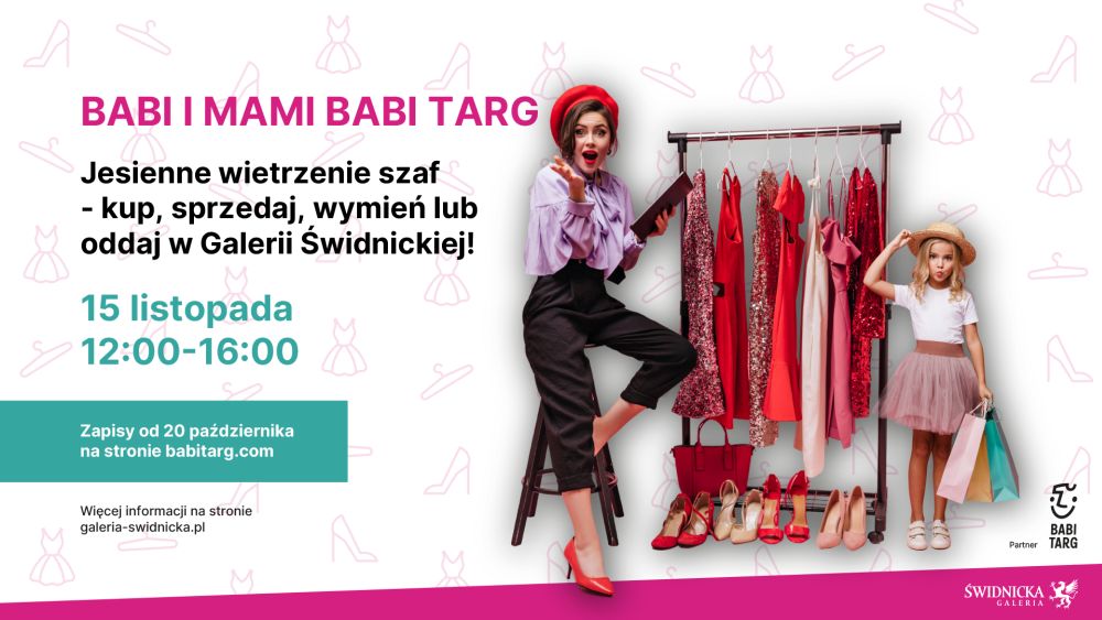 Babi Targ® to wydarzenie, które od 18 lat inspiruje do odpowiedzialnej konsumpcji i zachęca do nadawania ubraniom drugiego życia. W Świdnicy pojawi się również Mami Babi Targ® – specjalna strefa dla rodziców z odzieżą dziecięcą, zabawkami i akcesoriami.