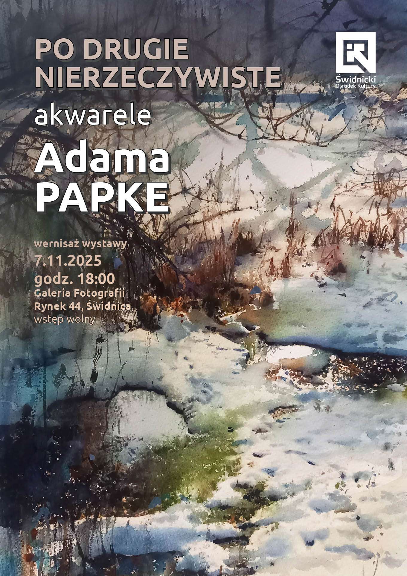 Świdnicki Ośrodek Kultury zaprasza na wernisaż wystawy „Po drugie nierzeczywiste” Adama Papke, który odbędzie się w piątek, 7 listopada o godzinie 18.00 w Galerii Fotografii (Rynek 44). Wstęp wolny.