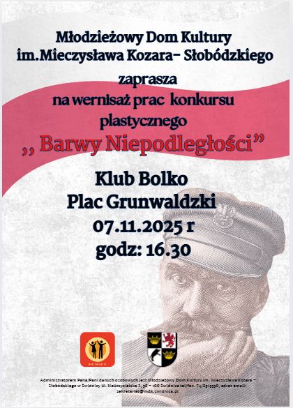 200 prac z 13 placówek oświatowych wpłynęło na zorganizowany przez Młodzieżowy Dom Kultury w Świdnicy XIX Konkurs Plastyczny „Barwy Niepodległości”. Wernisaż prac konkursowych odbędzie się w piątek, 7 listopada 2025 roku o godz. 16.30 w Klubie Bolko (Grunwaldzki 11).