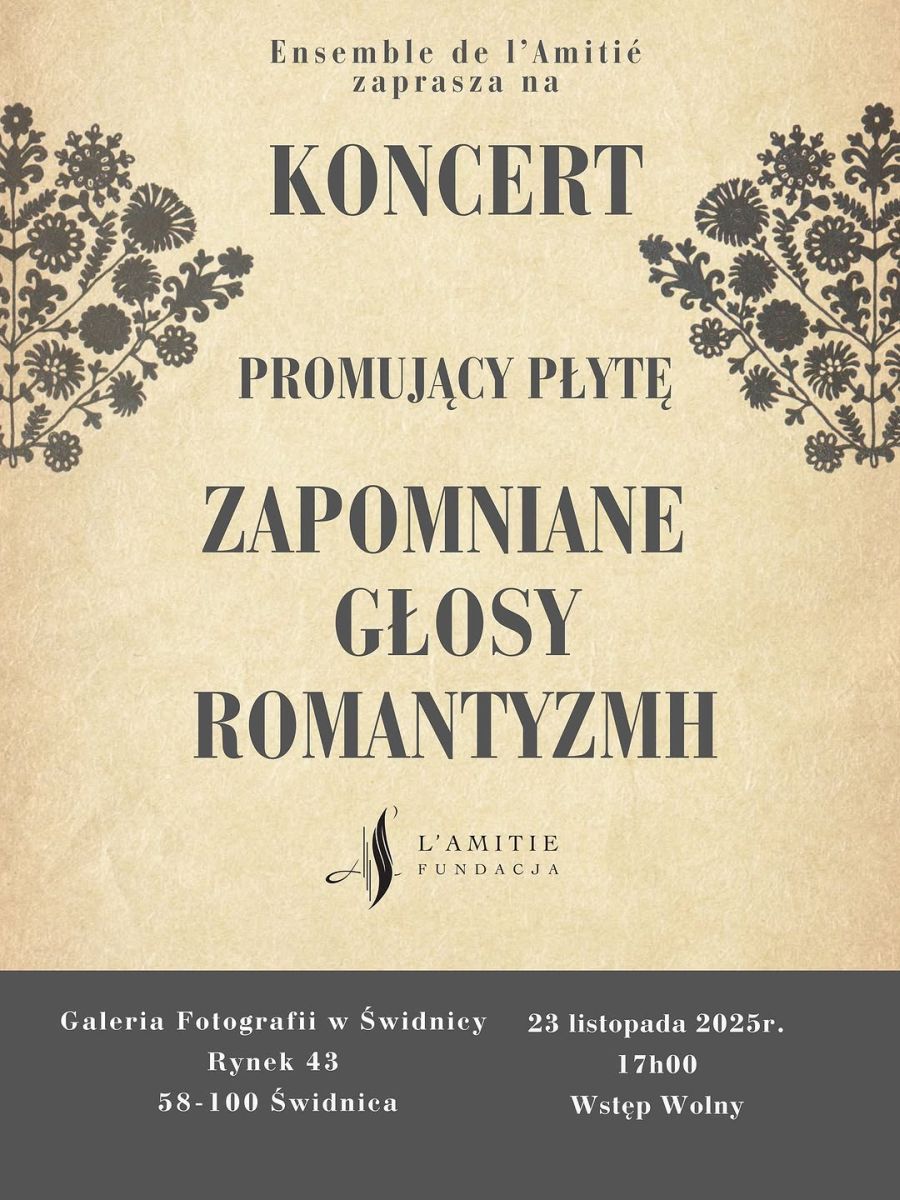 Koncert Ensemble de l’Amitié promujący płytę „Zapomniane Głosy Romantyzmu” w Świdnicy (niedziela)