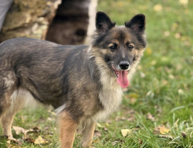 Świetnie dogaduje się z innymi psami, a obecność kotów również nie stanowi dla niej problemu. Na spacerach chodzi bardzo ładnie, chociaż zdarza się, że coś ją zaskoczy – szybciej przejeżdżający rower czy nagły dźwięk potrafią ją na moment zaniepokoić. Wtedy wystarczy spokojne słowo i odrobina wsparcia, by znów nabrała pewności siebie.