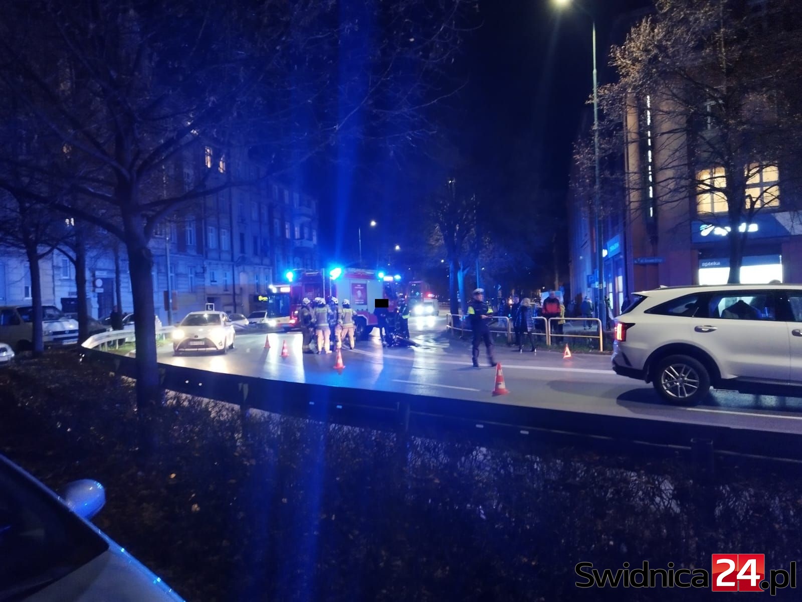 Kierujący jednośladem zostanie ukarany mandatem za spowodowanie kolizji – poinformowała funkcjonariuszka. Do zakończenia działań ruch w miejscu zdarzenia odbywa się jednym pasem jezdni.