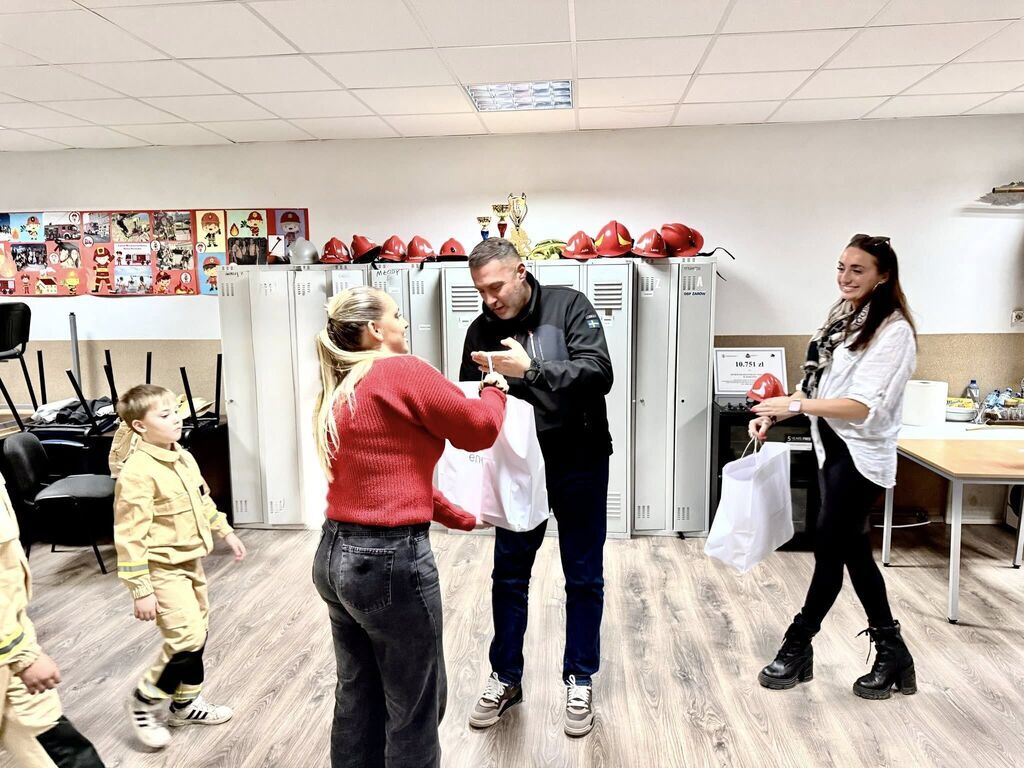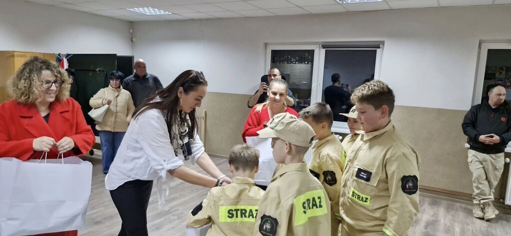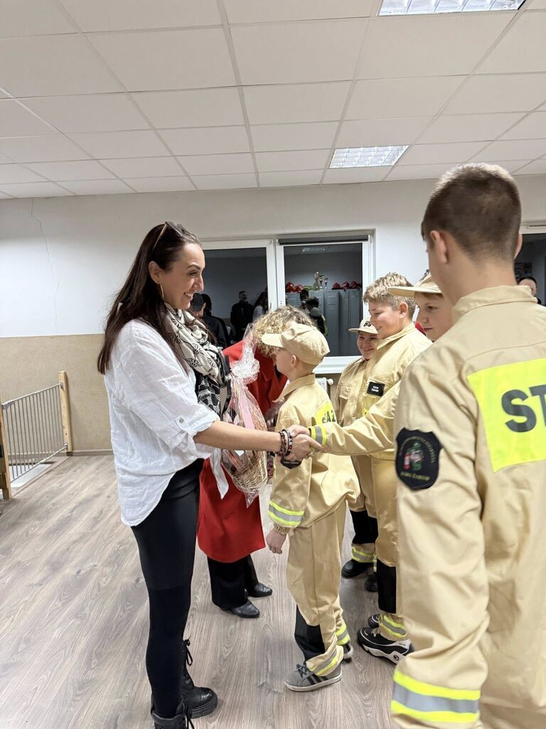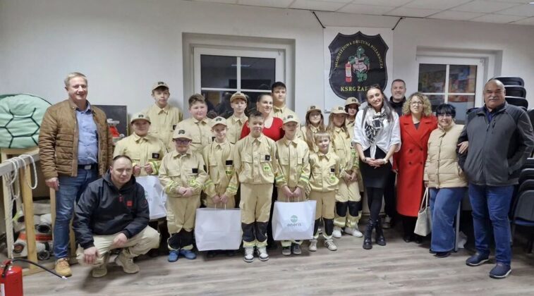 Nowy sprzęt, hełmy, węże i inne gadżety przekazała firma Eneris Ekologiczne Centrum Utylizacji. W uroczystości przekazania nowego sprzętu uczestniczyli także burmistrz Przemysław Sikora oraz radna Rady Miejskiej Agnieszka Proniewicz, która zaangażowała się w pomoc przy organizacji tego spotkania.