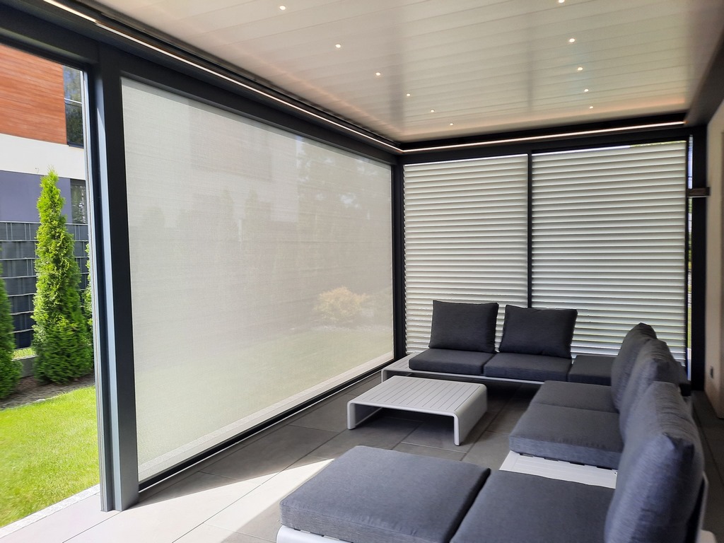 • Boczne rolety typu screen chroniące przed wiatrem i owadami.