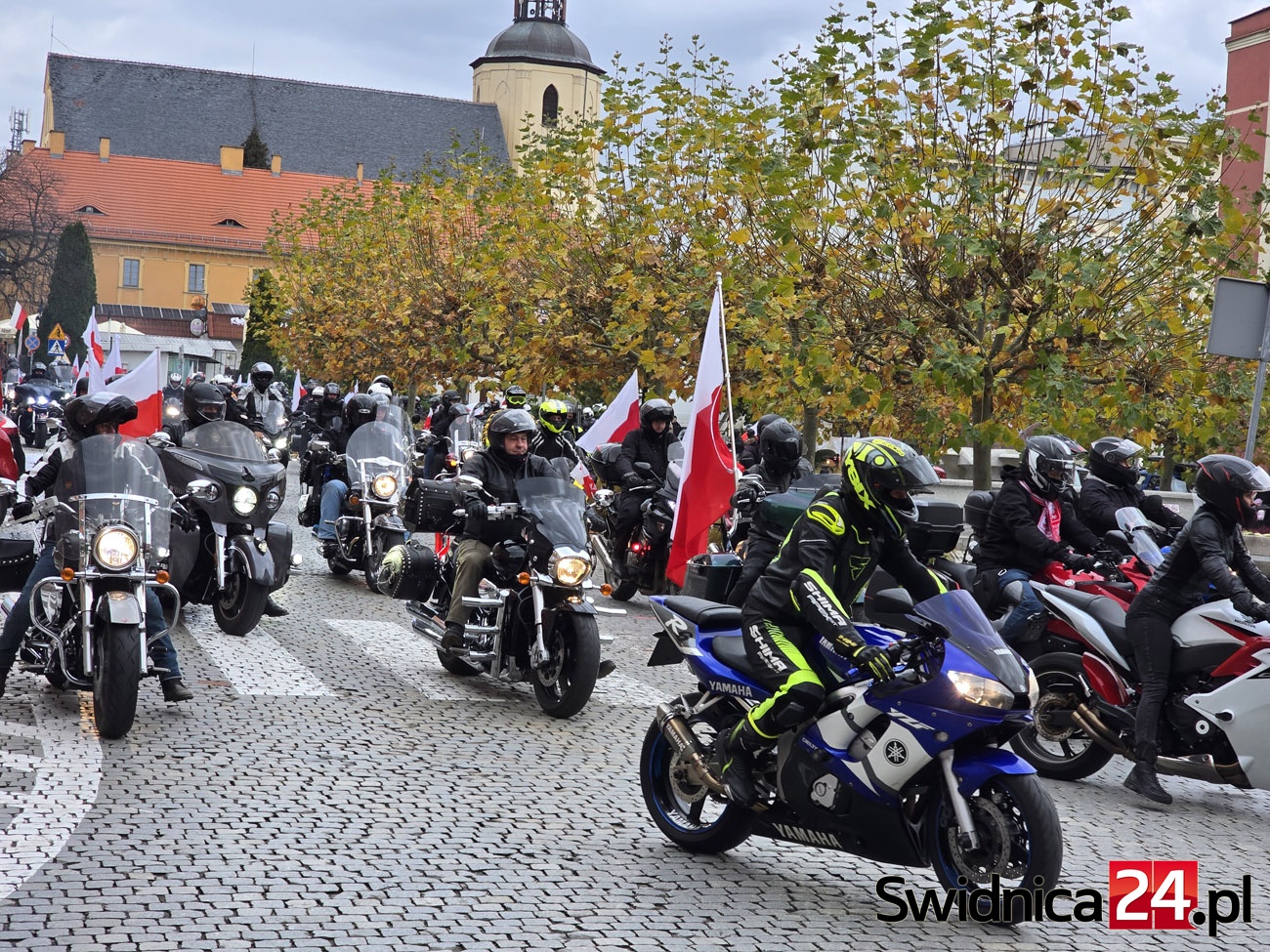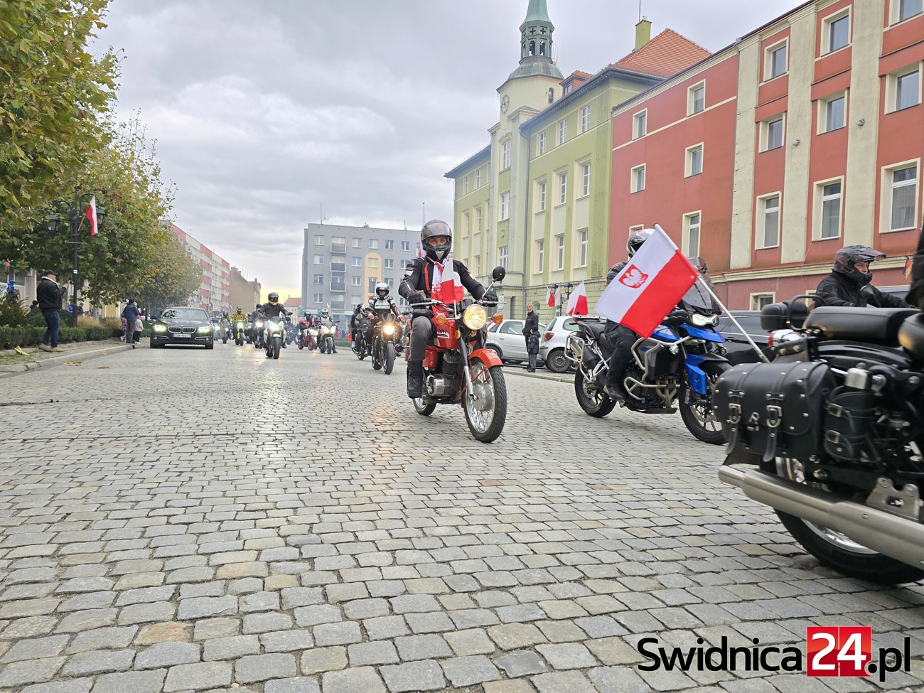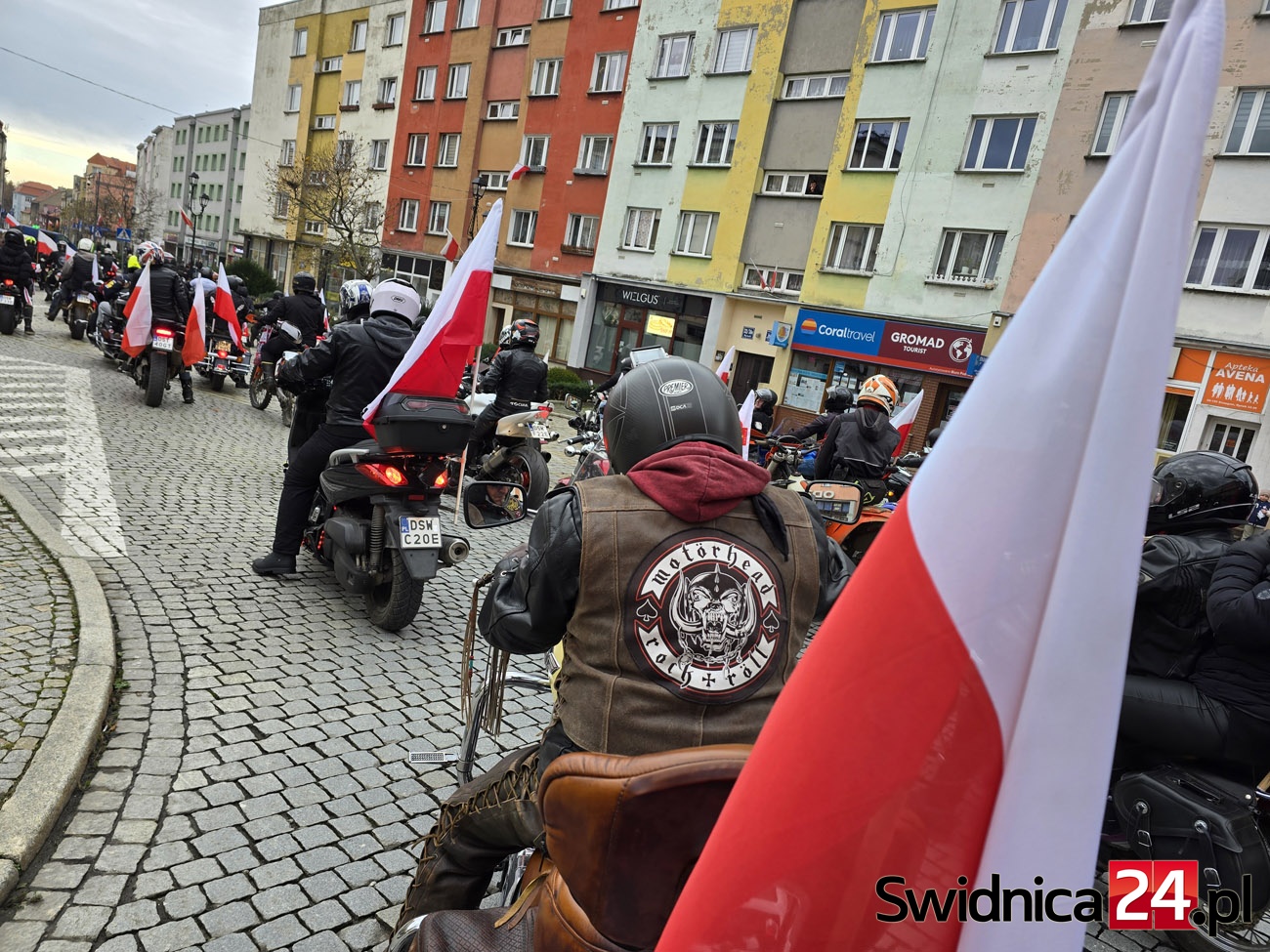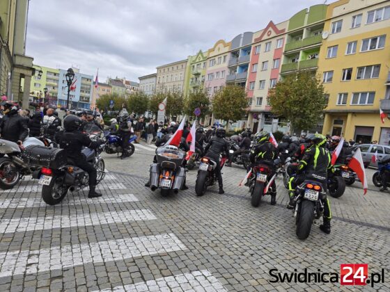 Ulicami Strzegomia 11 listopada przejechała barwna i głośna parada motocyklistów oraz miłośników motoryzacji. Właściciele jednośladów i samochodów uczcili w ten sposób Narodowe Święto Niepodległości, niosąc ze sobą biało-czerwone barwy i patriotycznego ducha. Na strzegomskim Rynku uczestnicy wspólnie z mieszkańcami odśpiewali hymn Polski.