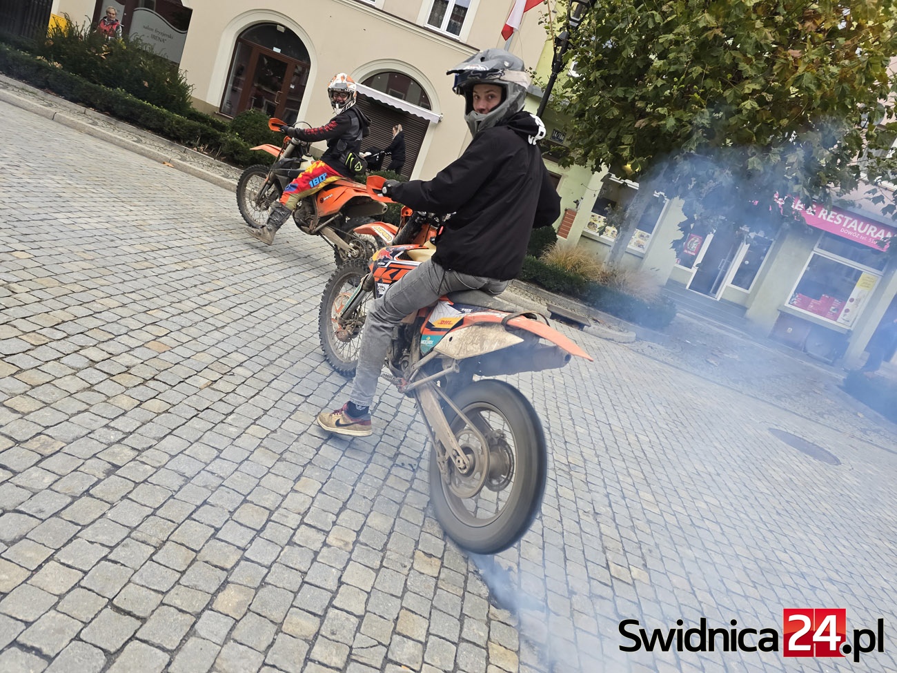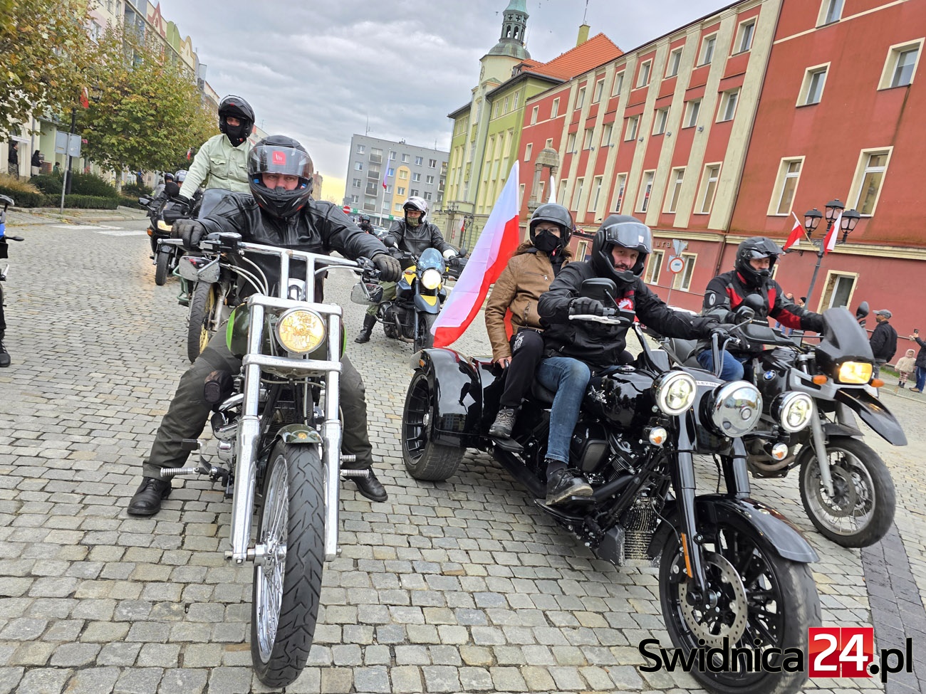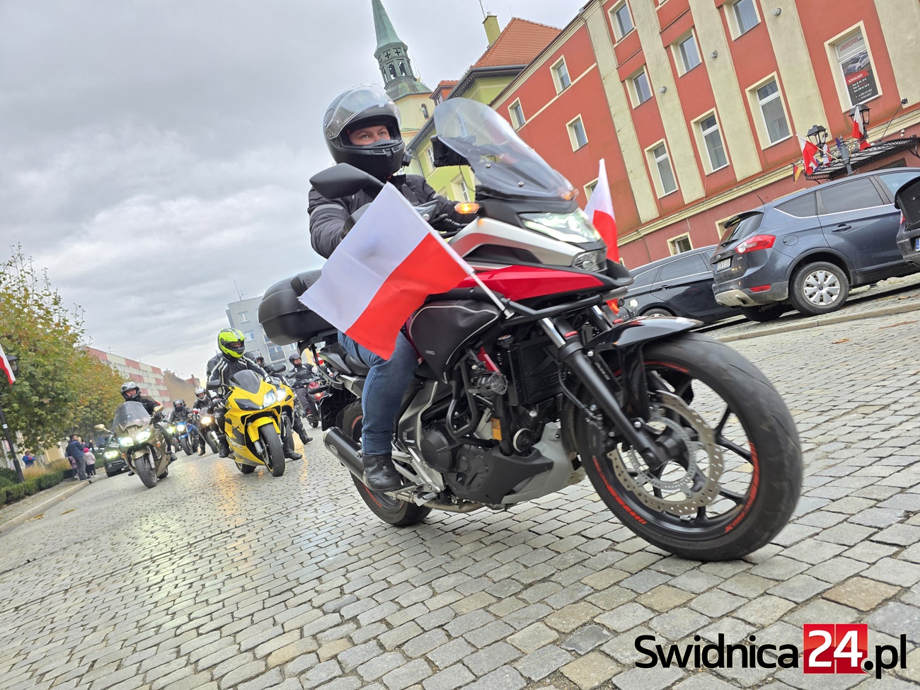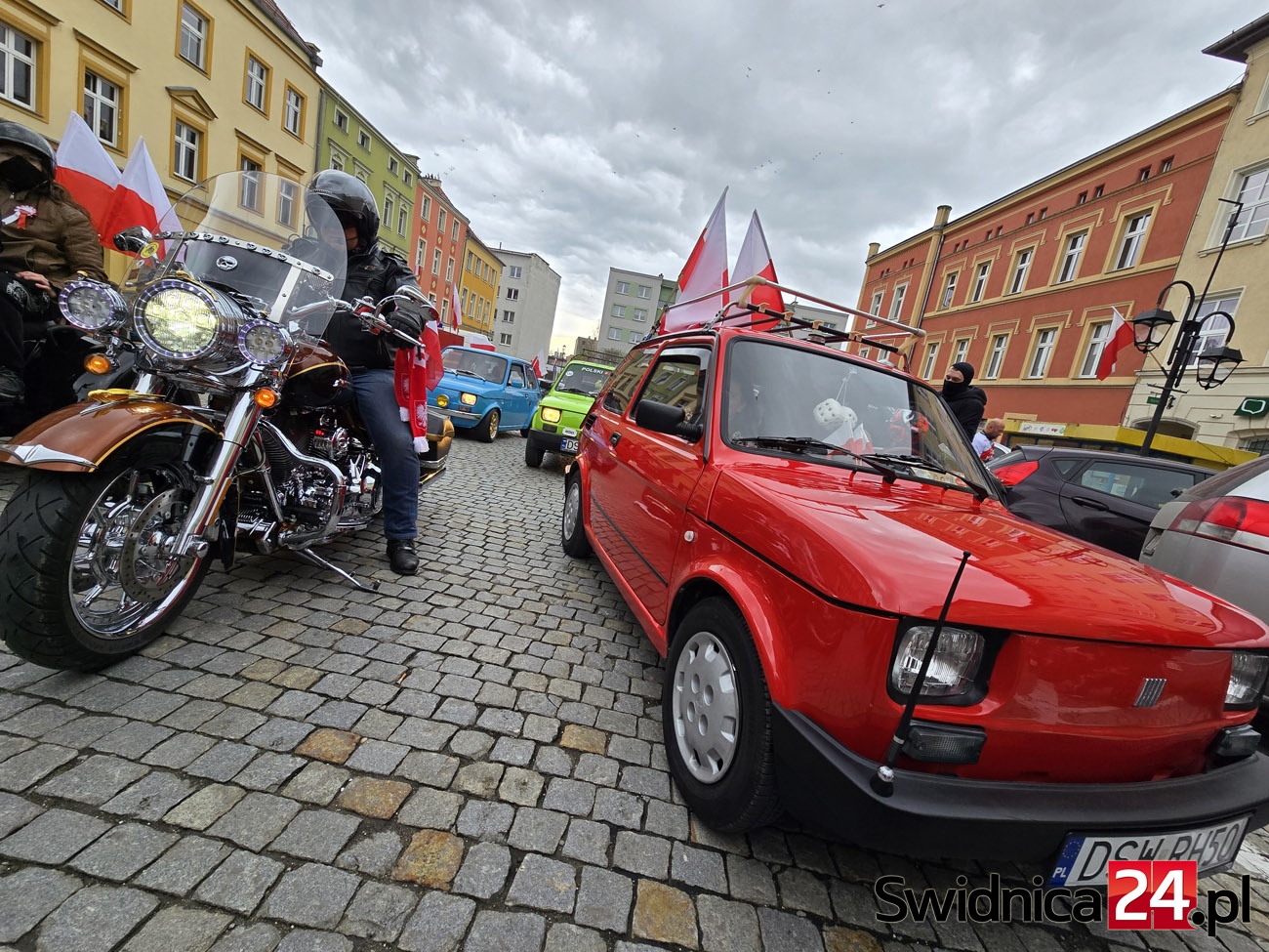 Ulicami Strzegomia 11 listopada przejechała barwna i głośna parada motocyklistów oraz miłośników motoryzacji. Właściciele jednośladów i samochodów uczcili w ten sposób Narodowe Święto Niepodległości, niosąc ze sobą biało-czerwone barwy i patriotycznego ducha. Na strzegomskim Rynku uczestnicy wspólnie z mieszkańcami odśpiewali hymn Polski.
