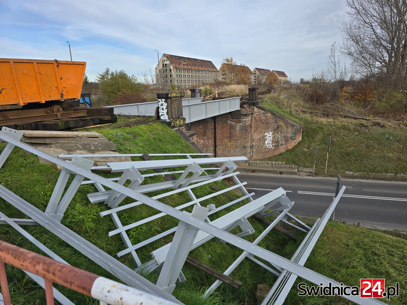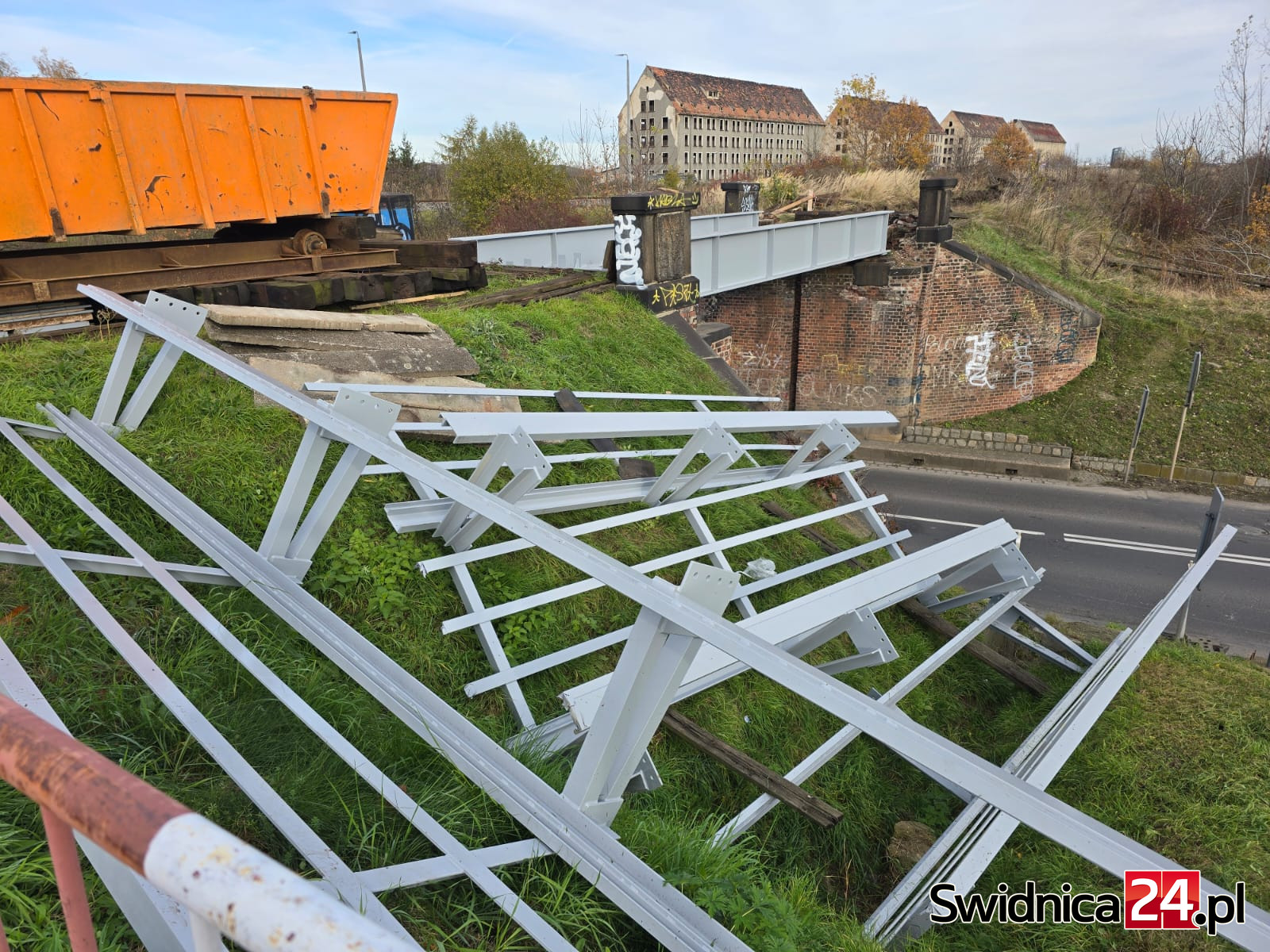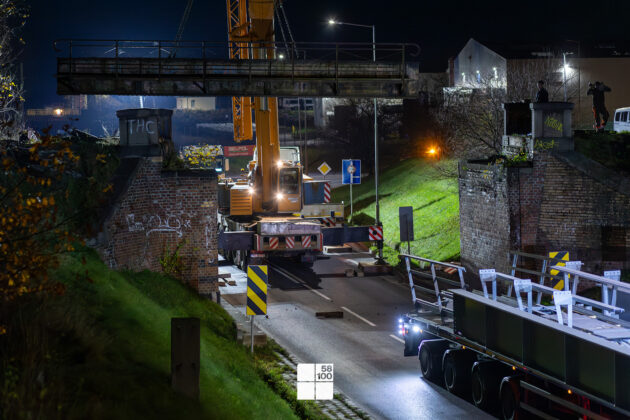 – Stalowy wiadukt, pochodzący z początku XX wieku i ważący około 20 ton, został zdemontowany przez pracowników firmy Uptor z Lwówka Śląskiego. Prace prowadzone były z wyjątkową precyzją, a zakończyły się w środę, 5 listopada około godziny 5:00. Jak podkreślali przedstawiciele wykonawcy, nocny charakter operacji pozwolił zminimalizować utrudnienia w ruchu drogowym – opisuje Tomasz Pietrzyk ze Społecznego Archiwum Cyfrowego 58100. Przywołuje przy tym, że przebudowa wiaduktu była konieczna ze względu na wieloletnią eksploatację starej konstrukcji i związane z tym zagrożenia.