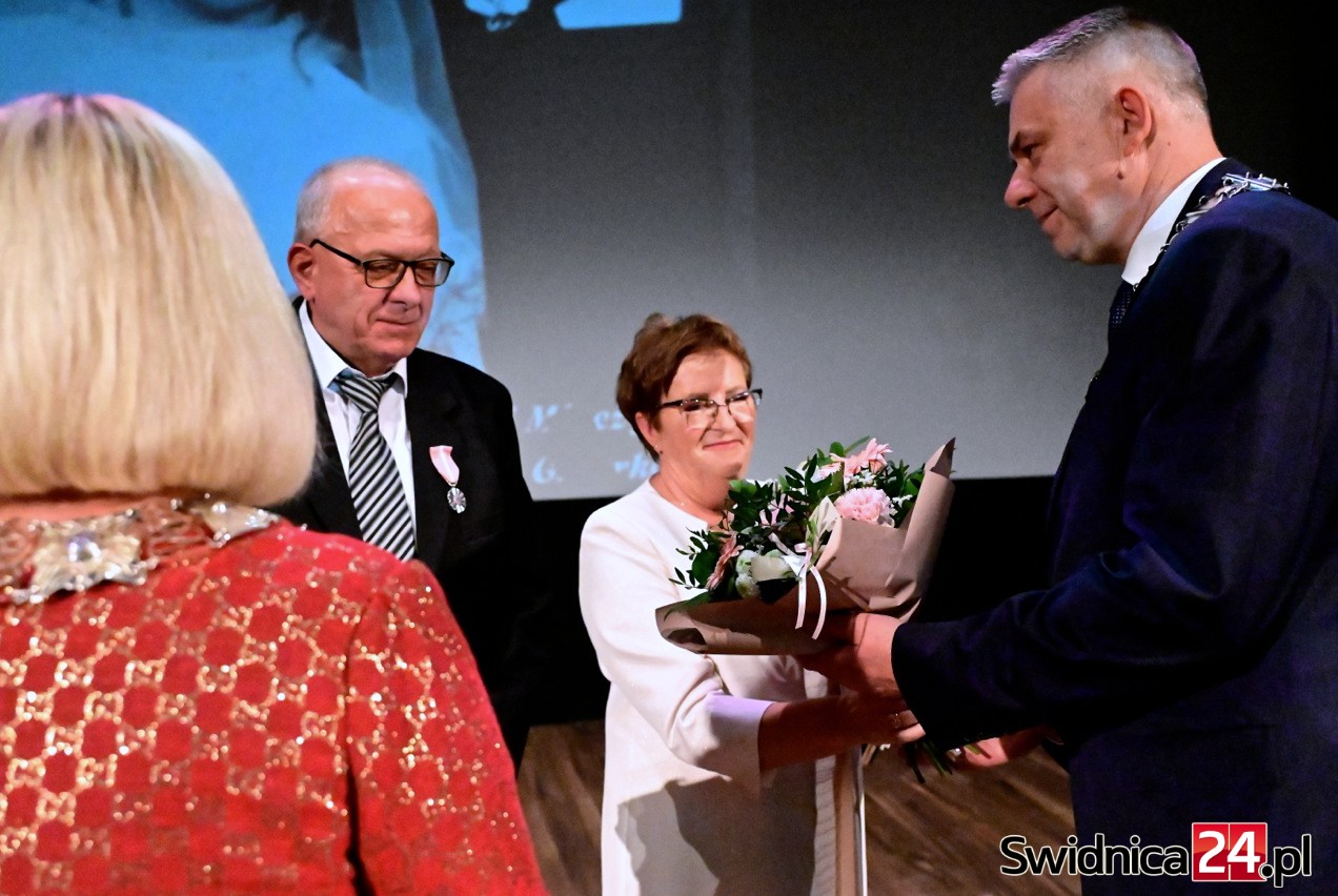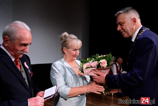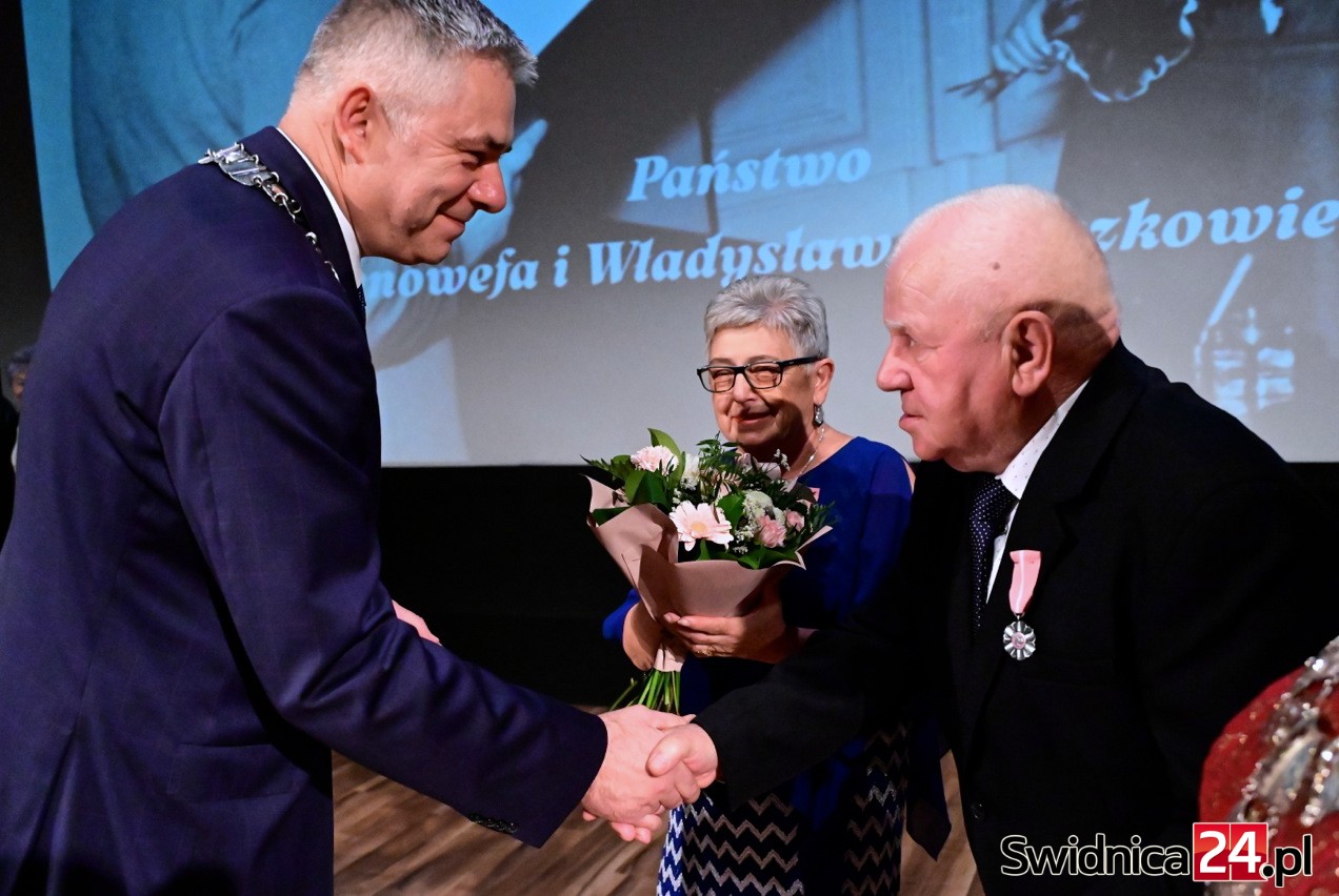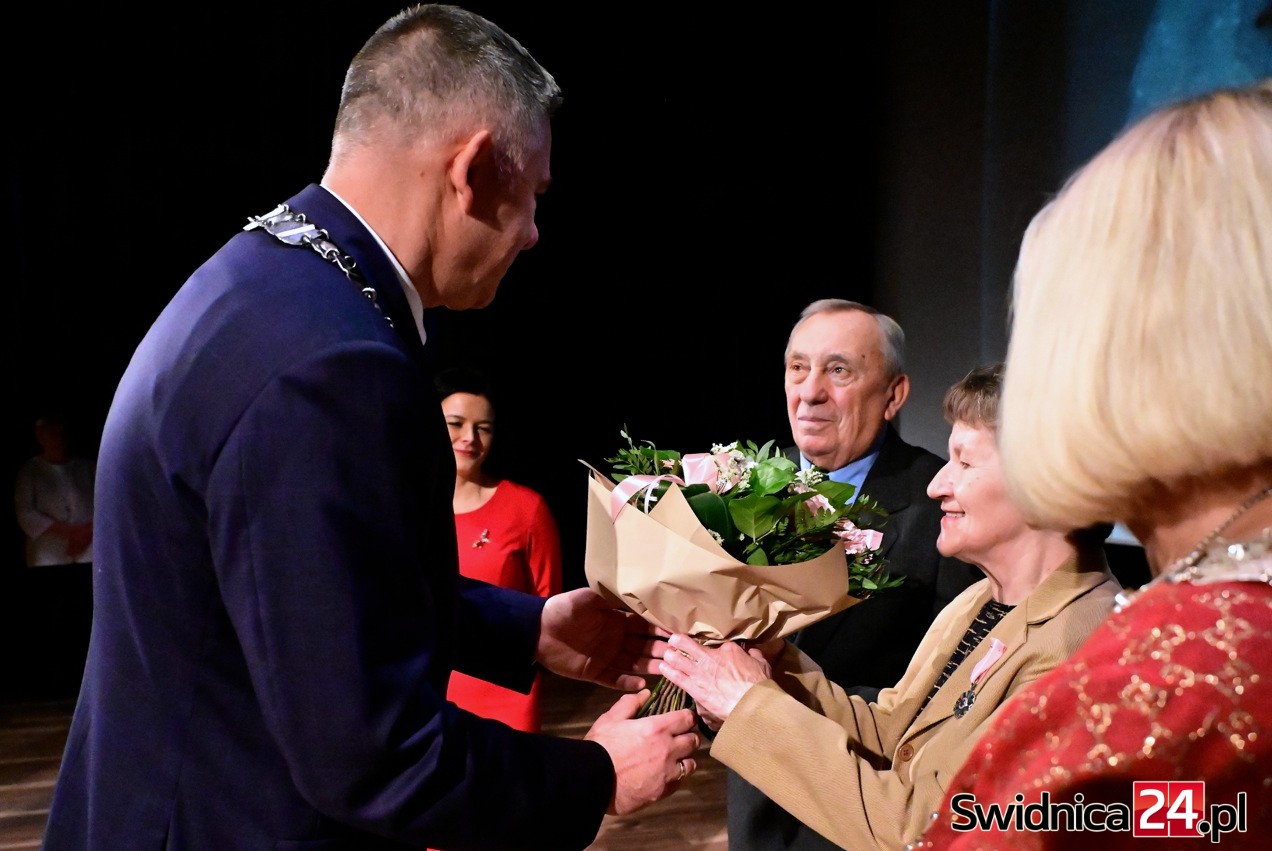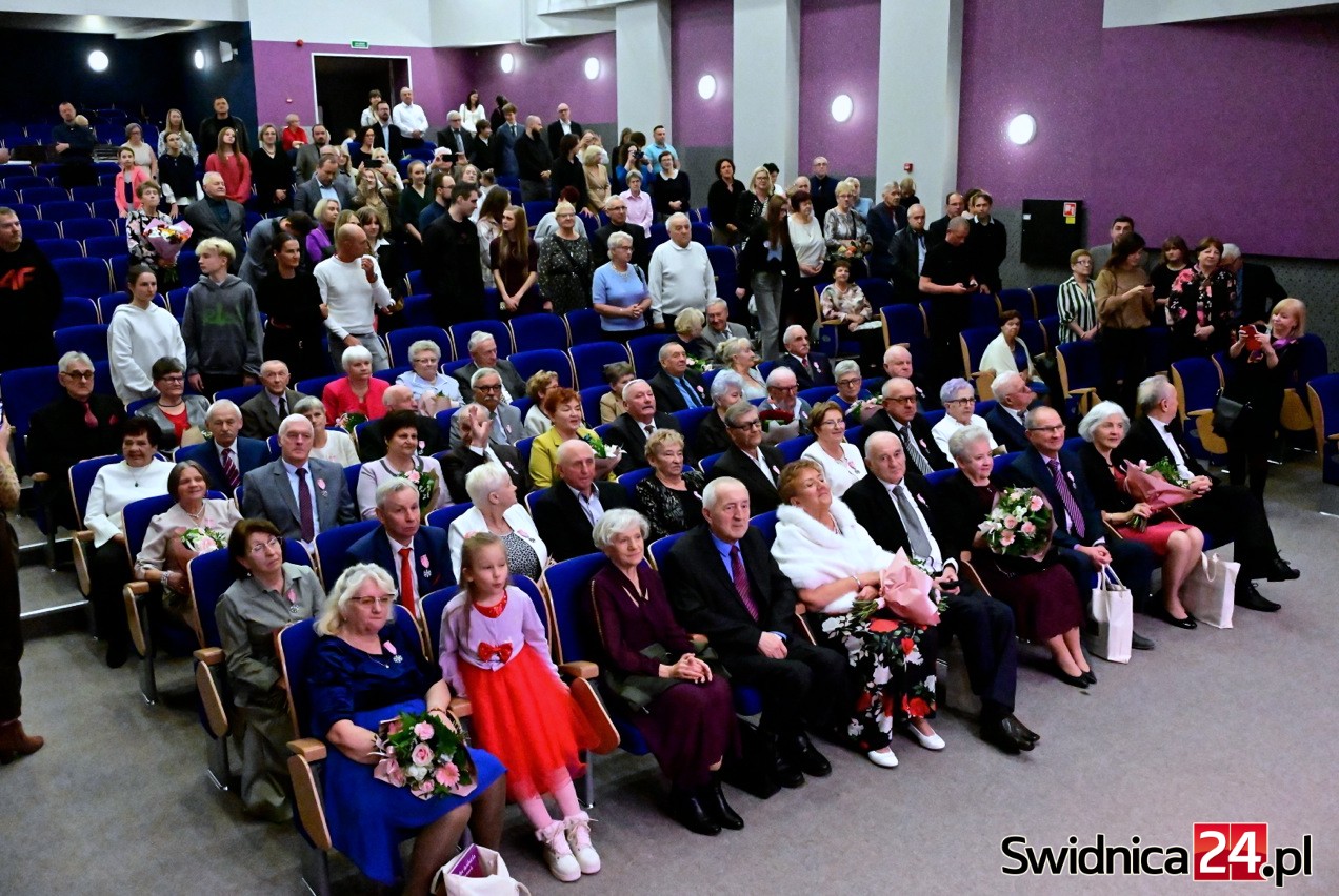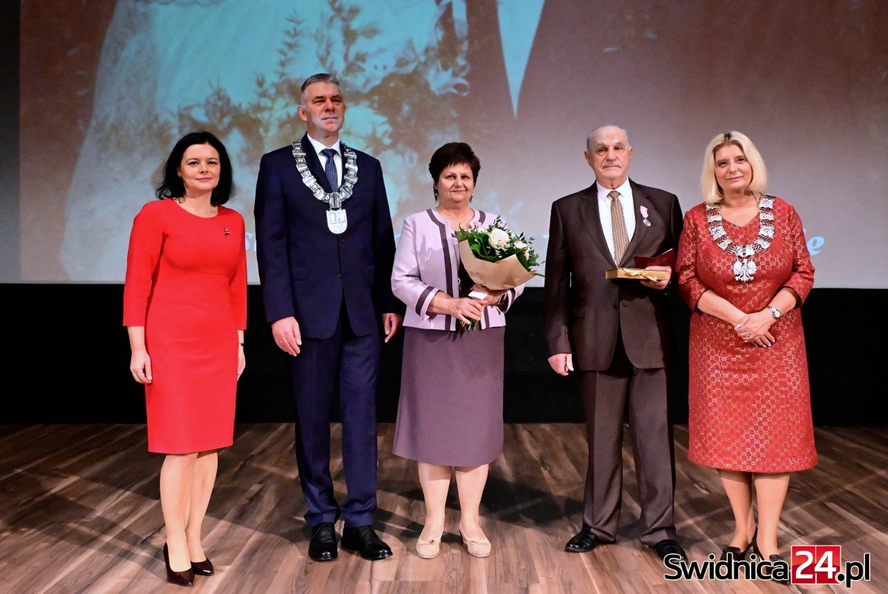 Podczas uroczystości zorganizowanej w auli I Liceum Ogólnokształcącego prezydent Świdnicy oraz wójt gminy Świdnica wręczyli medale za długoletnie pożycie małżeńskie przyznane przez prezydenta Rzeczypospolitej Polskiej. – Jubilatom gratuluję tych wspólnie spędzonych lat. Zrobiliście niebywałą rzecz: zbudowaliście wspaniałe rodziny, przeżyliście razem już wiele lat. Życzymy wam, żeby tych lat było jeszcze mnóstwo – lat w szczęściu i miłości, we wzajemnych zrozumieniu, tolerancji, w dobrych relacjach z waszymi bliskimi – mówiła prezydent Beata Moskal-Słaniewska. – Z szacunkiem i dużym podziwem spoglądamy na drogę, którą wspólnie przebyliście. Jesteście doskonałym przykładem dla kolejnych pokoleń, jak w związku budować i rozwijać miłość – podkreślał wójt Bartłomiej Strózik.