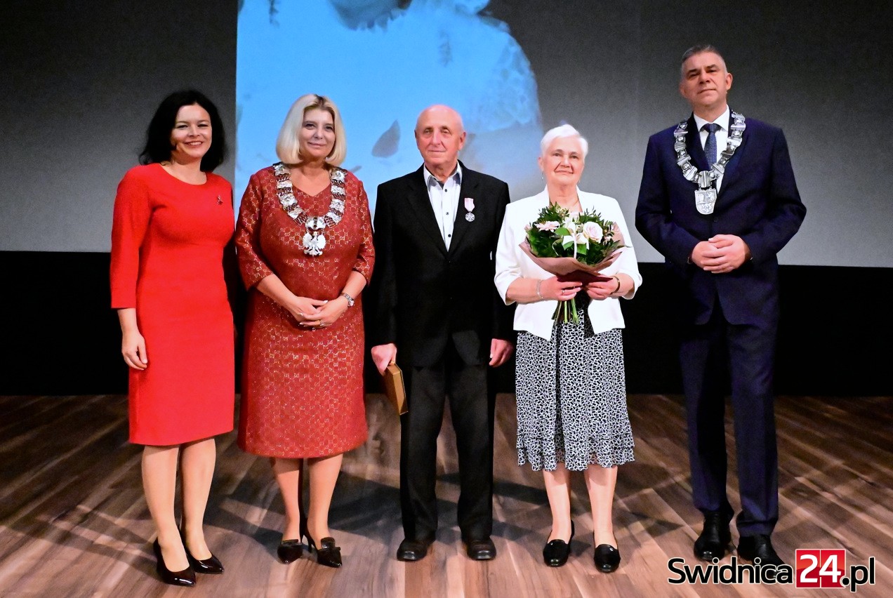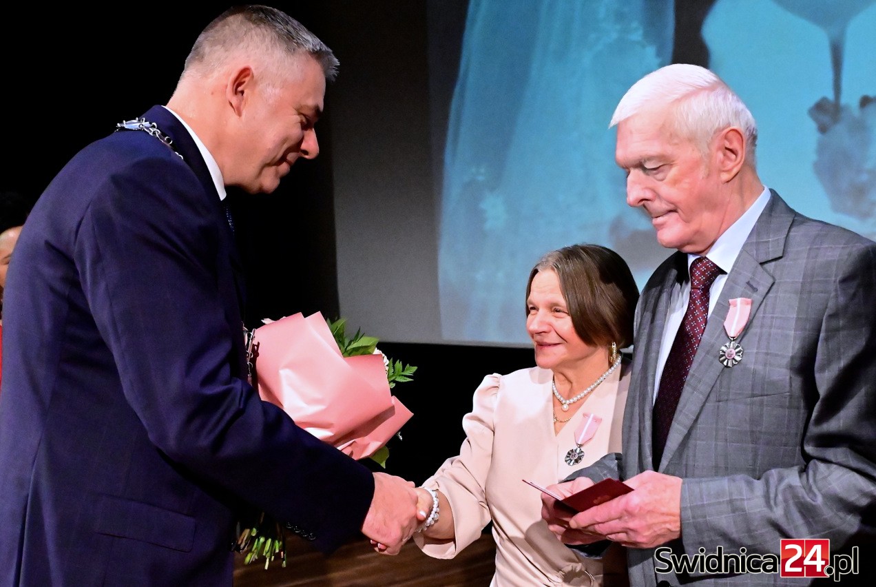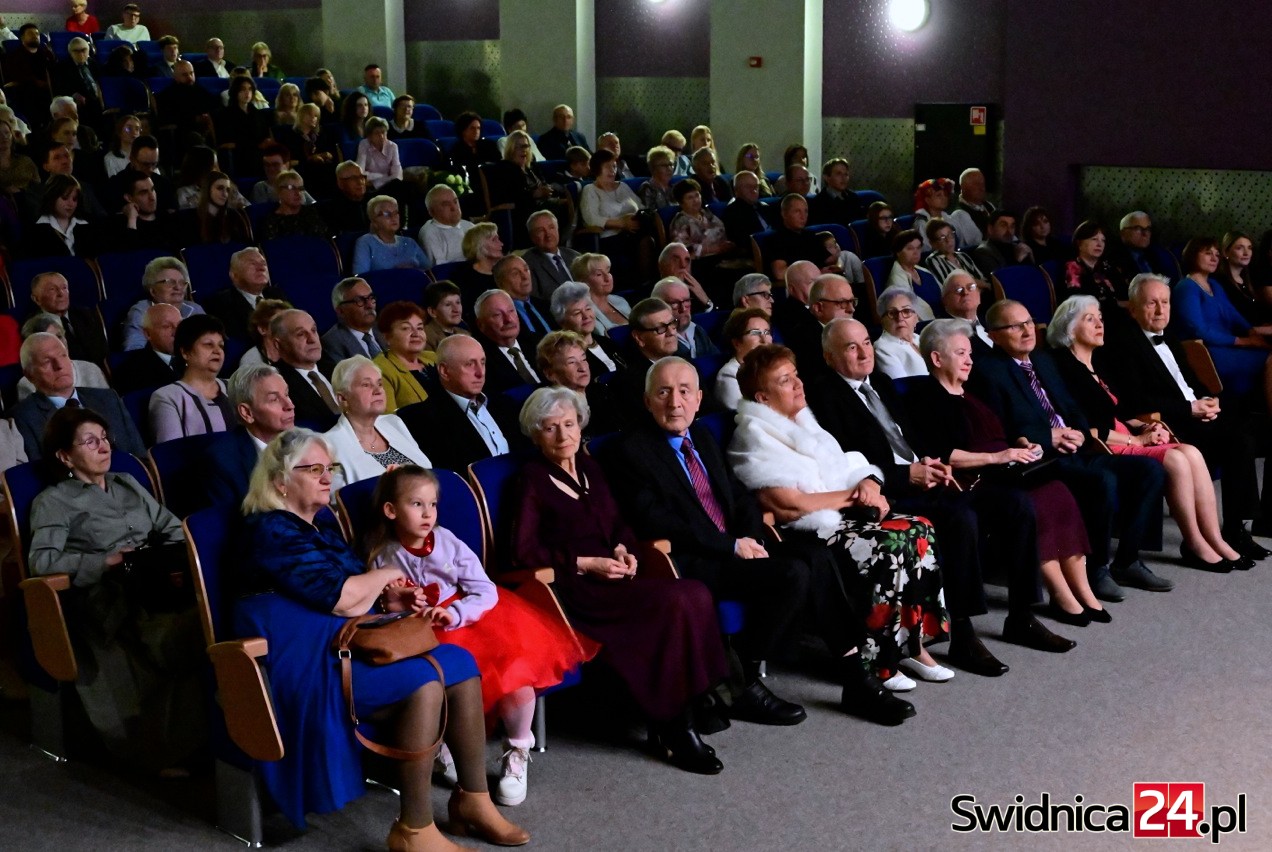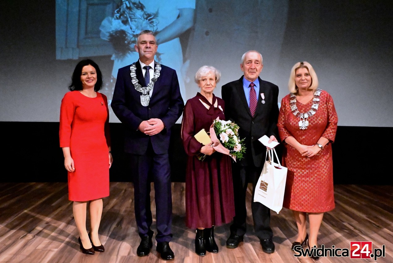 Podczas uroczystości zorganizowanej w auli I Liceum Ogólnokształcącego prezydent Świdnicy oraz wójt gminy Świdnica wręczyli medale za długoletnie pożycie małżeńskie przyznane przez prezydenta Rzeczypospolitej Polskiej. – Jubilatom gratuluję tych wspólnie spędzonych lat. Zrobiliście niebywałą rzecz: zbudowaliście wspaniałe rodziny, przeżyliście razem już wiele lat. Życzymy wam, żeby tych lat było jeszcze mnóstwo – lat w szczęściu i miłości, we wzajemnych zrozumieniu, tolerancji, w dobrych relacjach z waszymi bliskimi – mówiła prezydent Beata Moskal-Słaniewska. – Z szacunkiem i dużym podziwem spoglądamy na drogę, którą wspólnie przebyliście. Jesteście doskonałym przykładem dla kolejnych pokoleń, jak w związku budować i rozwijać miłość – podkreślał wójt Bartłomiej Strózik.