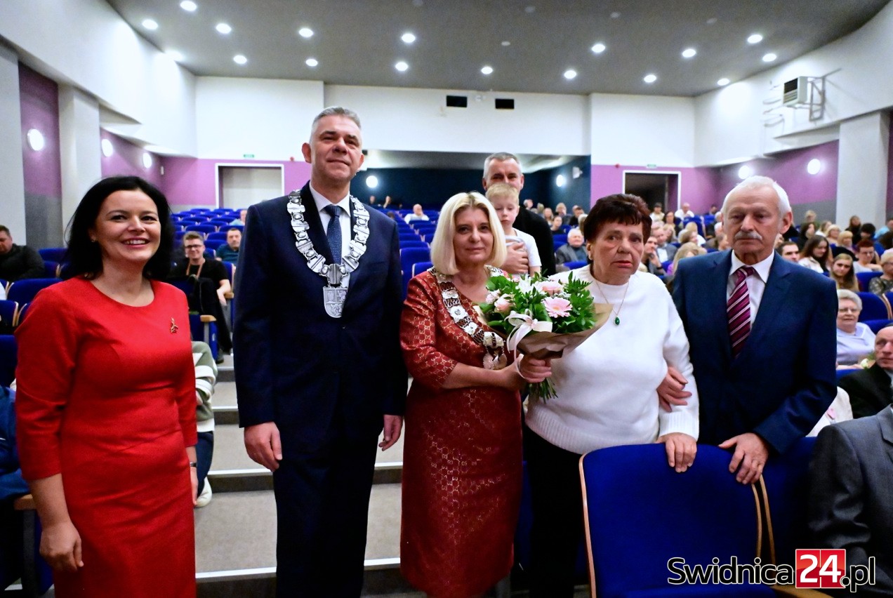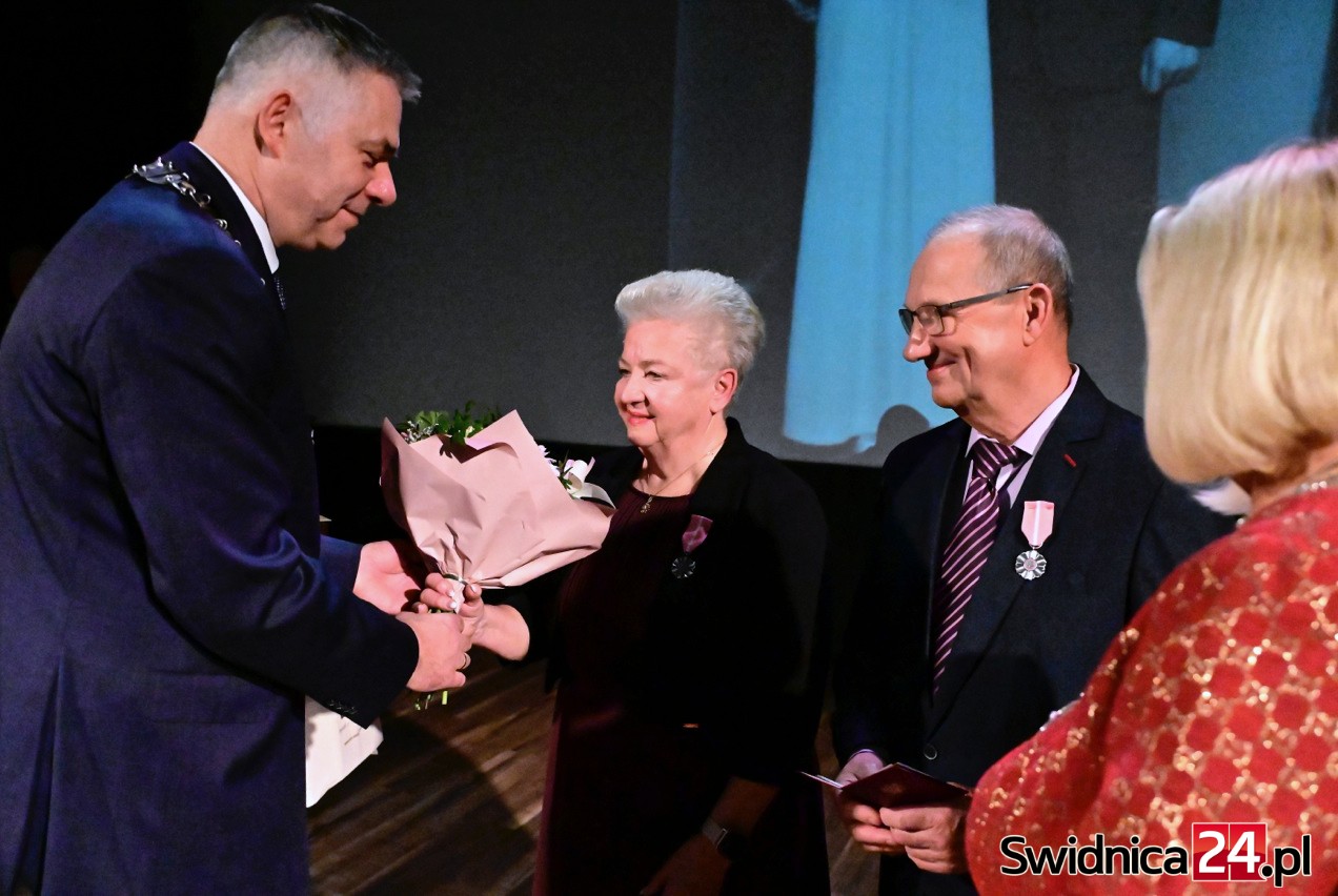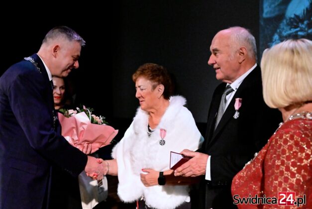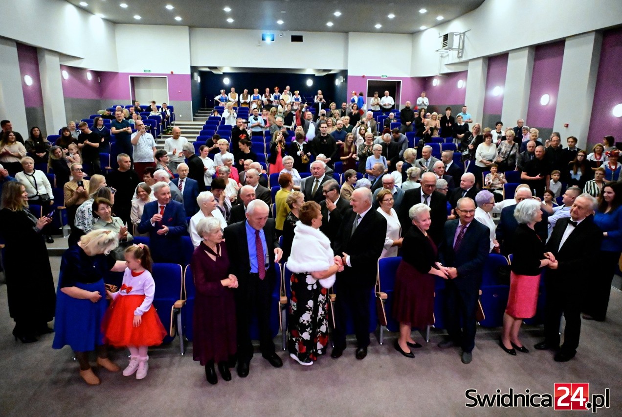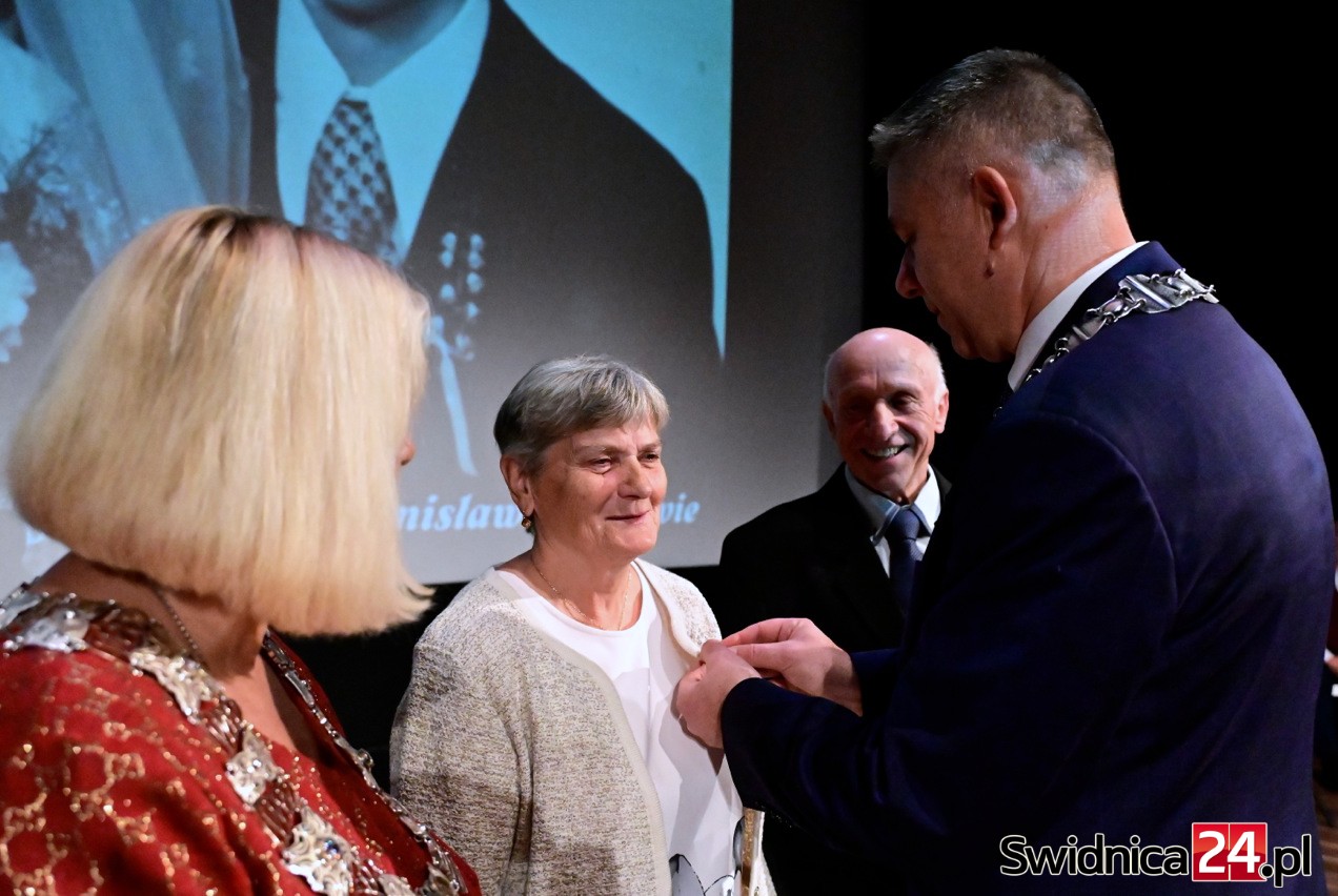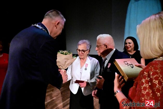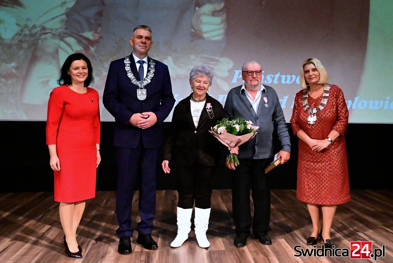 Podczas uroczystości zorganizowanej w auli I Liceum Ogólnokształcącego prezydent Świdnicy oraz wójt gminy Świdnica wręczyli medale za długoletnie pożycie małżeńskie przyznane przez prezydenta Rzeczypospolitej Polskiej. – Jubilatom gratuluję tych wspólnie spędzonych lat. Zrobiliście niebywałą rzecz: zbudowaliście wspaniałe rodziny, przeżyliście razem już wiele lat. Życzymy wam, żeby tych lat było jeszcze mnóstwo – lat w szczęściu i miłości, we wzajemnych zrozumieniu, tolerancji, w dobrych relacjach z waszymi bliskimi – mówiła prezydent Beata Moskal-Słaniewska. – Z szacunkiem i dużym podziwem spoglądamy na drogę, którą wspólnie przebyliście. Jesteście doskonałym przykładem dla kolejnych pokoleń, jak w związku budować i rozwijać miłość – podkreślał wójt Bartłomiej Strózik.