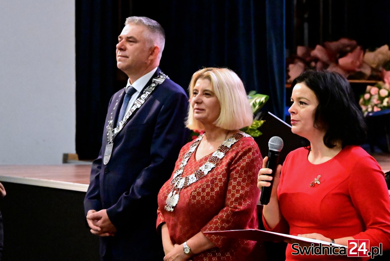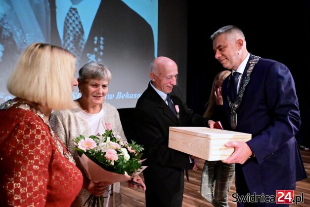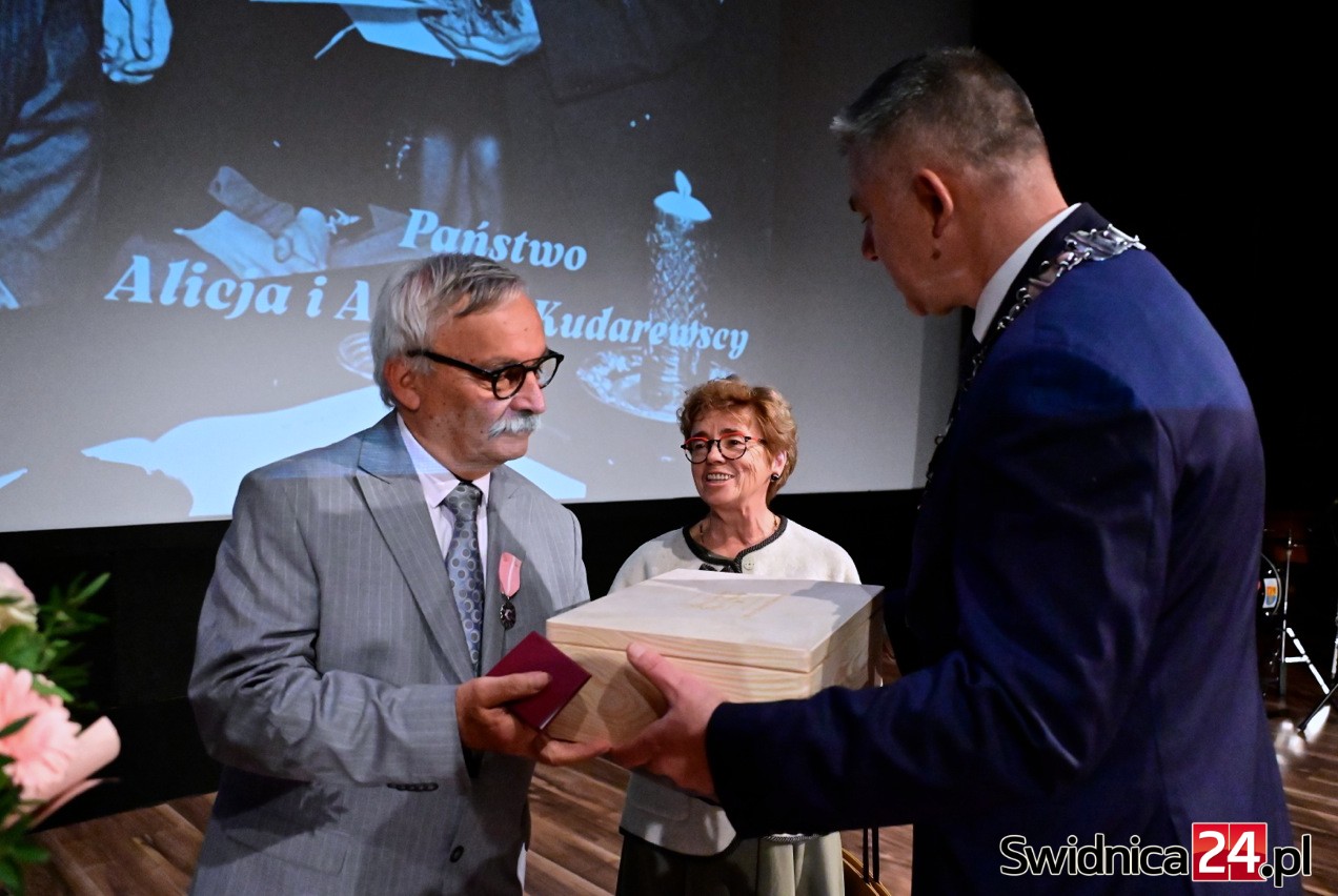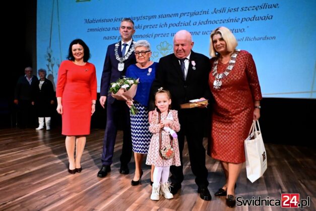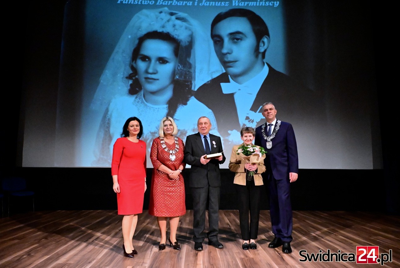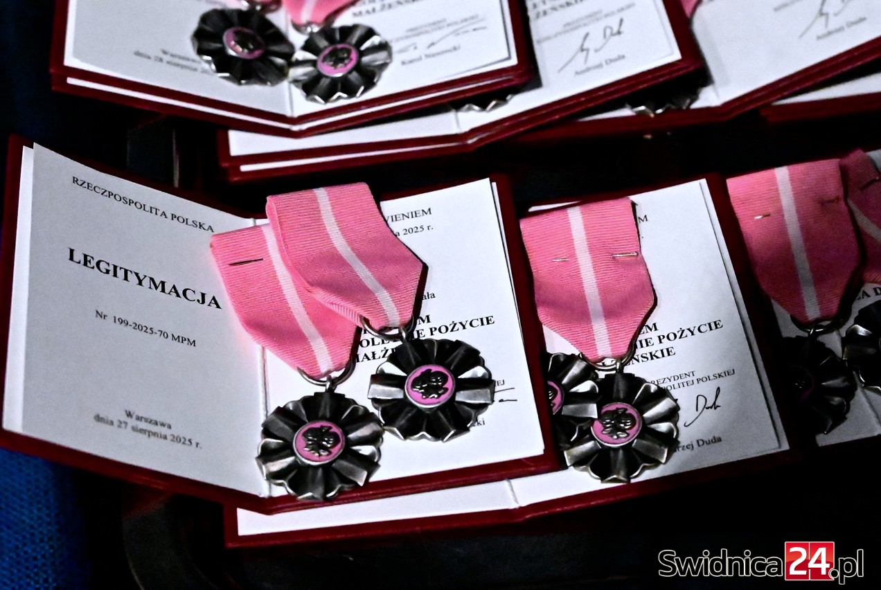 Podczas uroczystości zorganizowanej w auli I Liceum Ogólnokształcącego prezydent Świdnicy oraz wójt gminy Świdnica wręczyli medale za długoletnie pożycie małżeńskie przyznane przez prezydenta Rzeczypospolitej Polskiej. – Jubilatom gratuluję tych wspólnie spędzonych lat. Zrobiliście niebywałą rzecz: zbudowaliście wspaniałe rodziny, przeżyliście razem już wiele lat. Życzymy wam, żeby tych lat było jeszcze mnóstwo – lat w szczęściu i miłości, we wzajemnych zrozumieniu, tolerancji, w dobrych relacjach z waszymi bliskimi – mówiła prezydent Beata Moskal-Słaniewska. – Z szacunkiem i dużym podziwem spoglądamy na drogę, którą wspólnie przebyliście. Jesteście doskonałym przykładem dla kolejnych pokoleń, jak w związku budować i rozwijać miłość – podkreślał wójt Bartłomiej Strózik.