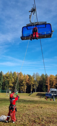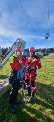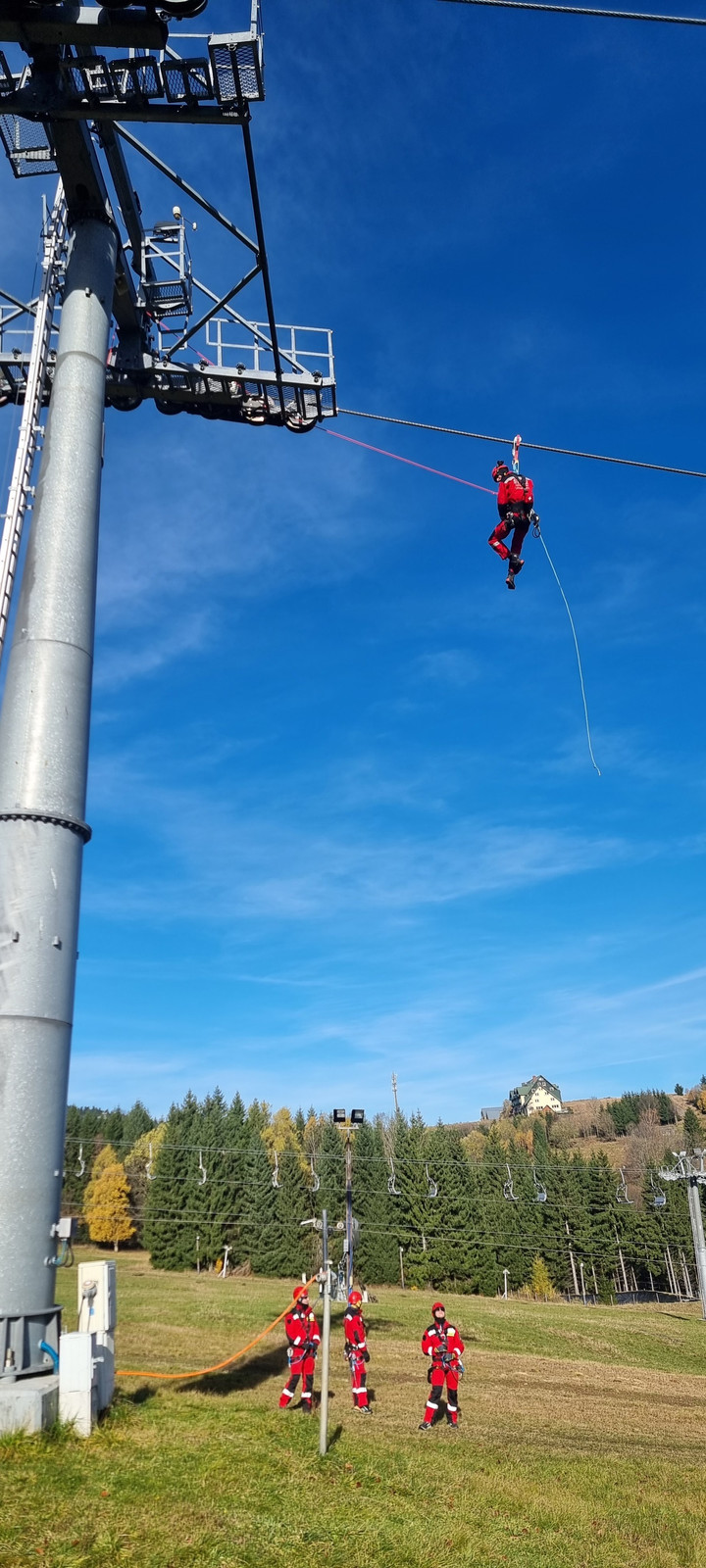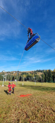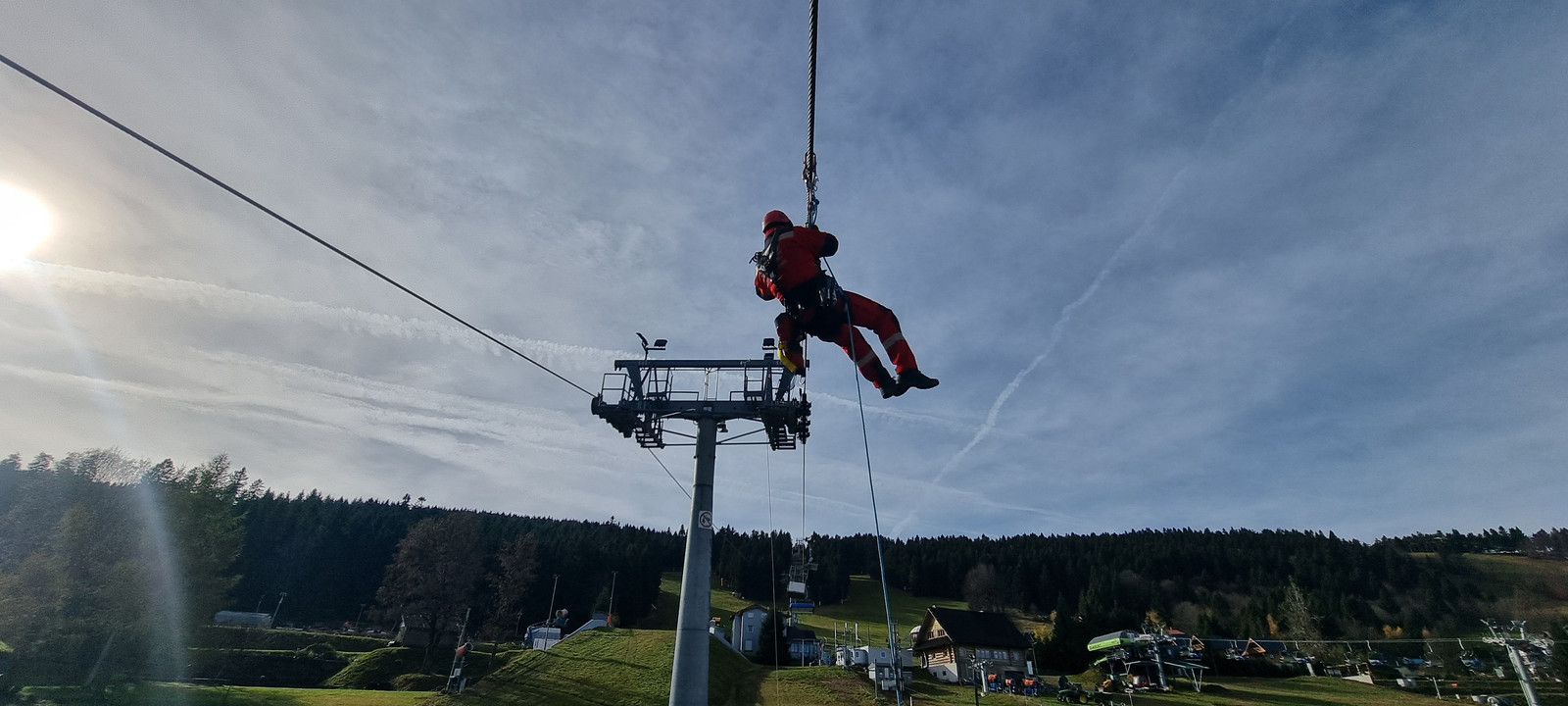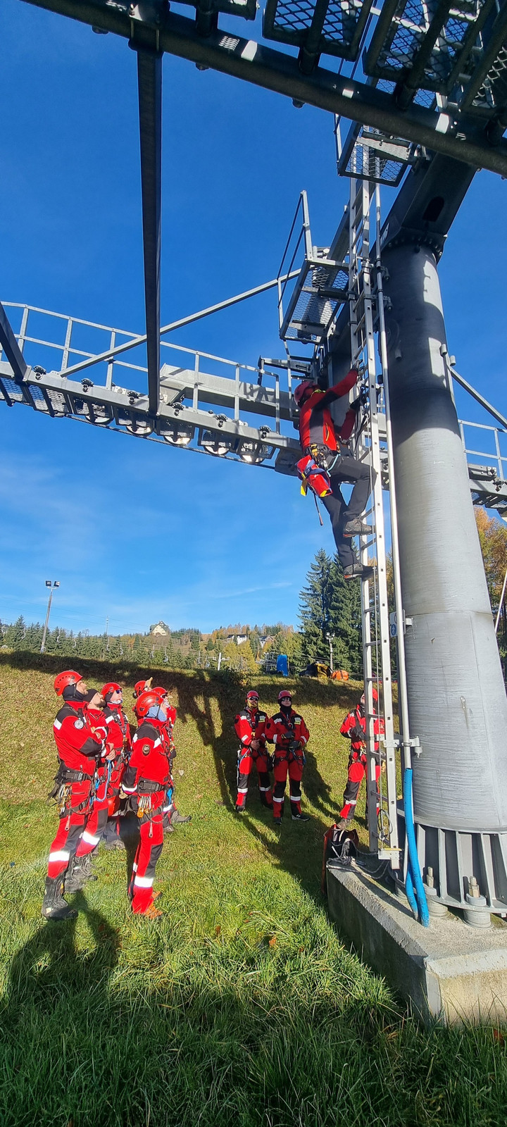 Strażacy ze Specjalistycznej Grupy Ratownictwa Wysokościowego w Świdnicy uczestniczyli w ćwiczeniach doskonalących z zakresu ratownictwa wysokościowego na terenie ośrodka narciarskiego w Zieleńcu.