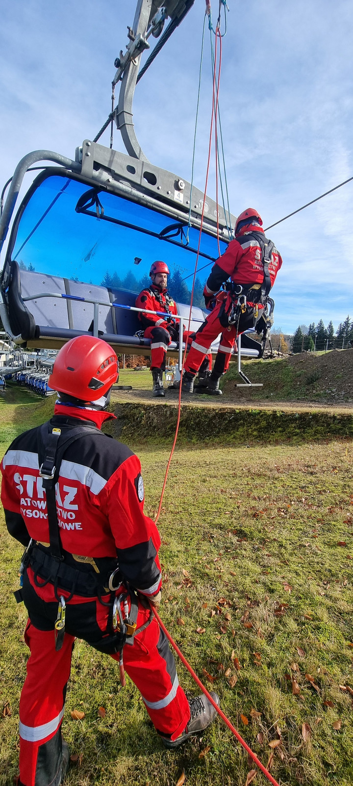 – W dniu 31 października 2025 roku dzięki współpracy z Zieleniec Sport Arena ratownicy ze specjalistycznej grupy ratownictwa wysokościowego SGRWys „Świdnica” mogli odbyć kolejne szkolenie z zakresu ewakuacji osób z kolei linowych. Pod nadzorem starszego instruktora ratownictwa wysokościowego KSRG funkcjonariusze mogli sprawdzić i udoskonalić procedury ewakuacji osób w przypadku awarii kolejki – informują przedstawiciele Komendy Powiatowej Państwowej Straży Pożarnej w Świdnicy.
