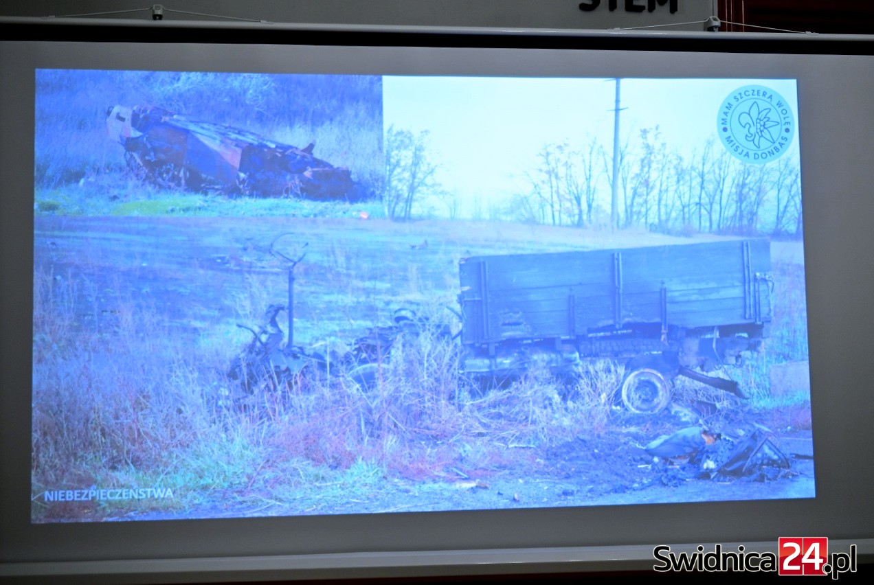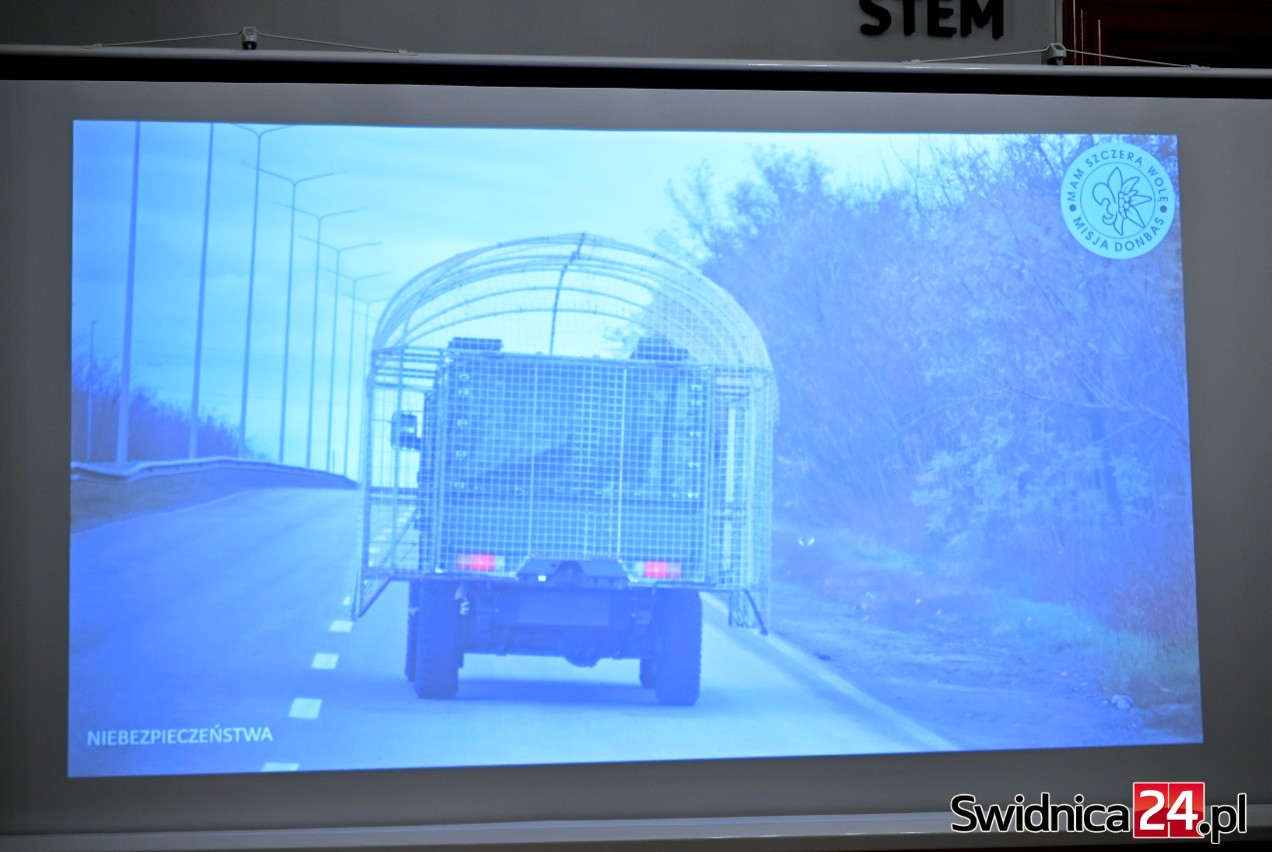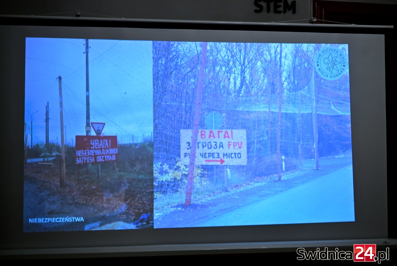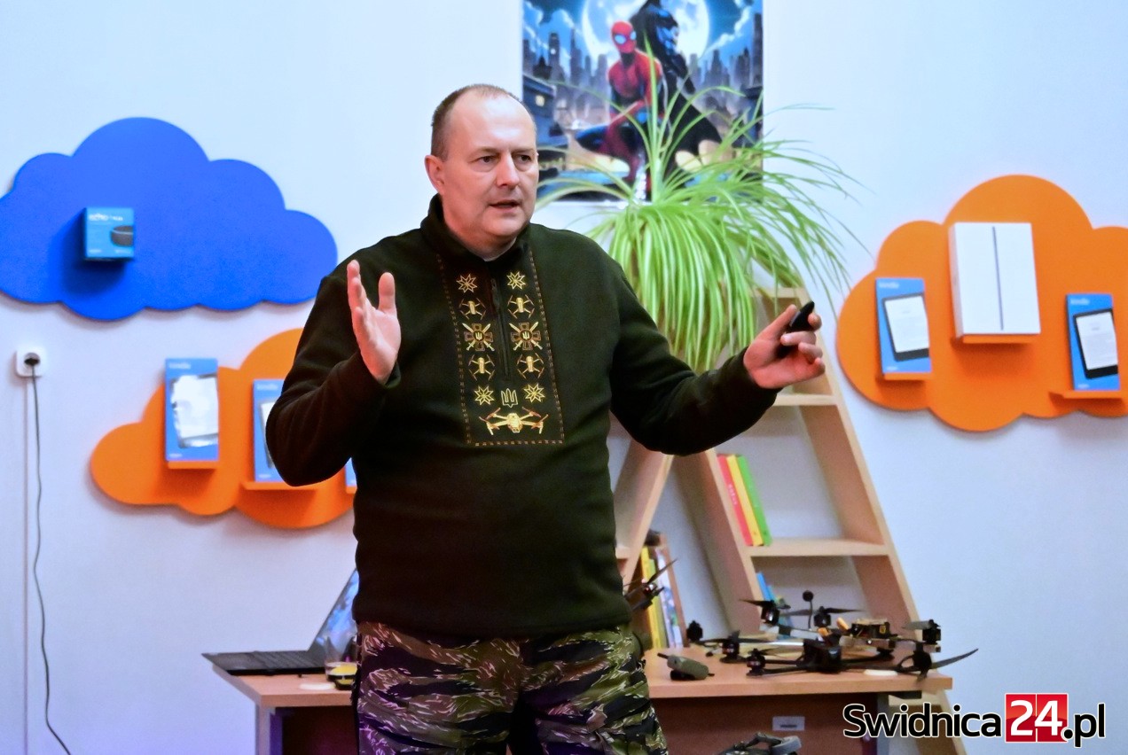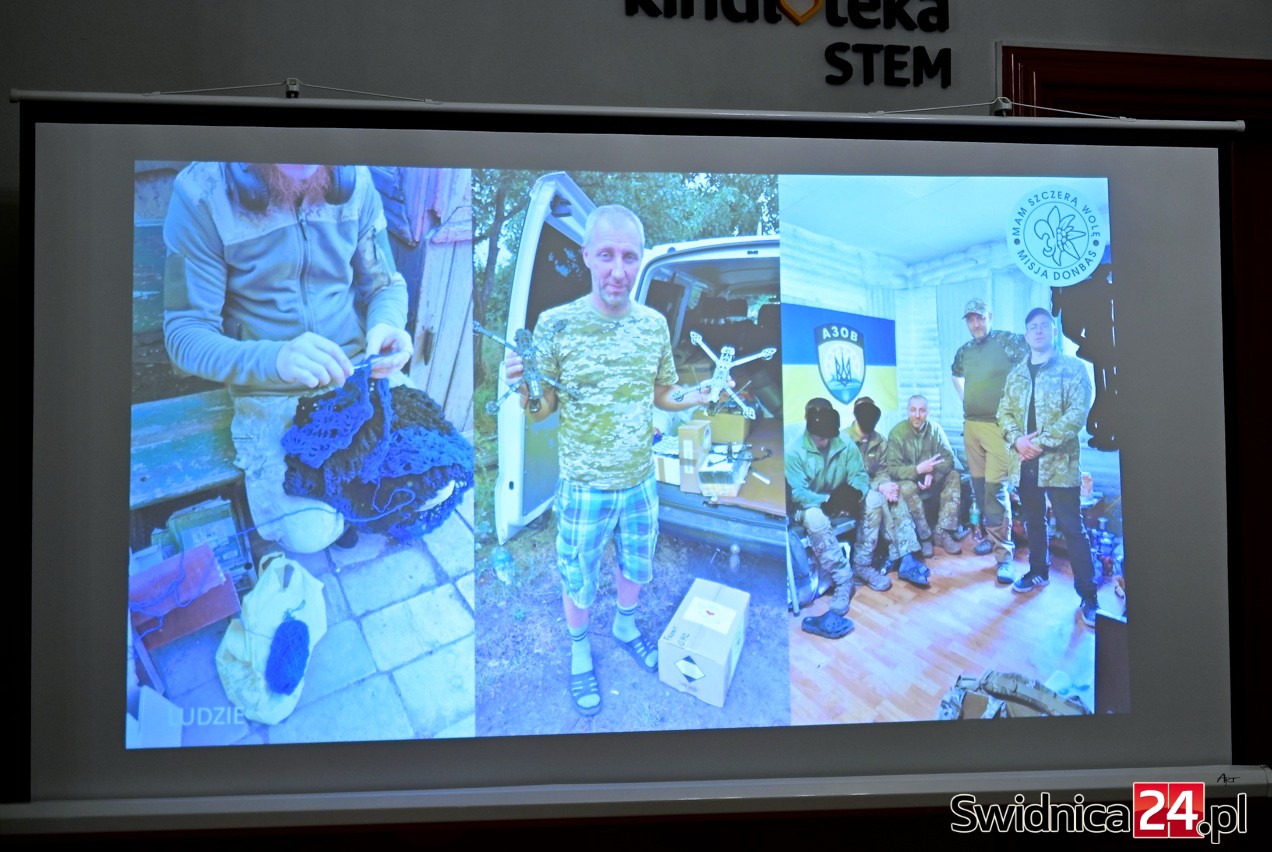 Podczas spotkania pokazał nagrania i zdjęcia ze swoich wypraw, a także drony, które stały się główną bronią w wojnie, rozpętanej przez Federację Rosyjską.