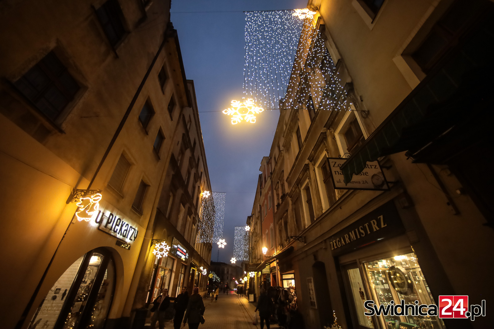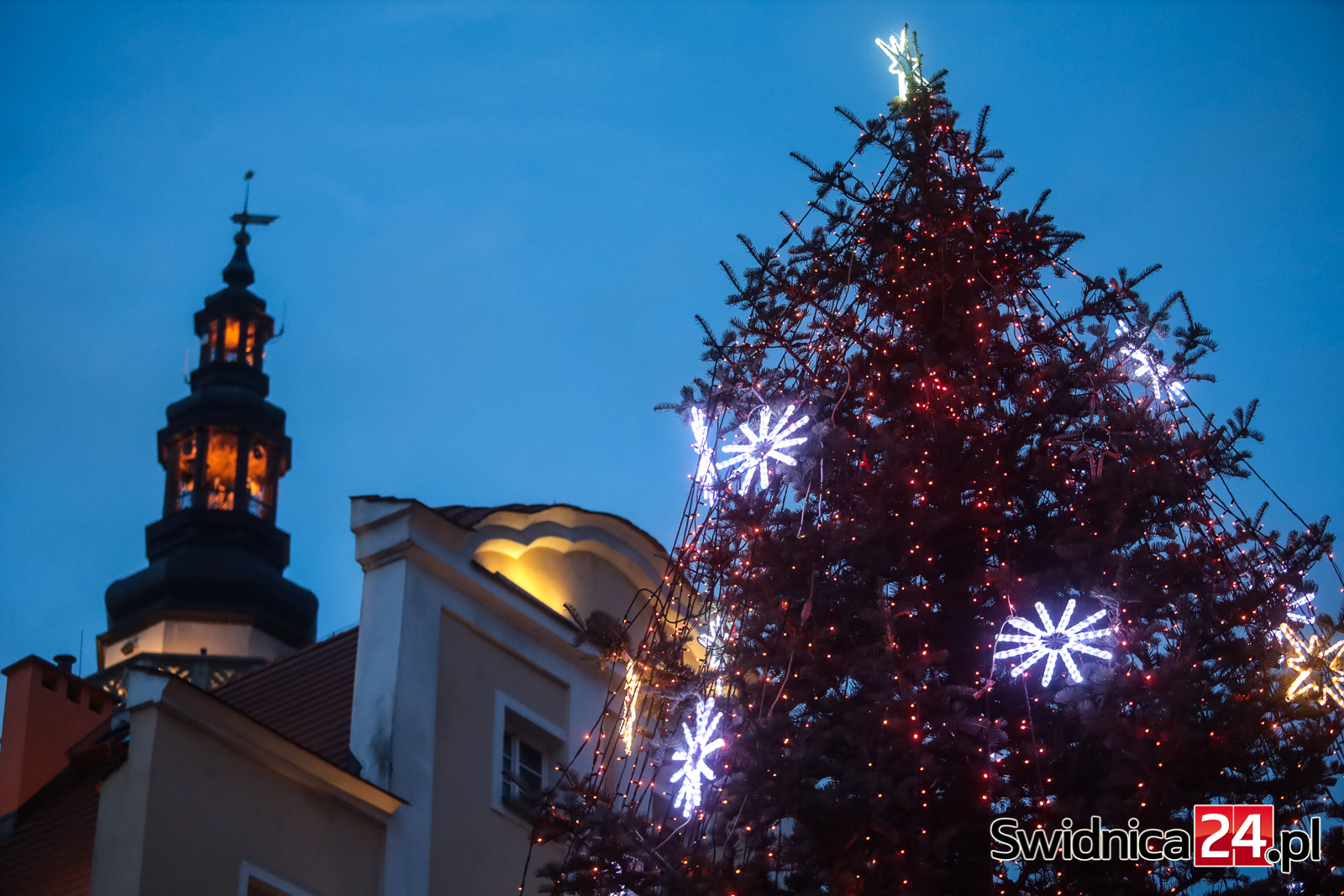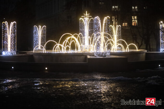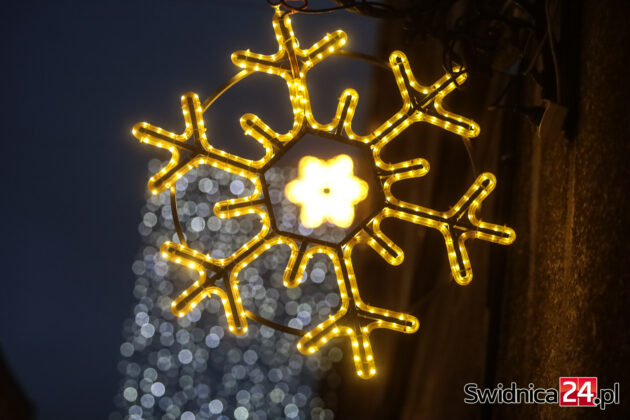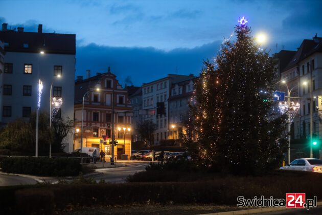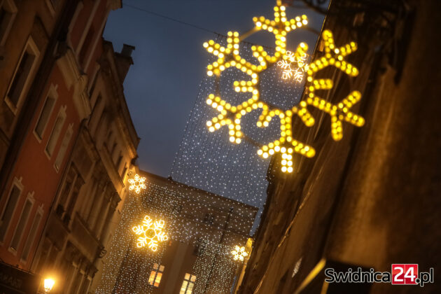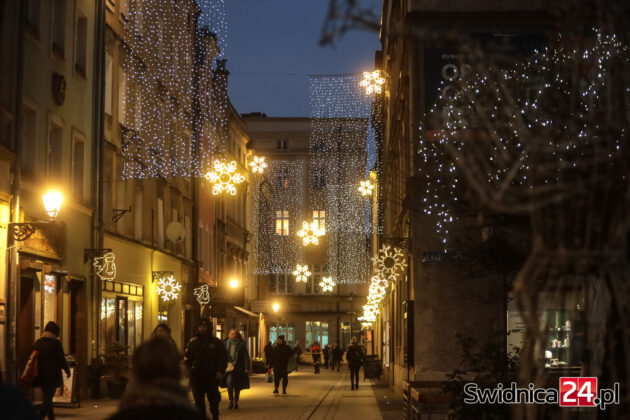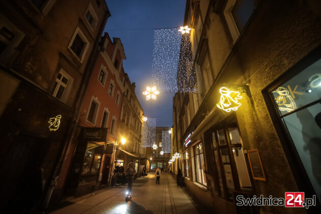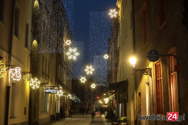 Spacerujący po centrum Świdnicy od kilku dni mogą wieczorami podziwiać m.in. światełka na drzewach w Rynku, kurtyny i przywieszki na ulicy Łukowej, ozdoby zamontowane w fontannach na placu św. Małgorzaty, czy też udekorowaną lampkami choinkę na głównym placu miasta. W czwartek na swoje miejsce trafiły też choinki na placu Jana Pawła II oraz na placu Wolności.