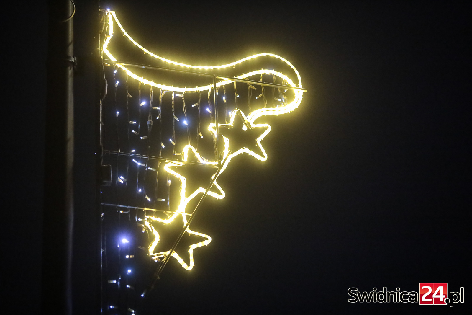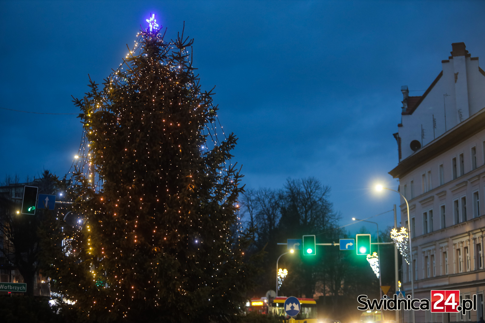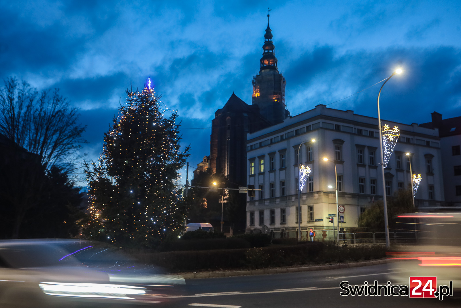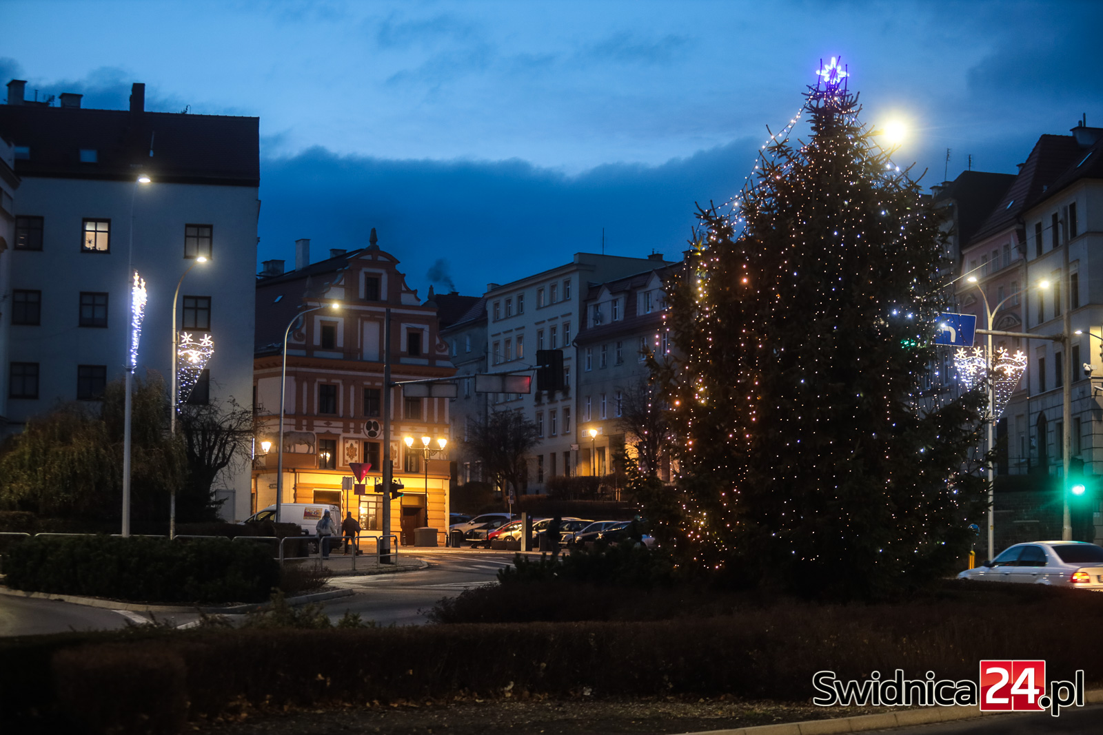 Spacerujący po centrum Świdnicy od kilku dni mogą wieczorami podziwiać m.in. światełka na drzewach w Rynku, kurtyny i przywieszki na ulicy Łukowej, ozdoby zamontowane w fontannach na placu św. Małgorzaty, czy też udekorowaną lampkami choinkę na głównym placu miasta. W czwartek na swoje miejsce trafiły też choinki na placu Jana Pawła II oraz na placu Wolności.