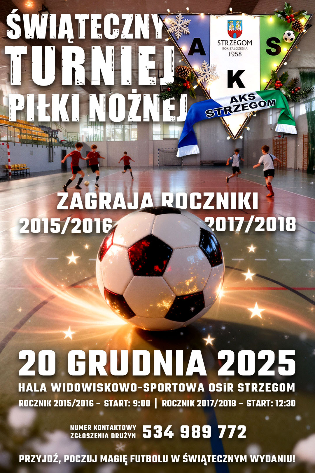 – Trenerzy! To idealna okazja, by Wasi młodzi zawodnicy przeżyli sportową przygodę w wyjątkowym, świątecznym klimacie. Turniej jest przeznaczony dla drużyn, które zgłoszą udział w swojej kategorii wiekowej. Nie zwlekajcie – miejsca szybko się zapełniają! Zgłoszenia drużyn: 534-989-772. Przygotujcie swoich podopiecznych, wpadnijcie do Strzegomia i wspólnie stwórzmy niezapomniane piłkarsko-świąteczne wydarzenie! Kibice – liczymy na Wasz doping! – zachęcają organizatorzy z klubu AKS Strzegom.