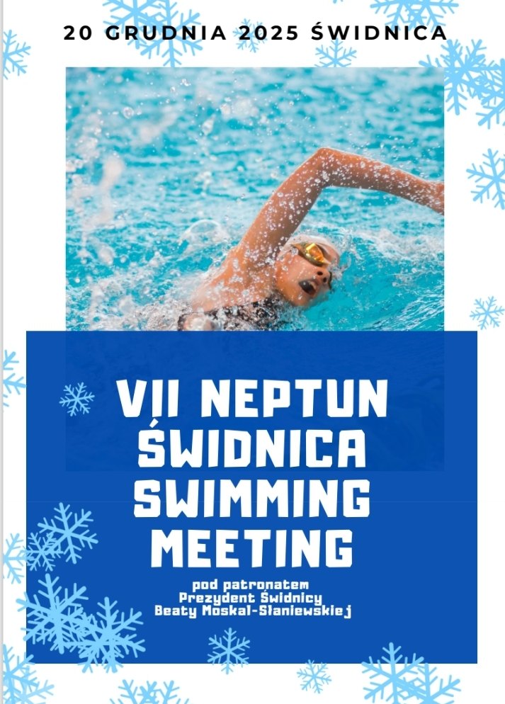 Już w najbliższą sobotę, 20 grudnia 2025 o godzinie 9.00 na pływalni Ośrodka Sportu i Rekreacji w Świdnicy przy ul. Równej 9 odbędzie się pływackie święto – „VII Neptun Świdnica Swimming Meeting”. Do startu zgłosiło się ponad 350 uczestników z 26 klubów pływackich w tym reprezentacja niemieckiego klubu z Görlitz. Uczestnicy będą rywalizować w kategoriach odpowiednich dla dzieci i młodzieży z roczników 2012-2016 i młodsi, a także w sztafetach. – Nie zabraknie emocji, rekordów o świetnej zabawy! Liczymy na Wasze wsparcie i doping dla wszystkich uczestników! – zachęcają organizatorzy z klubu Neptun Świdnica.