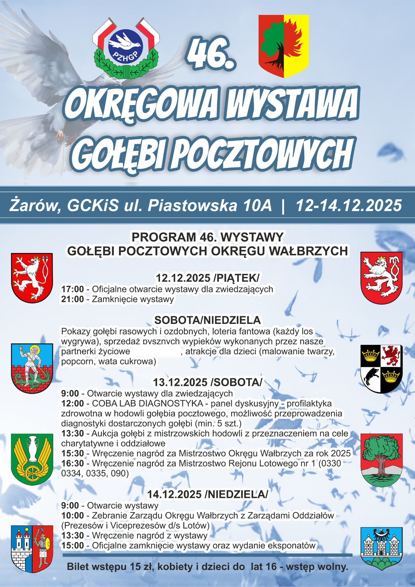 W dniach 12-14 grudnia w hali sportowej Gminnego Centrum Kultury i Sportu w Żarowie odbędzie się 46. Wystawa Gołębi Pocztowych Okręgu Wałbrzych.