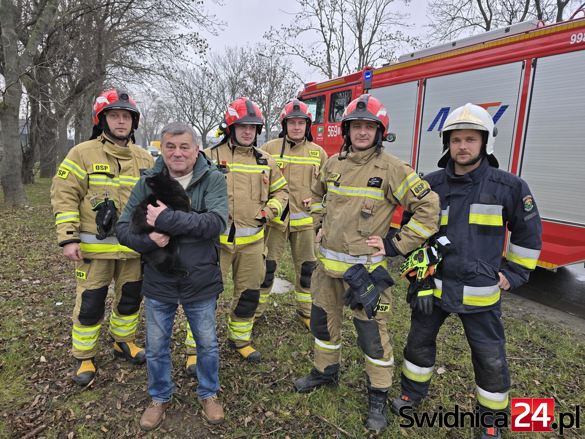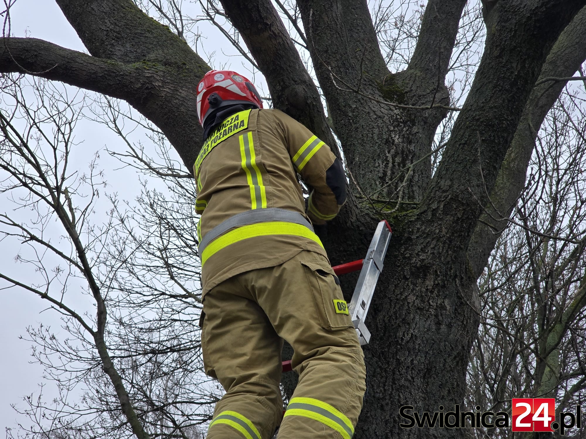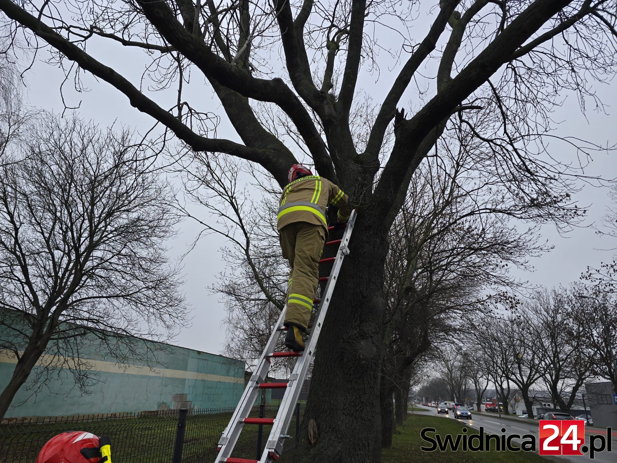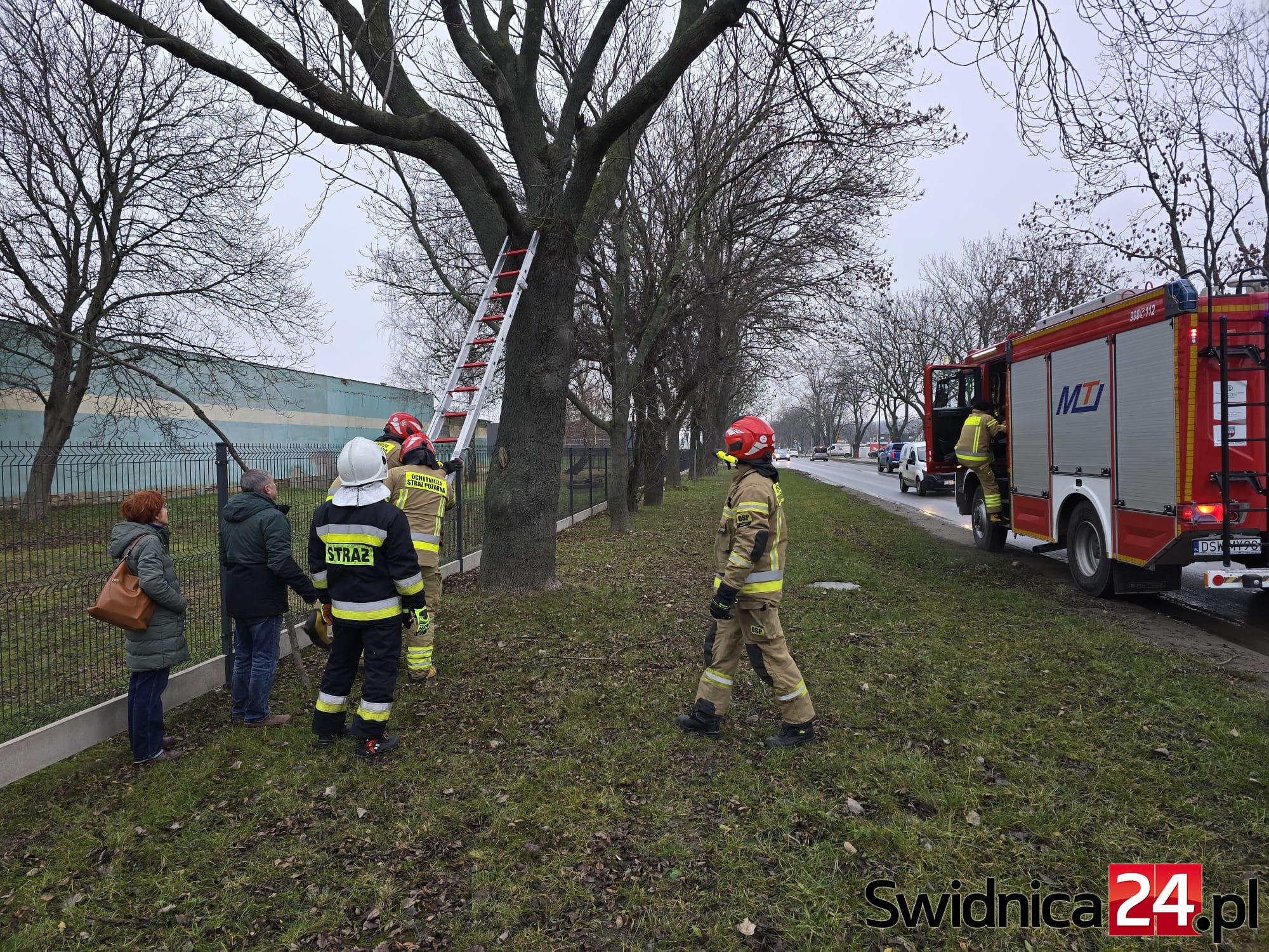 20 grudnia tuż po godzinie 13.00 druhowie z Ochotniczej Straży Pożarnej w Strzegomiu interweniowali przy Alei Wojska Polskiego. Przy pomocy drabiny ściągnęli przestraszoną kotkę z drzewa.